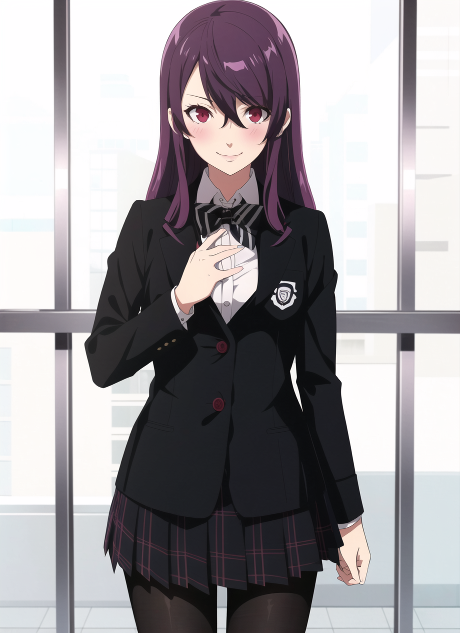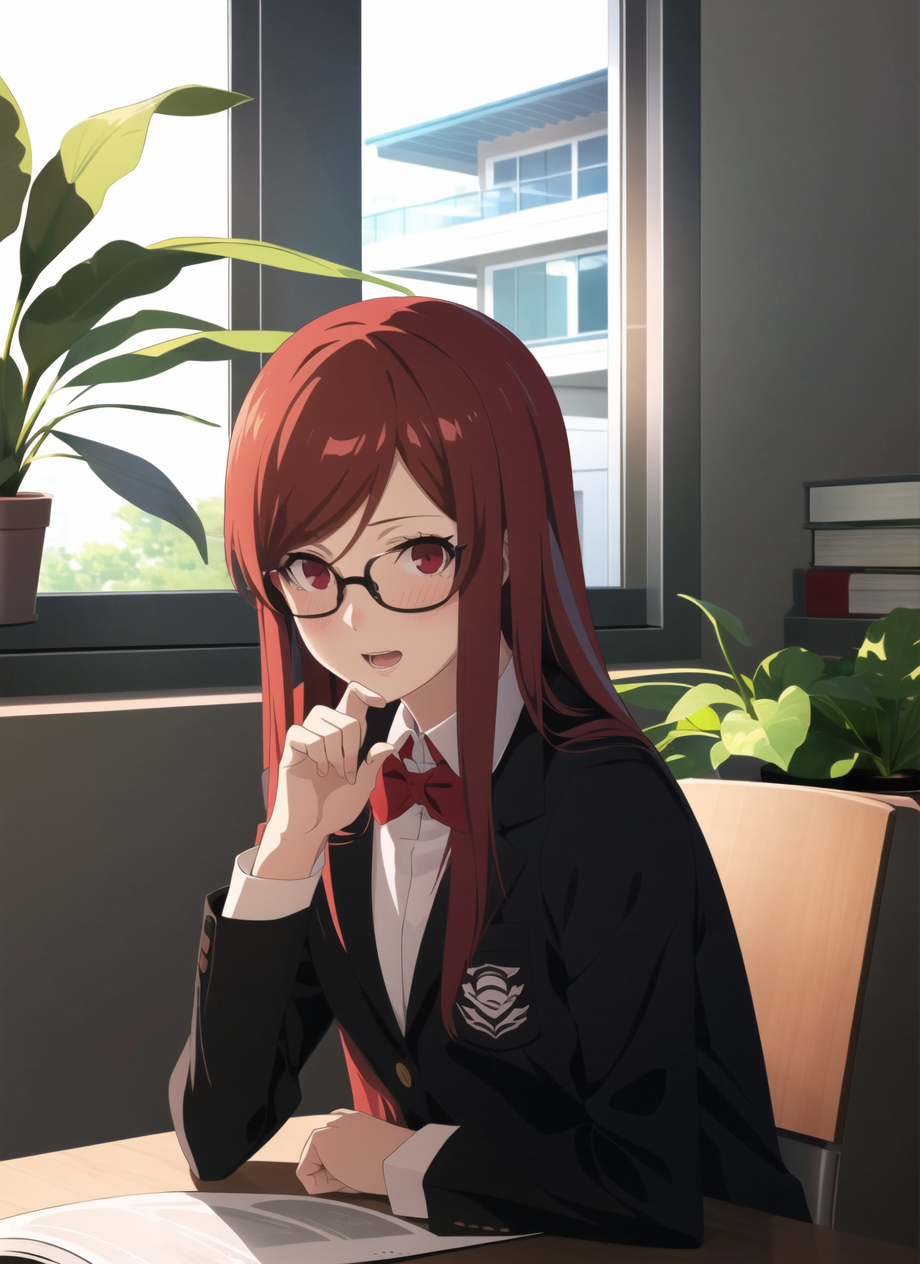 Keep in mind this is not a character LoRA, so while it can imitate characters from their descriptions (as shown) you might need additional character LoRA/embedding to increase the accuracy. The purpose of this LoRA is to make any character with this style, not only Persona characters. Like the Futaba examples are using her TI.