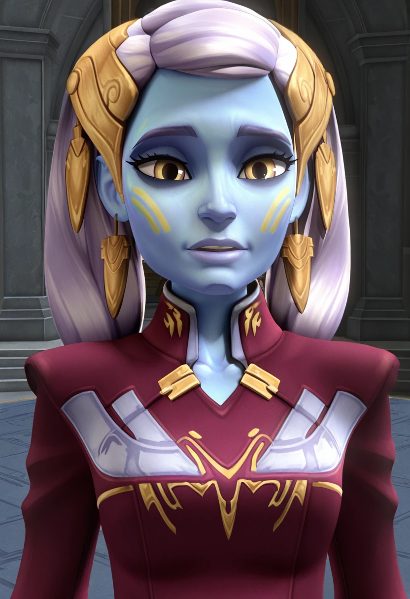 hair_bun, tight_bun, forehead_jewel_badbatch, dangling_earrings, senator_outfit_badbatch