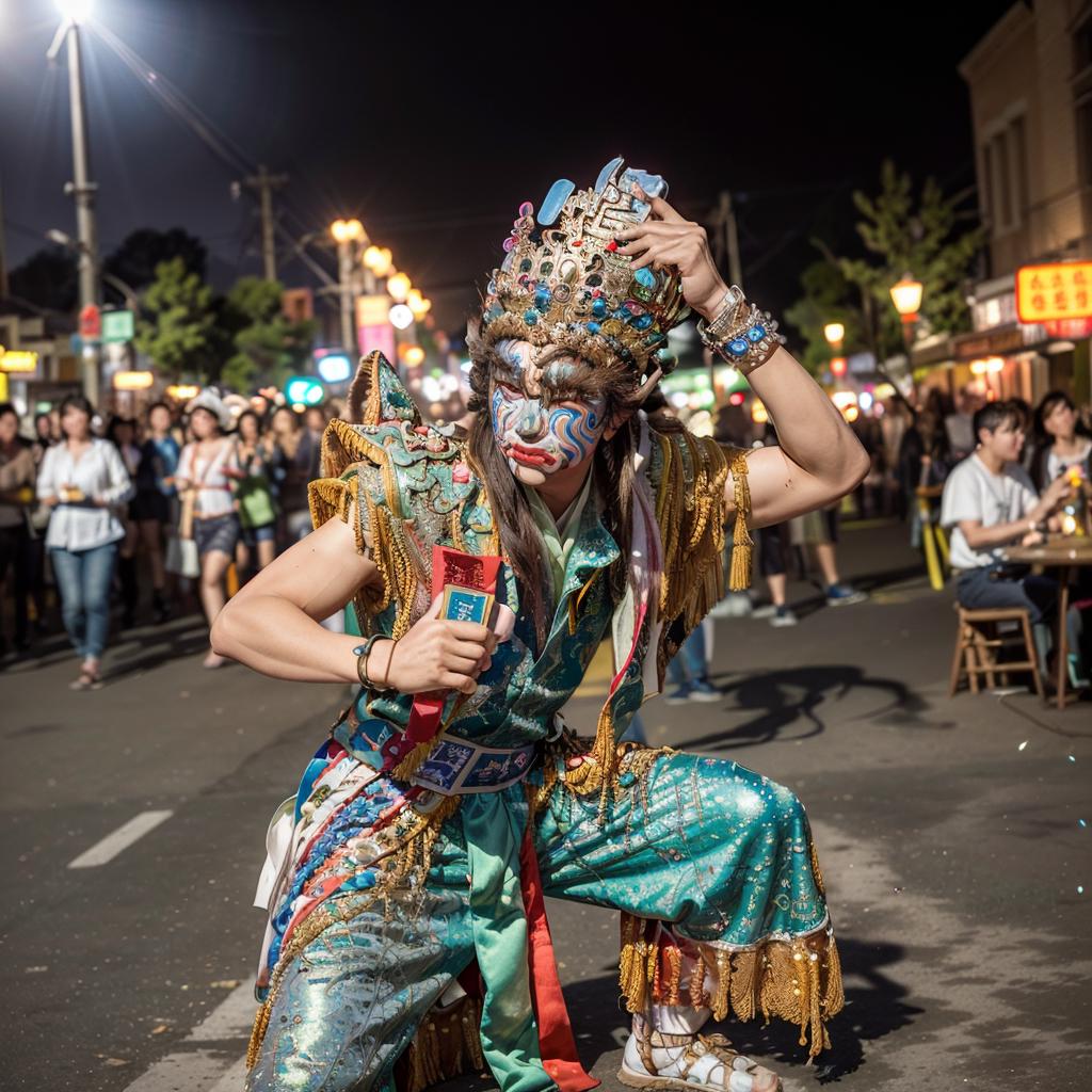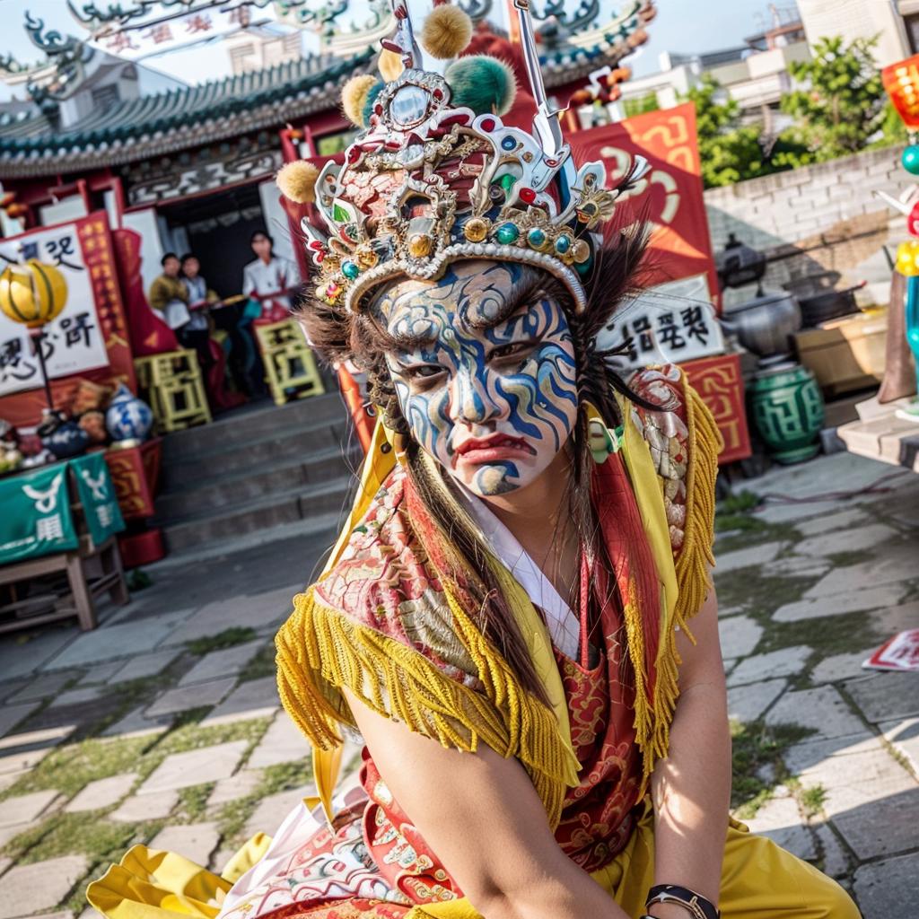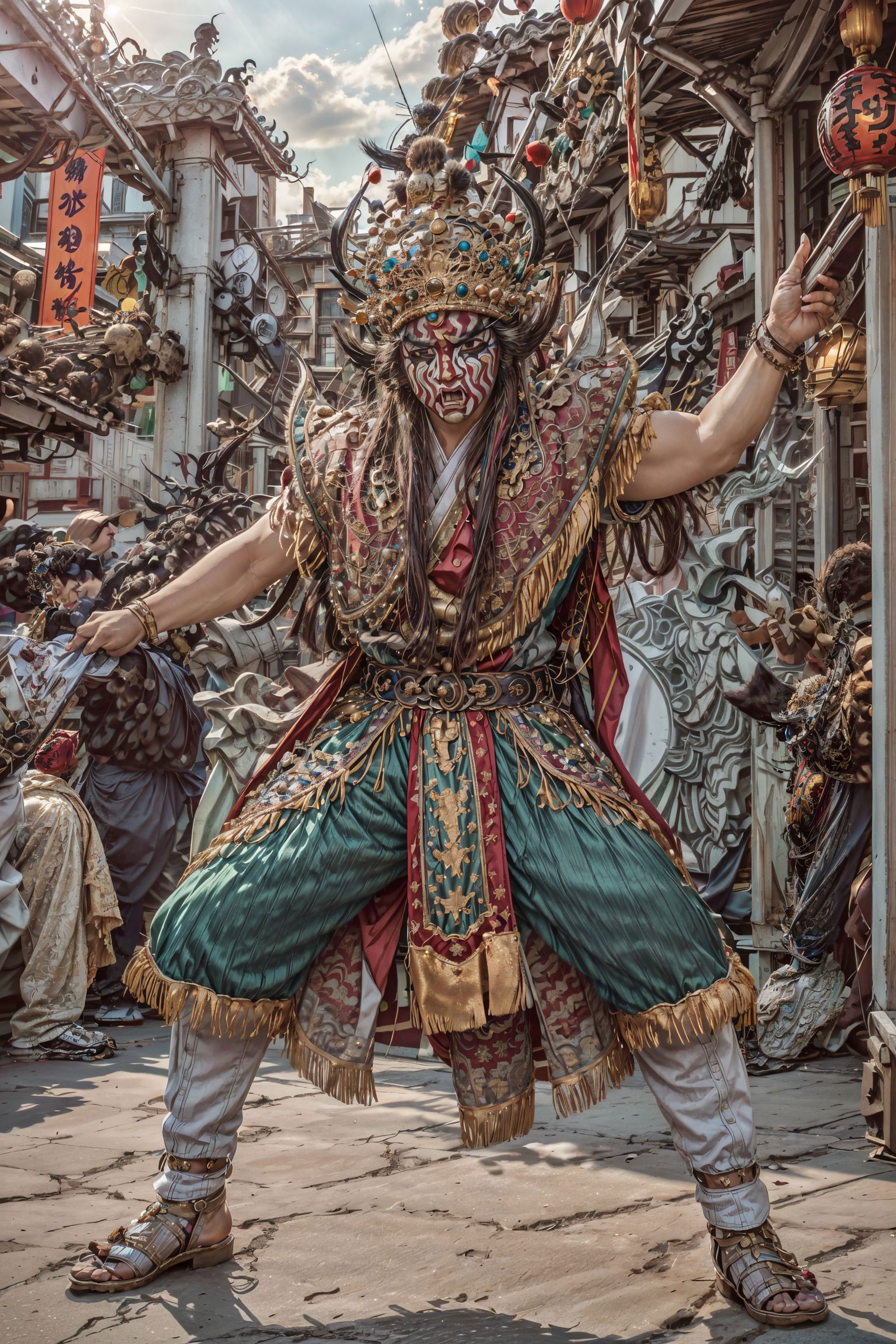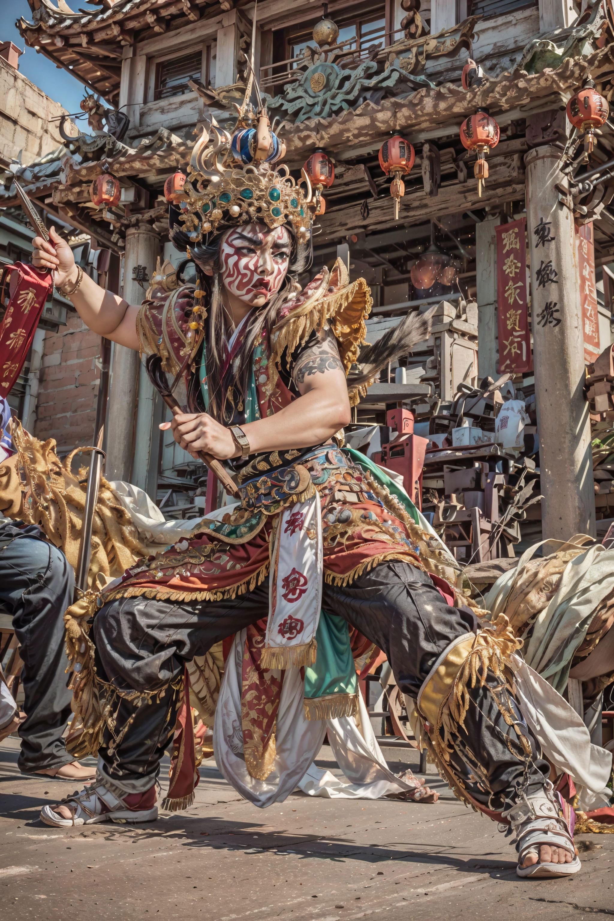 Guān Jiàng Shǒu is the deity of the Taiwanese hell police in the World of Dead. There are two generals, "Increase" and "Diminish," who oversee the deeds of good and evil in the human world. If General Increase encounters a virtuous person, their lifespan will be extended, whereas General Diminish will diminish the life force of those who commit evil deeds. During the annual grand worship ceremony in Xinzhuang, the Great Lord leads the procession, serving as the commanding general of the underworld soldiers and spirits. Additionally, they are responsible for protecting the main deity and warding off malevolent spirits. Due to their role as the leading general of the underworld soldiers, they are referred to as "官將首" (Guān Jiàng Shǒu) or "Official General's Head."