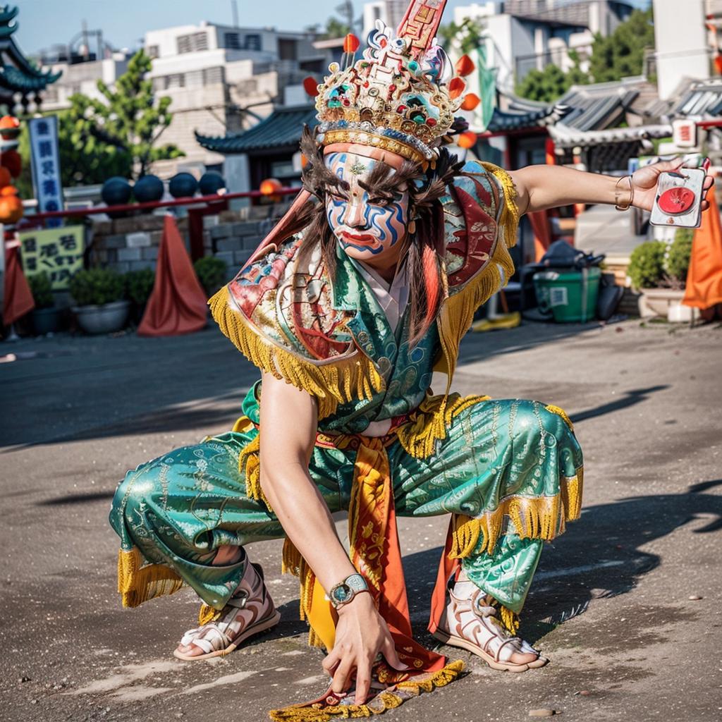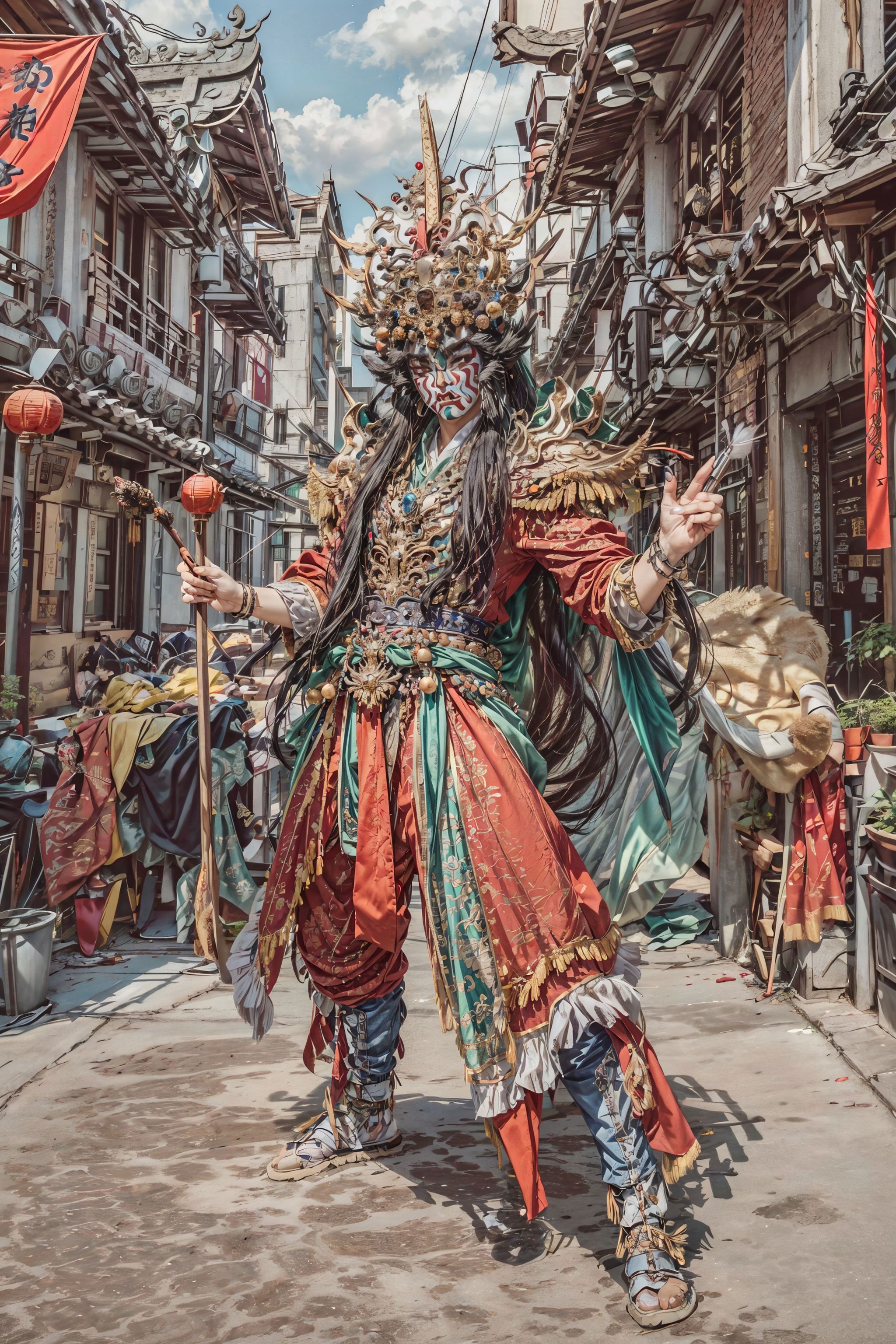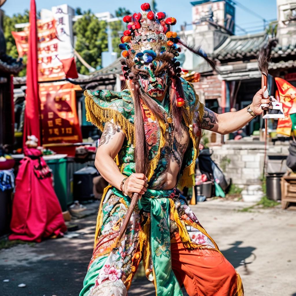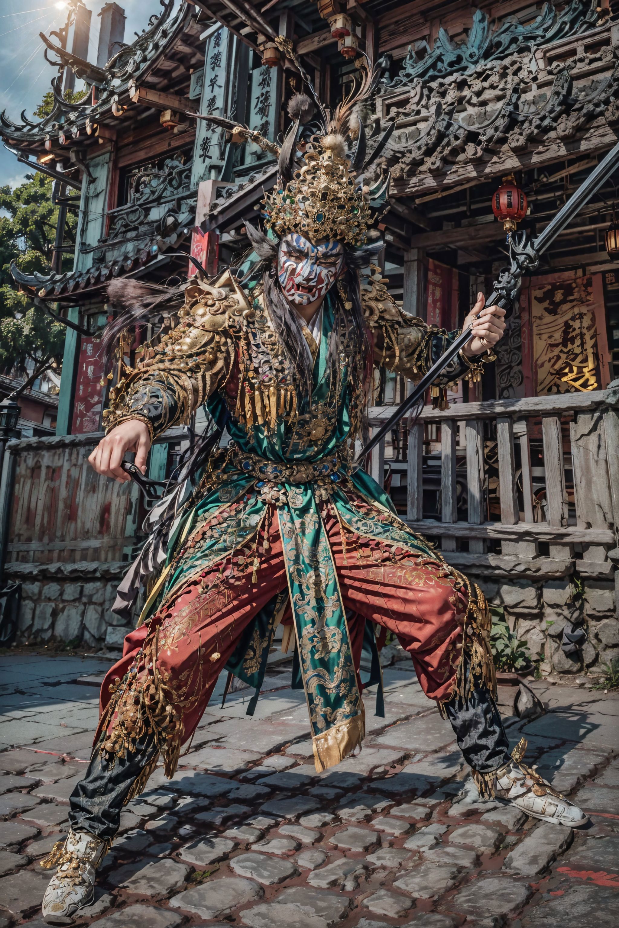 Guān Jiàng Shǒu is the deity of the Taiwanese hell police in the World of Dead. There are two generals, "Increase" and "Diminish," who oversee the deeds of good and evil in the human world. If General Increase encounters a virtuous person, their lifespan will be extended, whereas General Diminish will diminish the life force of those who commit evil deeds. During the annual grand worship ceremony in Xinzhuang, the Great Lord leads the procession, serving as the commanding general of the underworld soldiers and spirits. Additionally, they are responsible for protecting the main deity and warding off malevolent spirits. Due to their role as the leading general of the underworld soldiers, they are referred to as "官將首" (Guān Jiàng Shǒu) or "Official General's Head."