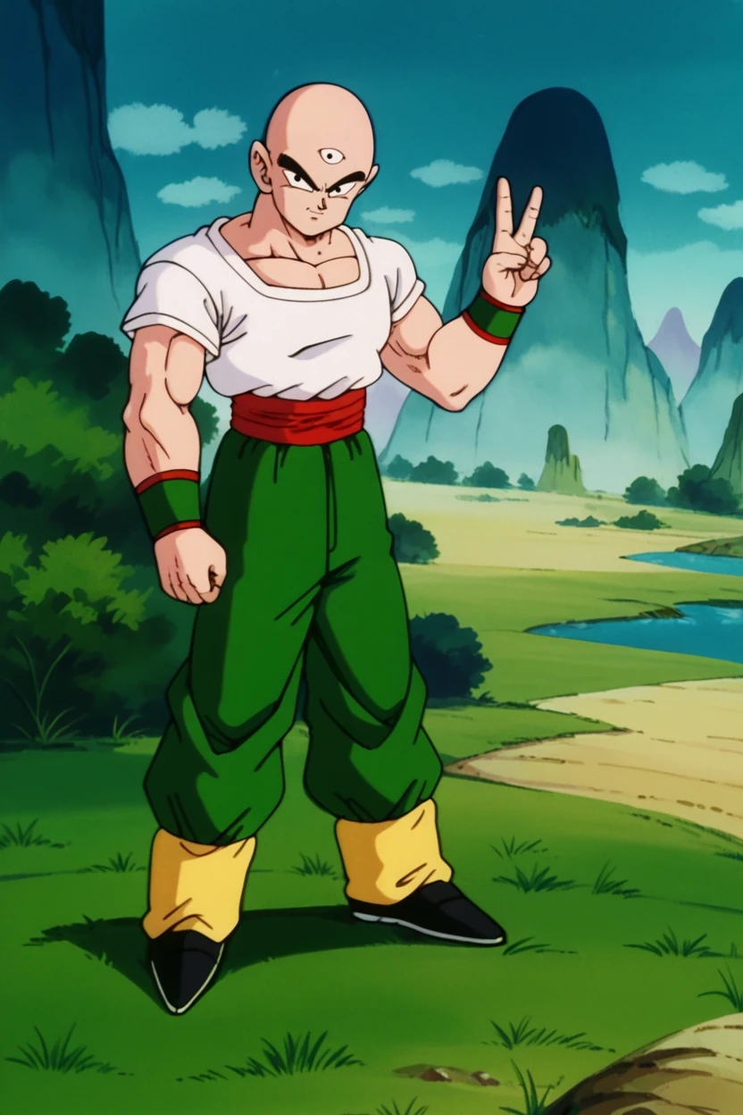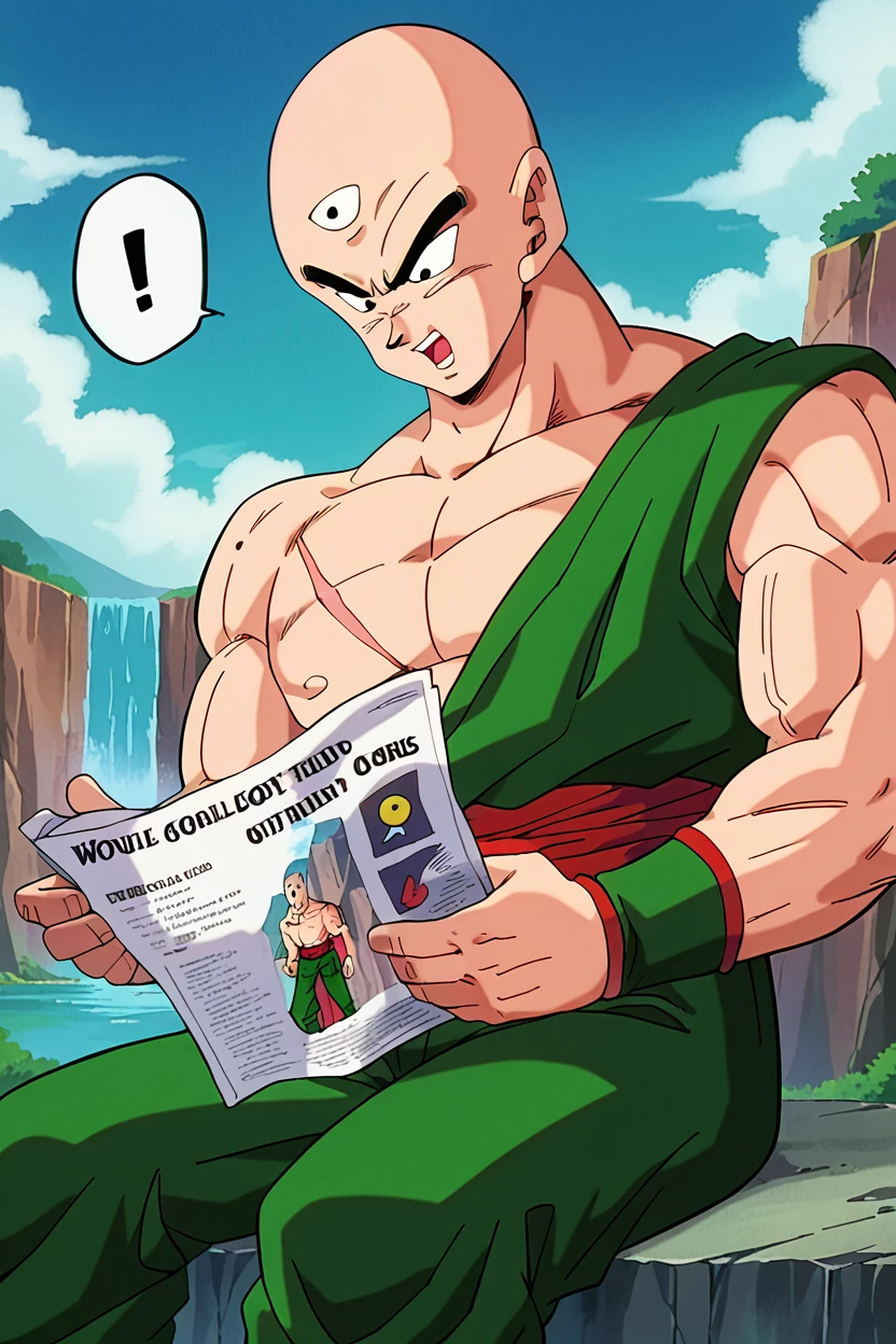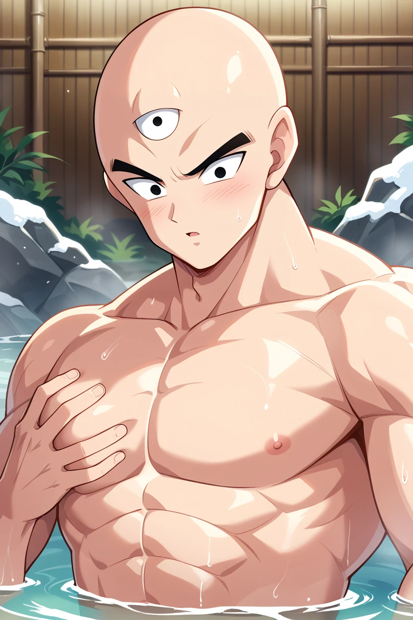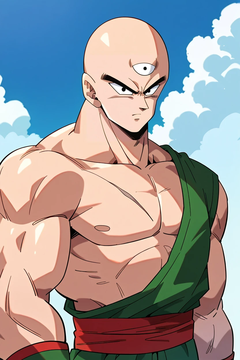 tien, 1boy, third eye, bald, black eyes, muscular male