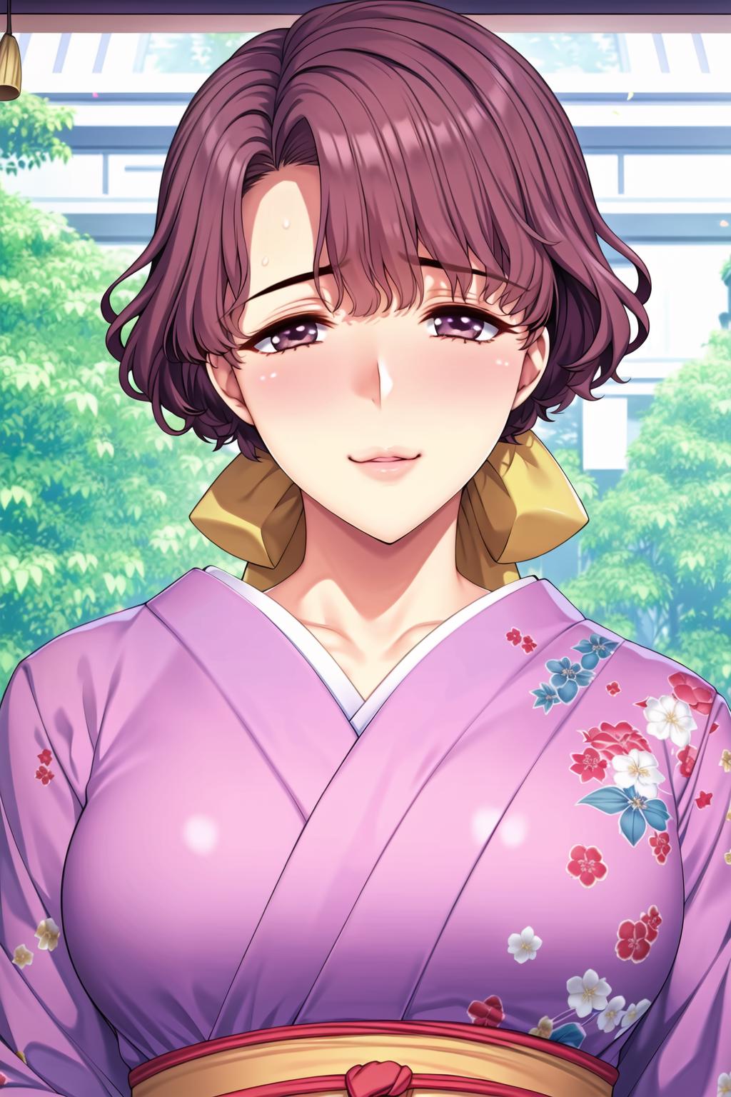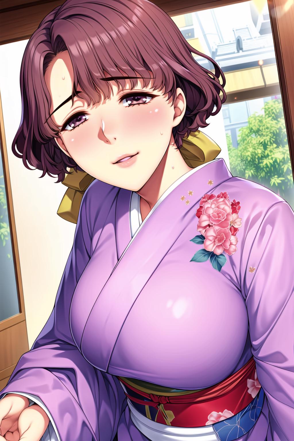 yukata, purple kimono with a flowered design on it,,japanese clothes,