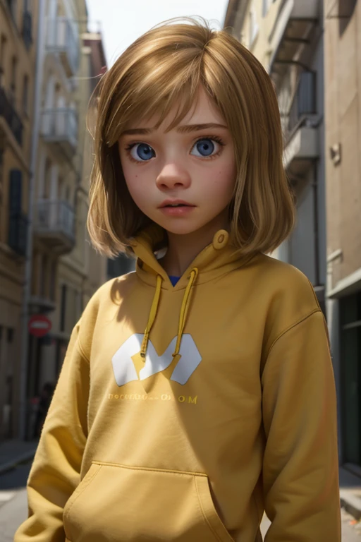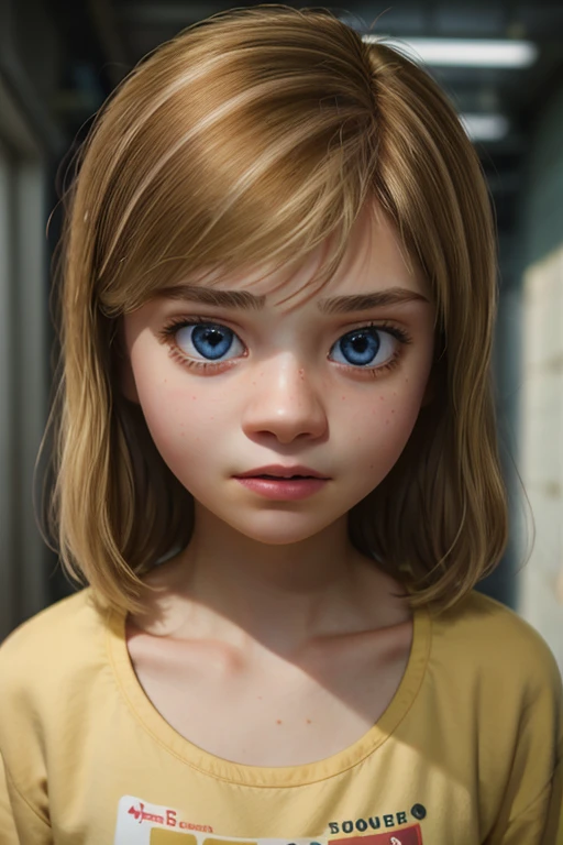 prompt: A stunning and intricate full color portrait in Ultra-HD, 12 year old girl, detailed face, short blonde hair, blue eyes, wearing a striped milti color t-shirt, epic character composition, alessio albi, nina masic, sharp focus, natural lighting, subsurface dispersion, f2, 35mm
