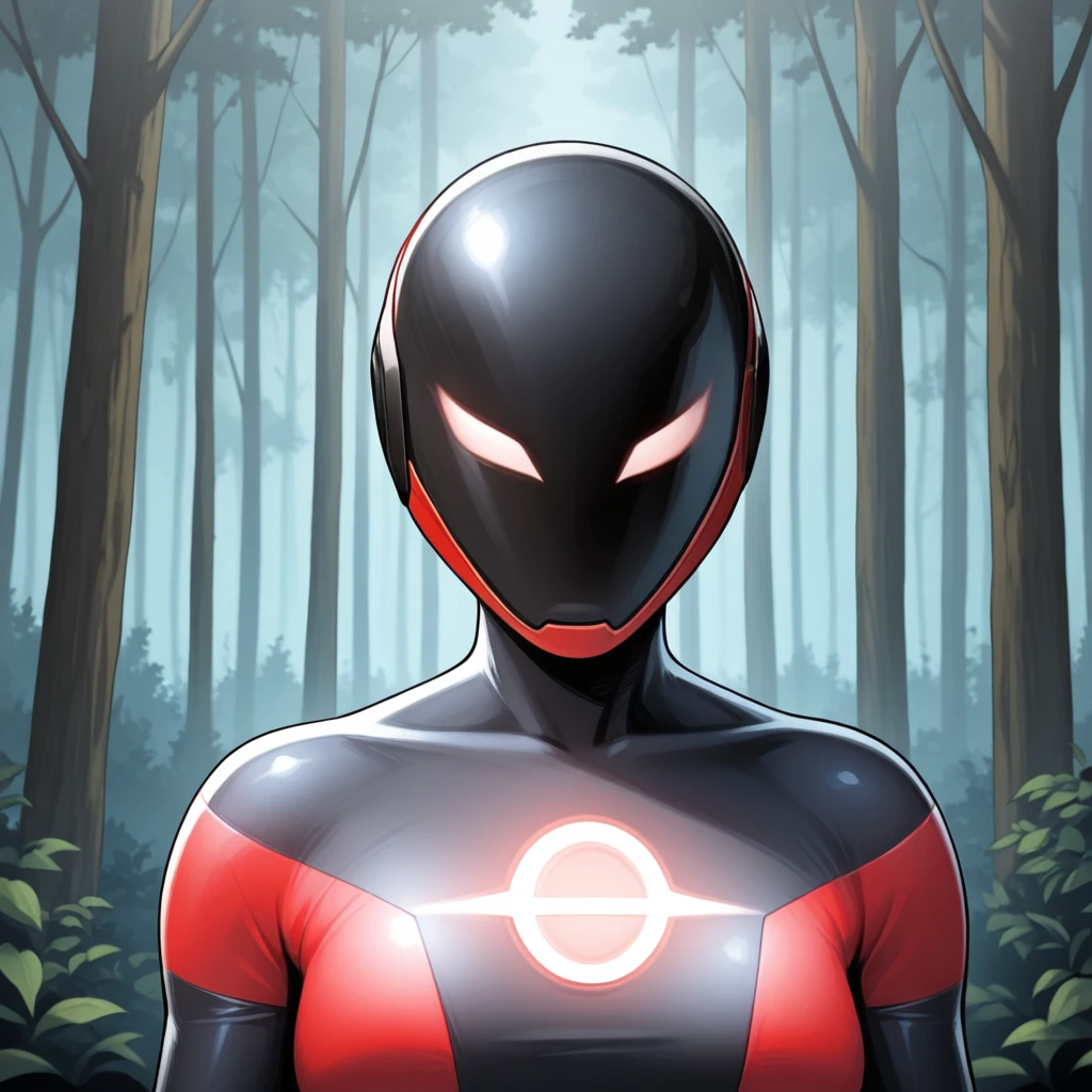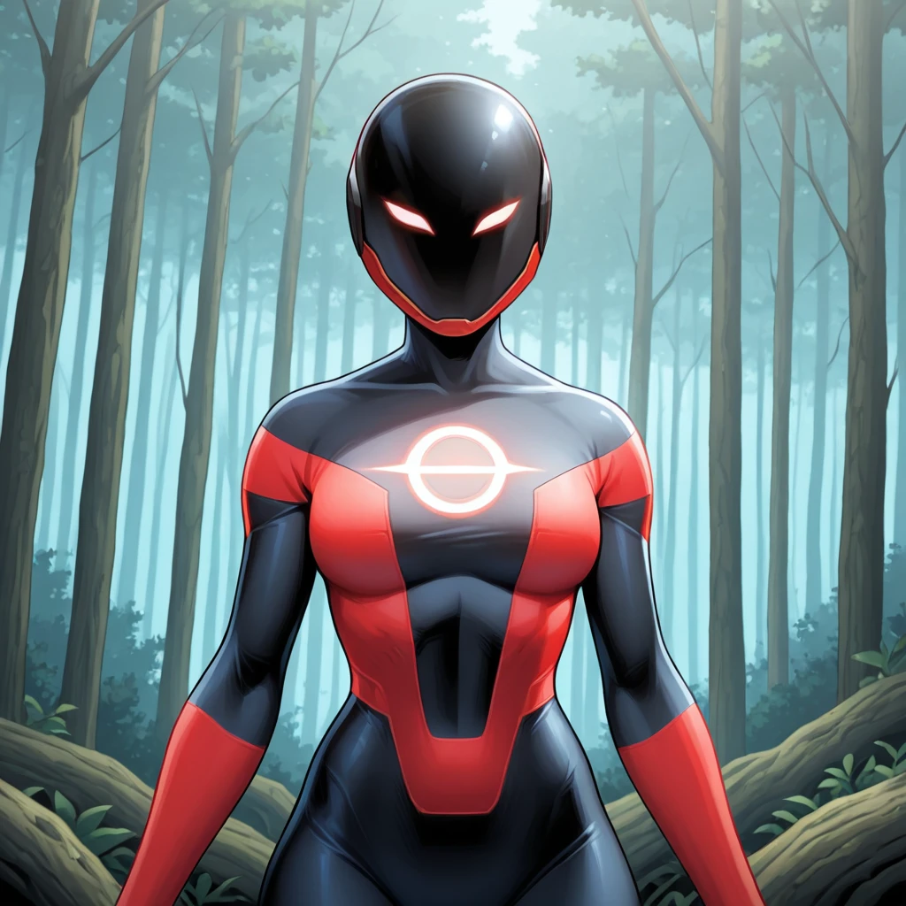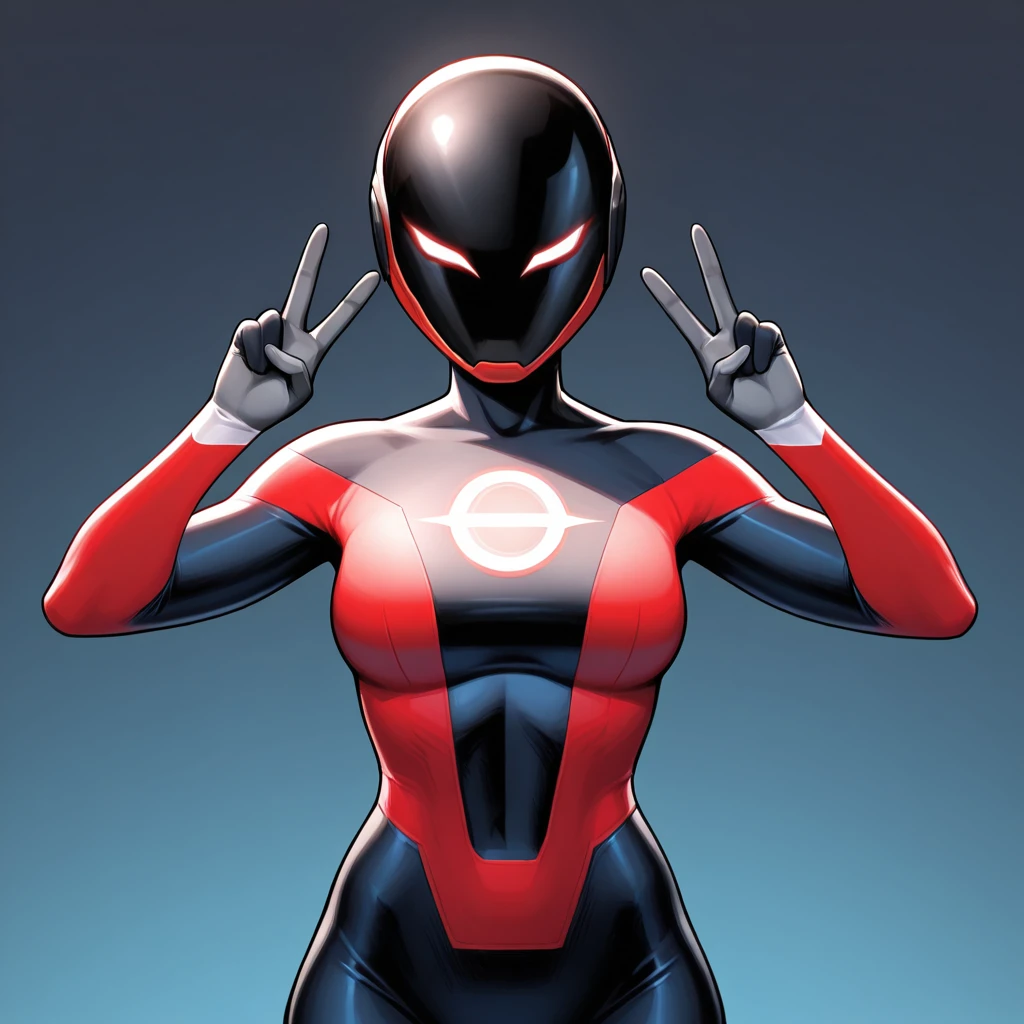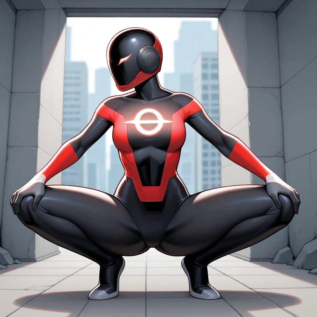 RadiantRed, 1girl, solo, helmet, faceless, superhero, black bodysuit,