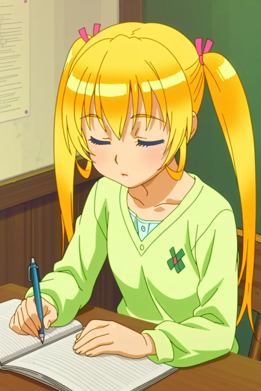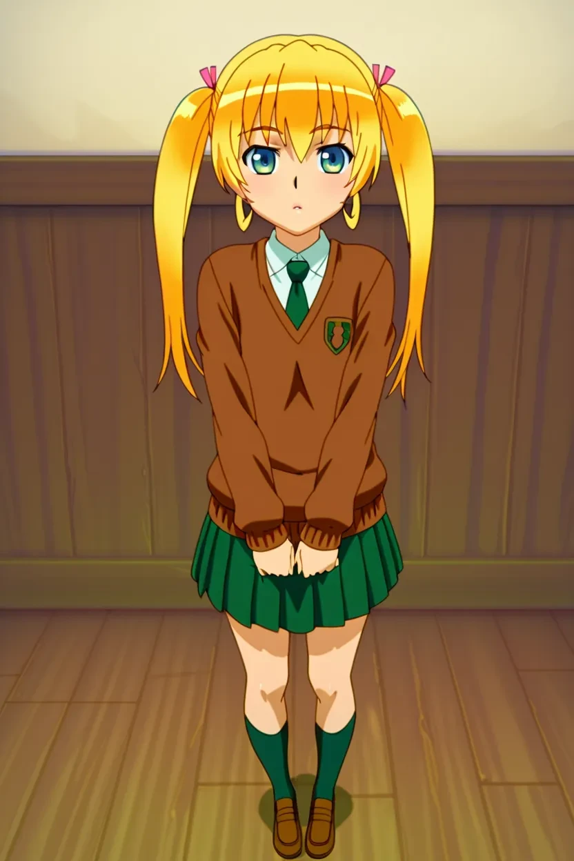 1girl, Mao Asakura (Futabu), blue eyes yellow hair, twin tails, thick lips, glossy lips, HD, 8k, high-resolution, clear picture, excellent quality, detailed , uncensored
