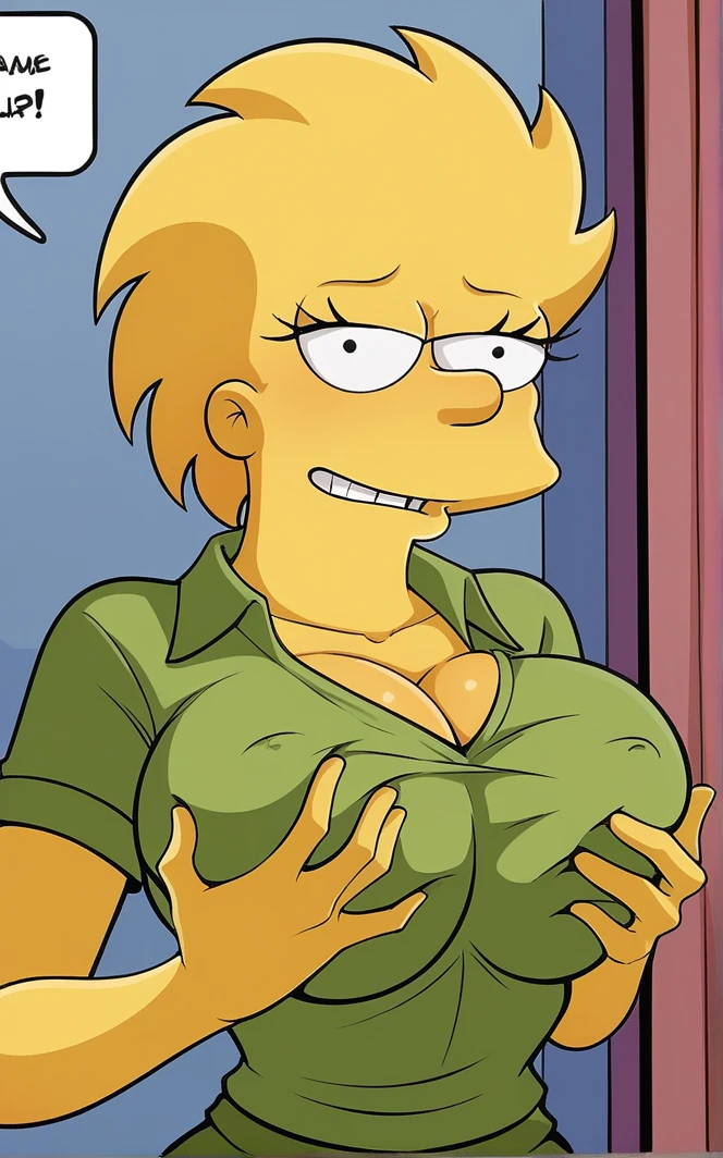PONYXL_STYLE_NewCROCSimpsons_ownwaifu, 1girl, yellow skin, large breasts, colored skin, jewelry {nude, nipples, navel | swimsuit | lingerie | shirt | dress},