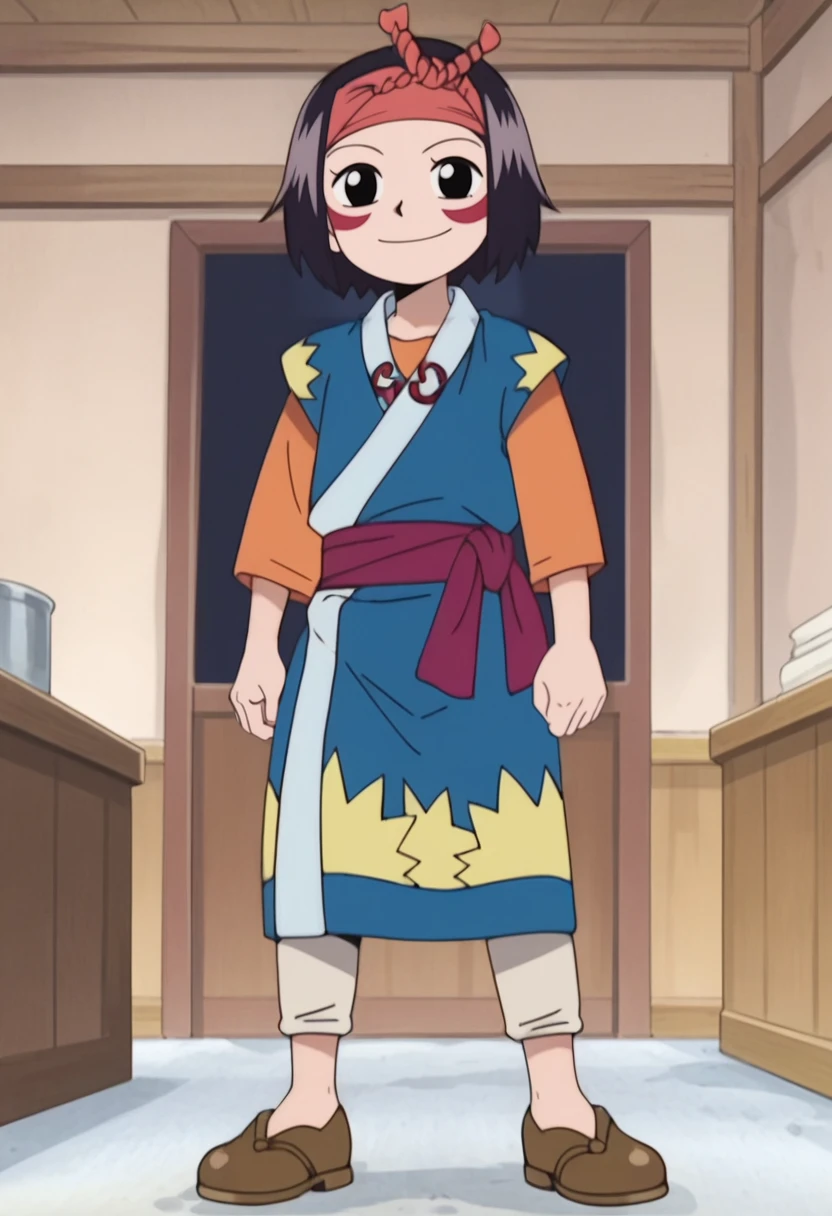 Kodama, black eyes, black hair, headband, facepaint, Japanese clothes,