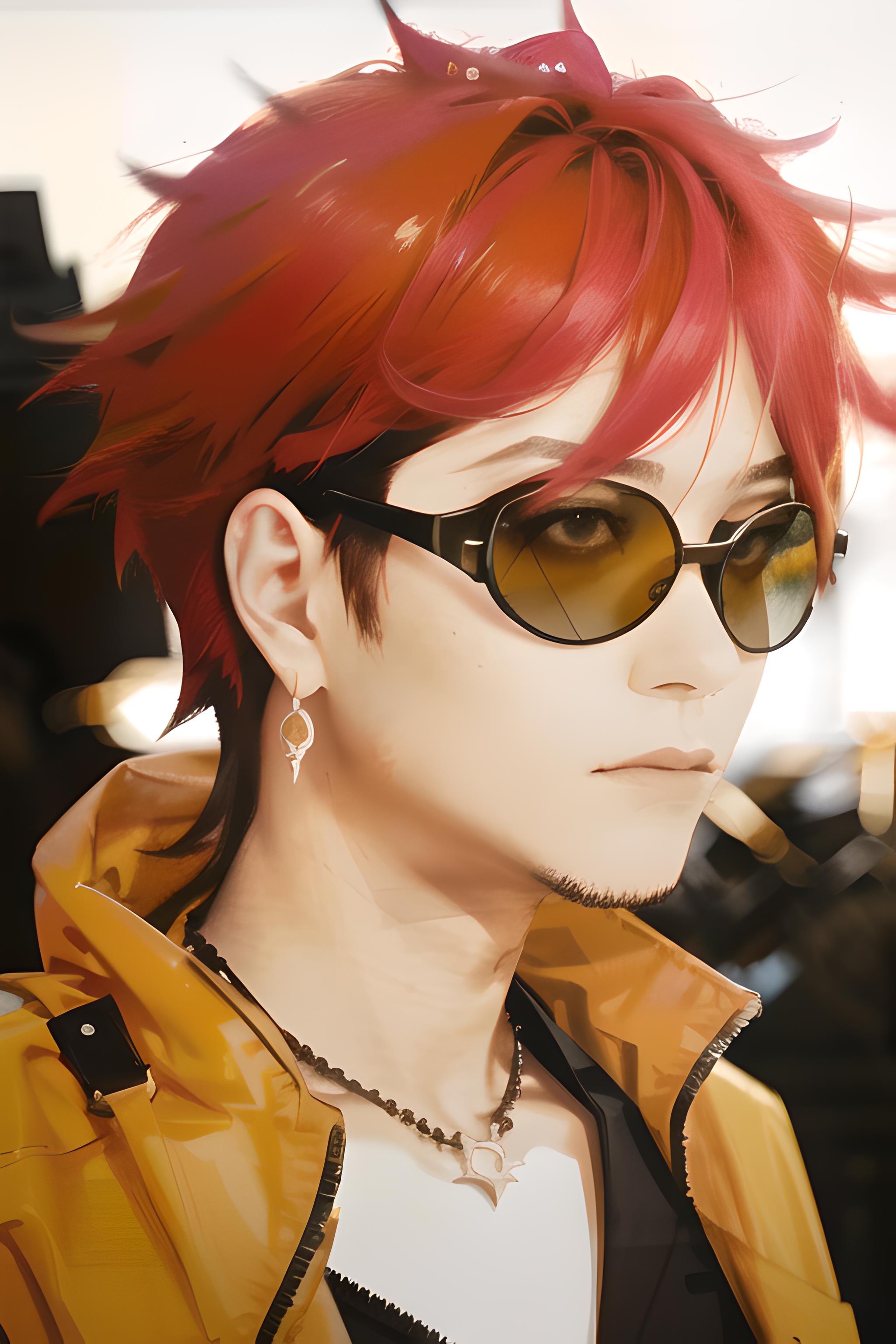 <lora:Copy of PinkSpiderhide:1>,(masterpiece, best quality, ultra-detailed, highres), perfect face, sidelighting, lustrous skin,(bloom), (shine), lighting, ray tracing, sci-fi, city, outdoor, depth_of_field,very detailed background, highly detailed background, Masterpiece, Ultra detailed, great composition,Dynamic angle,[Bottle bottom],(wide shot), extremely delicate and beautiful,(Highest picture quality), (Master's work), solo, 1boy, male focus, jewelry, earrings, red hair, realistic, nose, lips, upper body, sleeveless, piercing, black eyes, long hair, simple background, pink hair, closed mouth, bare shoulders,masterpiece, rich in detail, (fine features), (highest quality), (masterpiece), (detailed eyes), (beautiful) detailed japanese man,beautiful detailed eyes,(straight-on), full body, pumpkin field:1, leaves falling, autumn1.2, happy, smile,(extremely detailed CG unity 8k wallpaper),(masterpiece), (best quality), (ultra-detailed), (best illustration),(best shadow), seductive , sunset , halloween:1 , flames, perfect lighting , perfect ??????? , shy , date , sitting , beautiful , solo