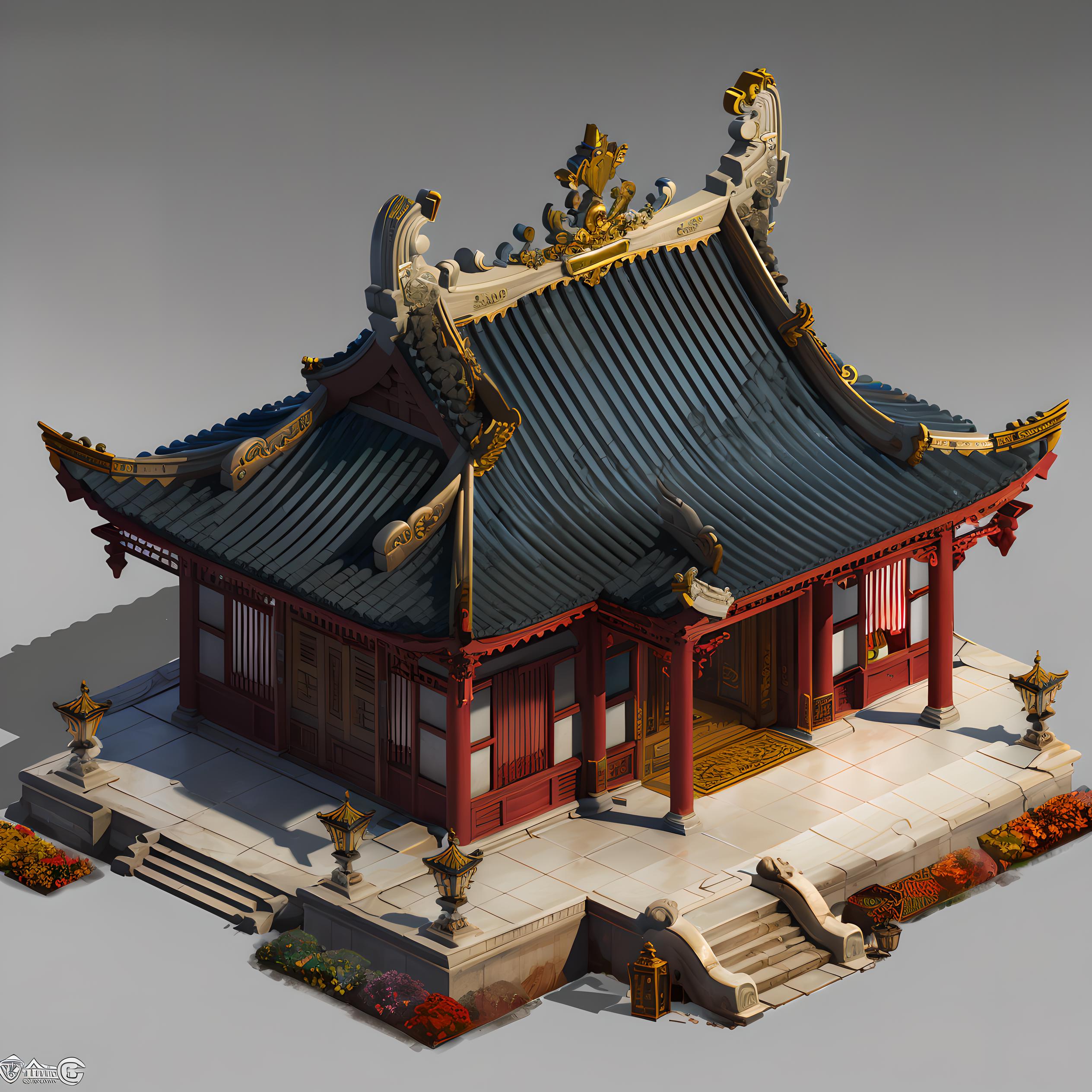 这是一个关于立方体视角的CG游戏风格的中国式建筑的Lora模型