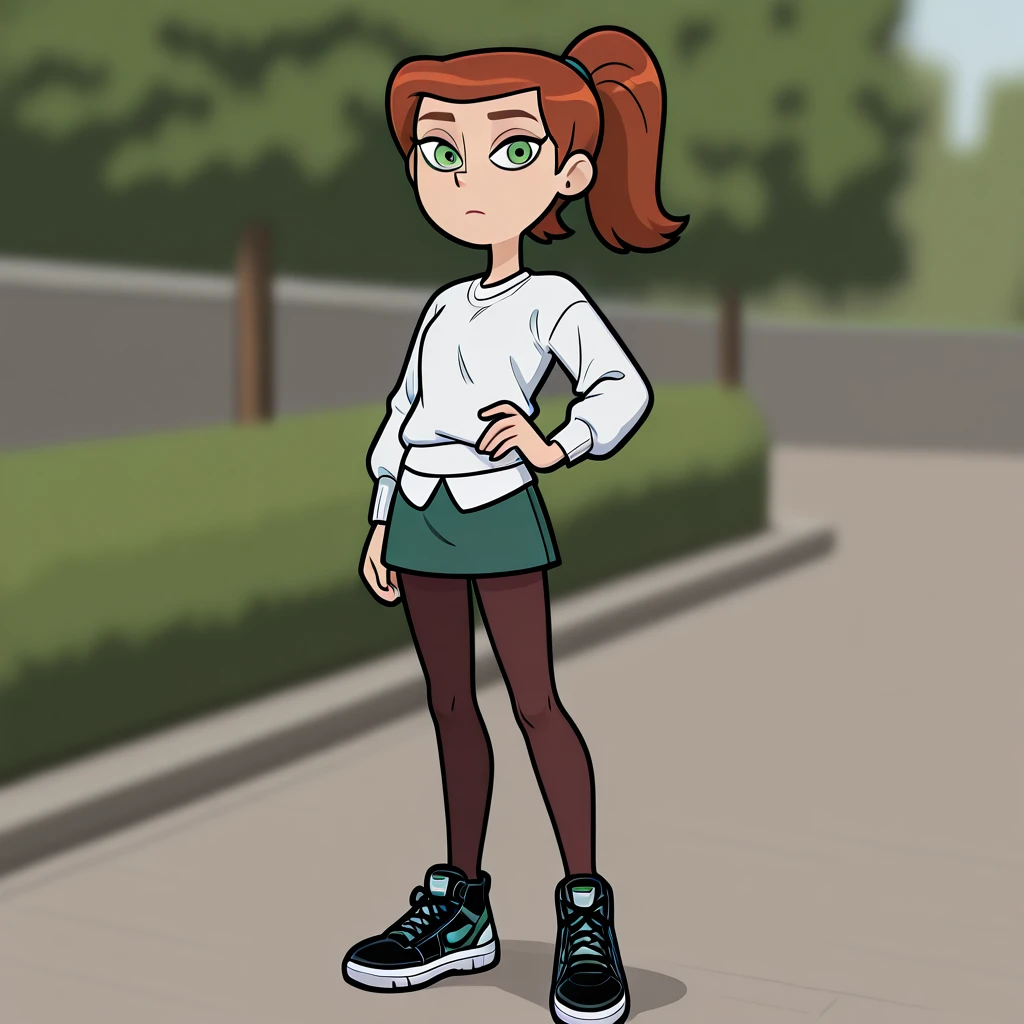 There are two versions, one with long hair, and other with short hair, just chose accordingly when creating the prompt, also works well with ponytail.