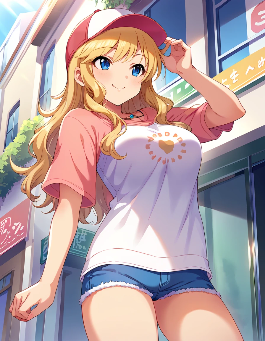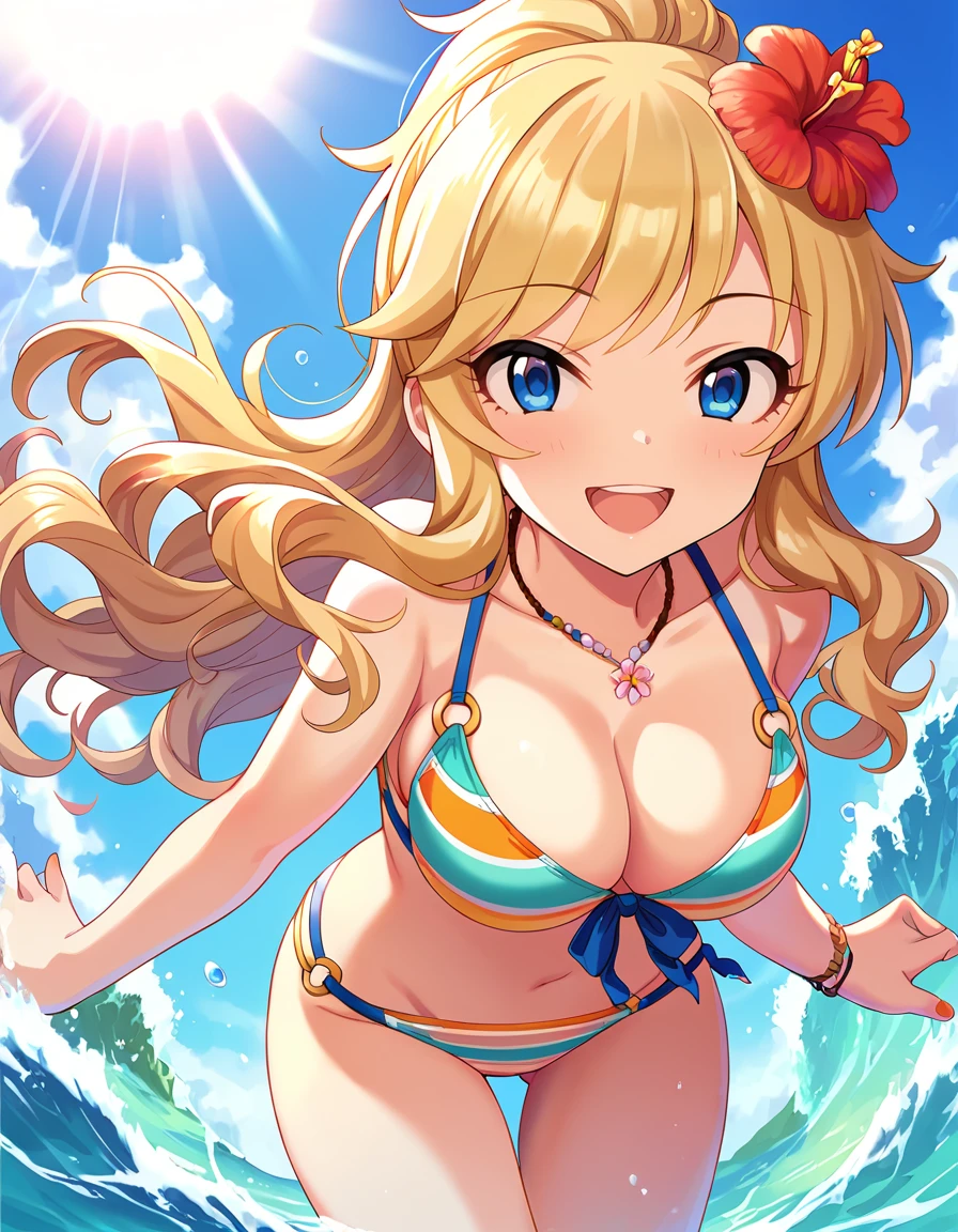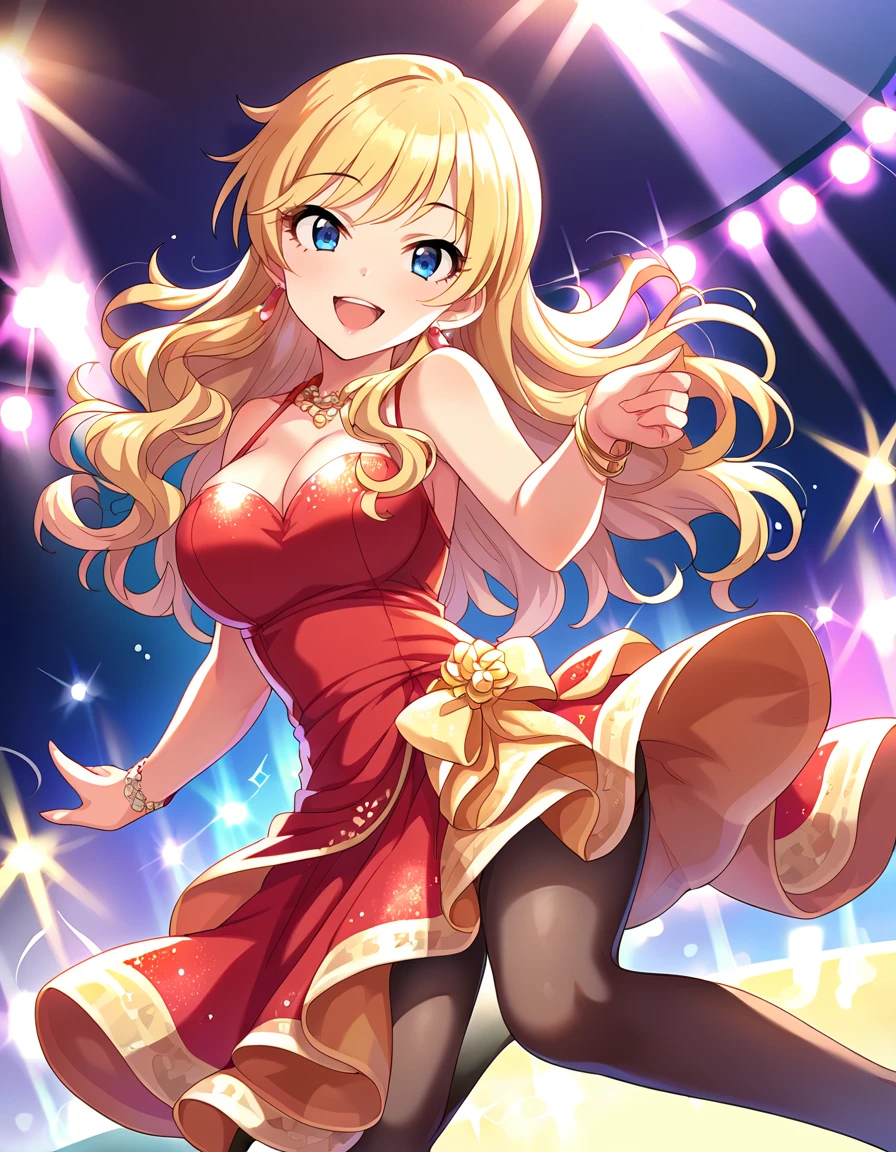 ootkyi, long hair, blonde hair, wavy hair, hair down, bangs, blue eyes, large breasts,