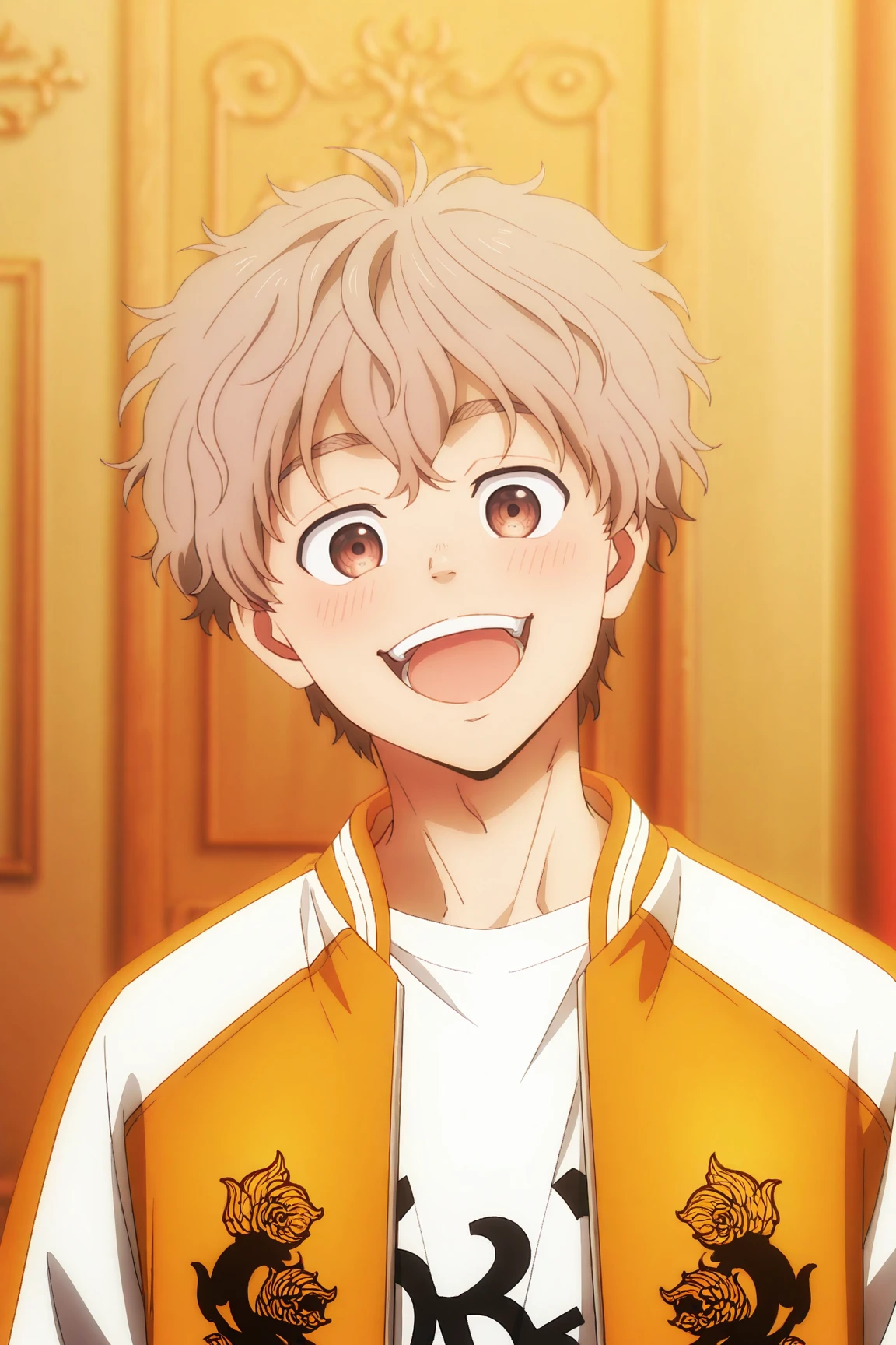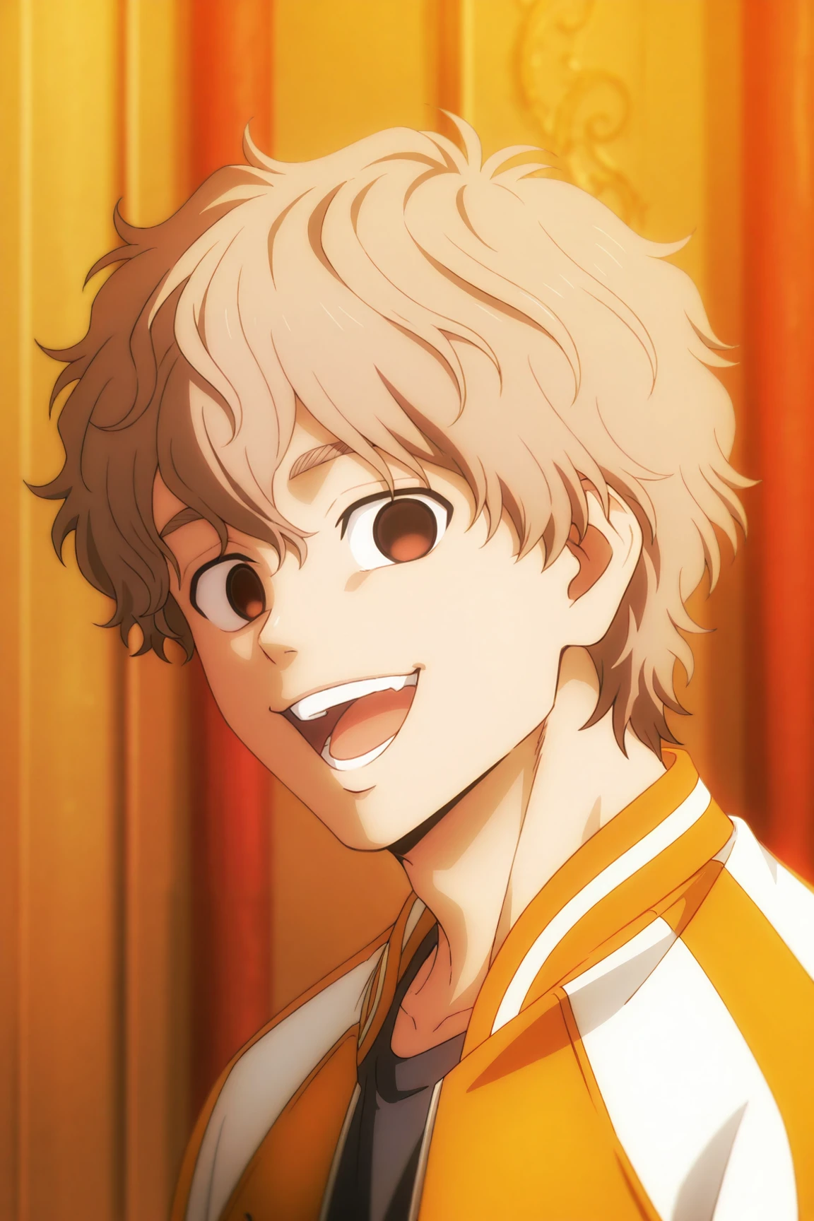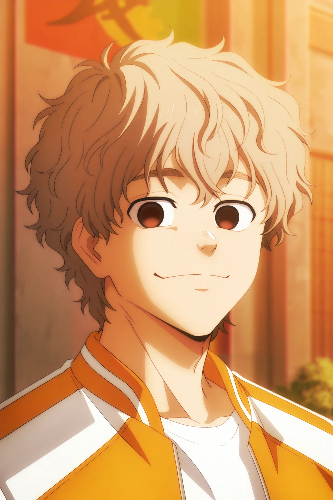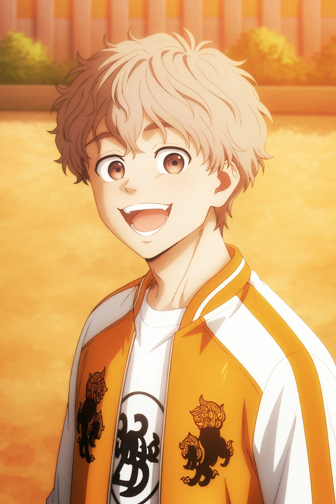choji tomiyama, beige hair, brown eyes