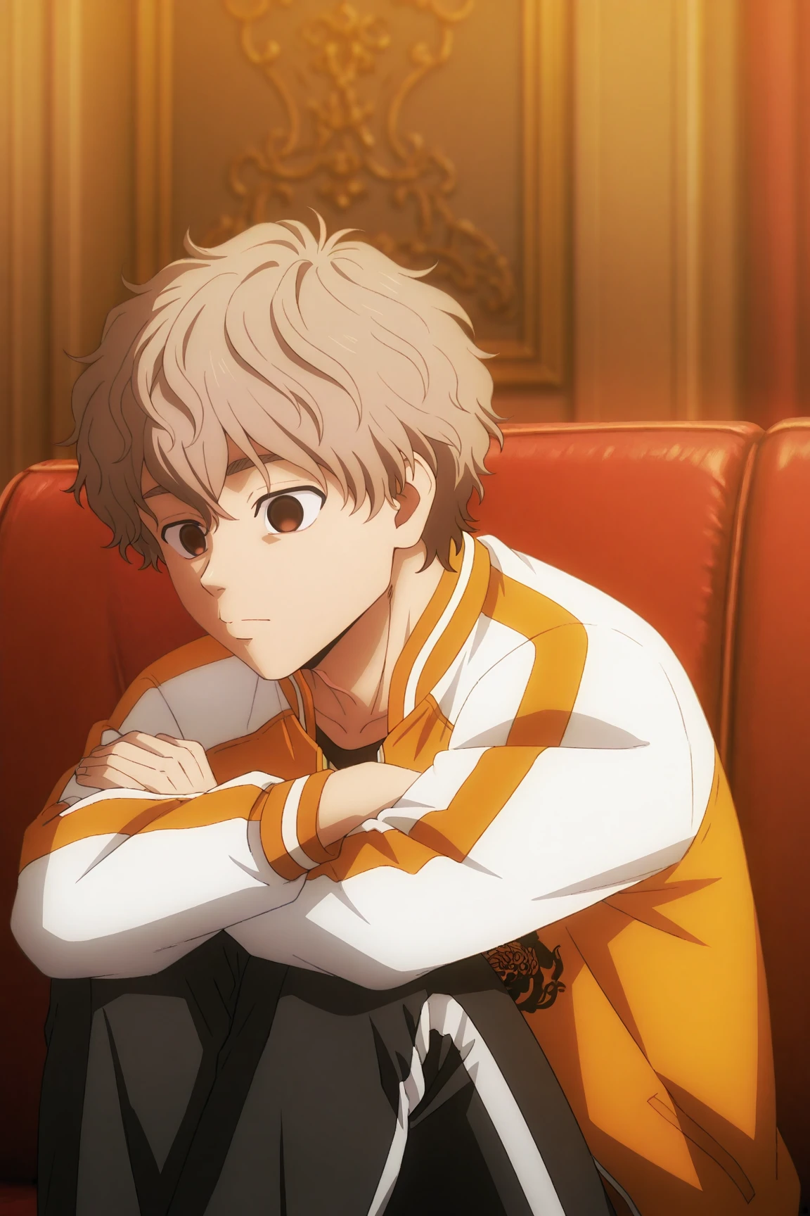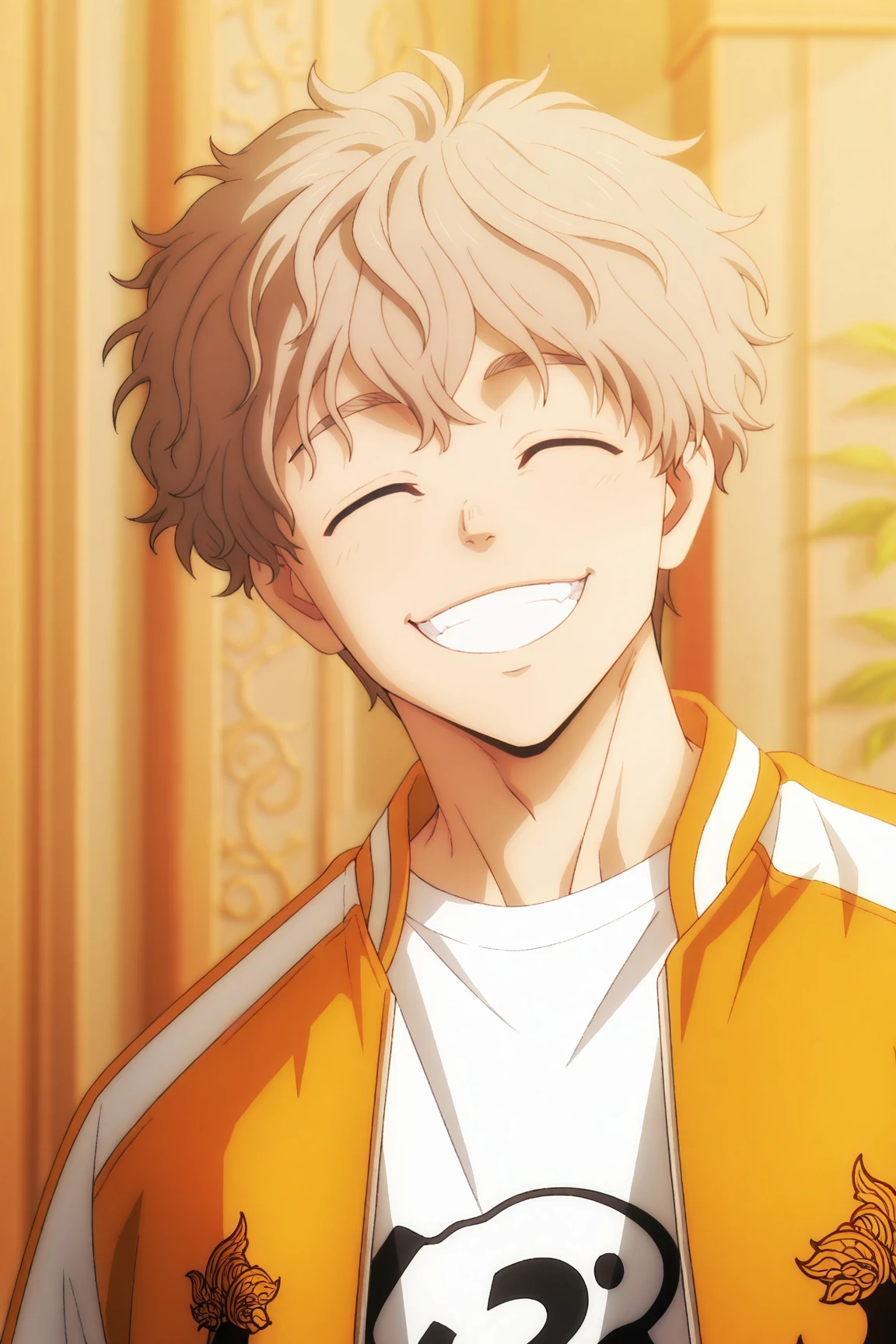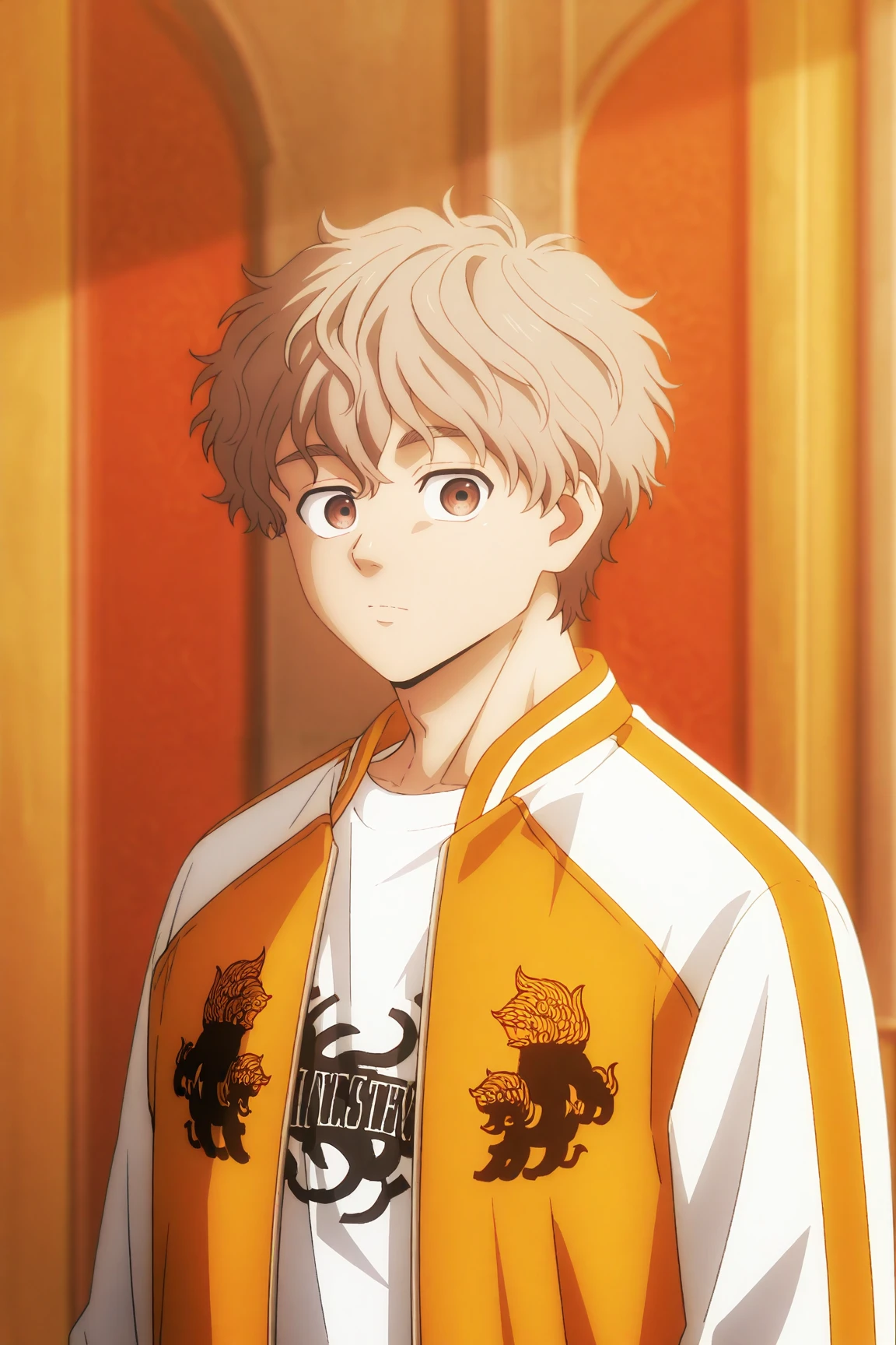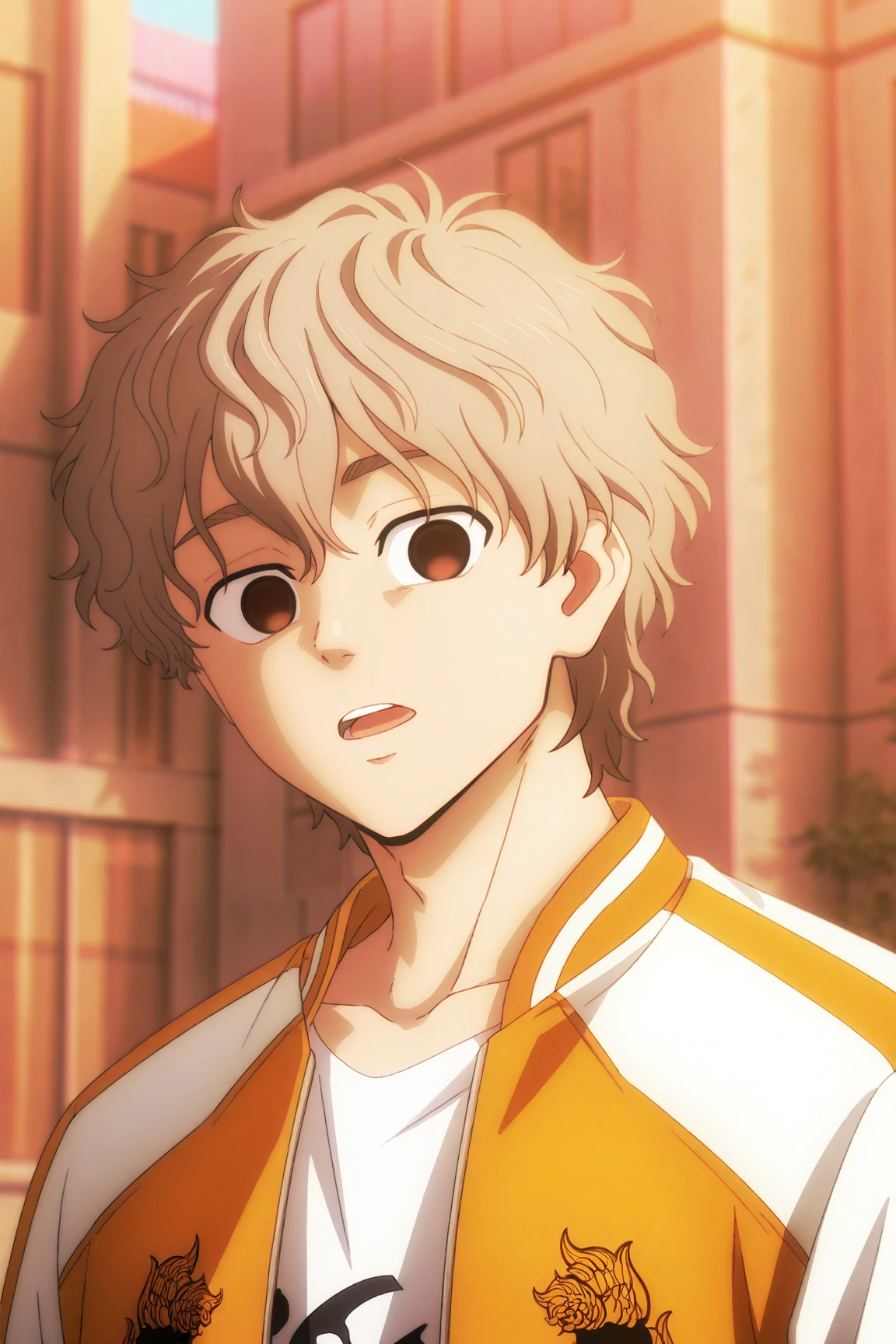 choji tomiyama, beige hair, brown eyes