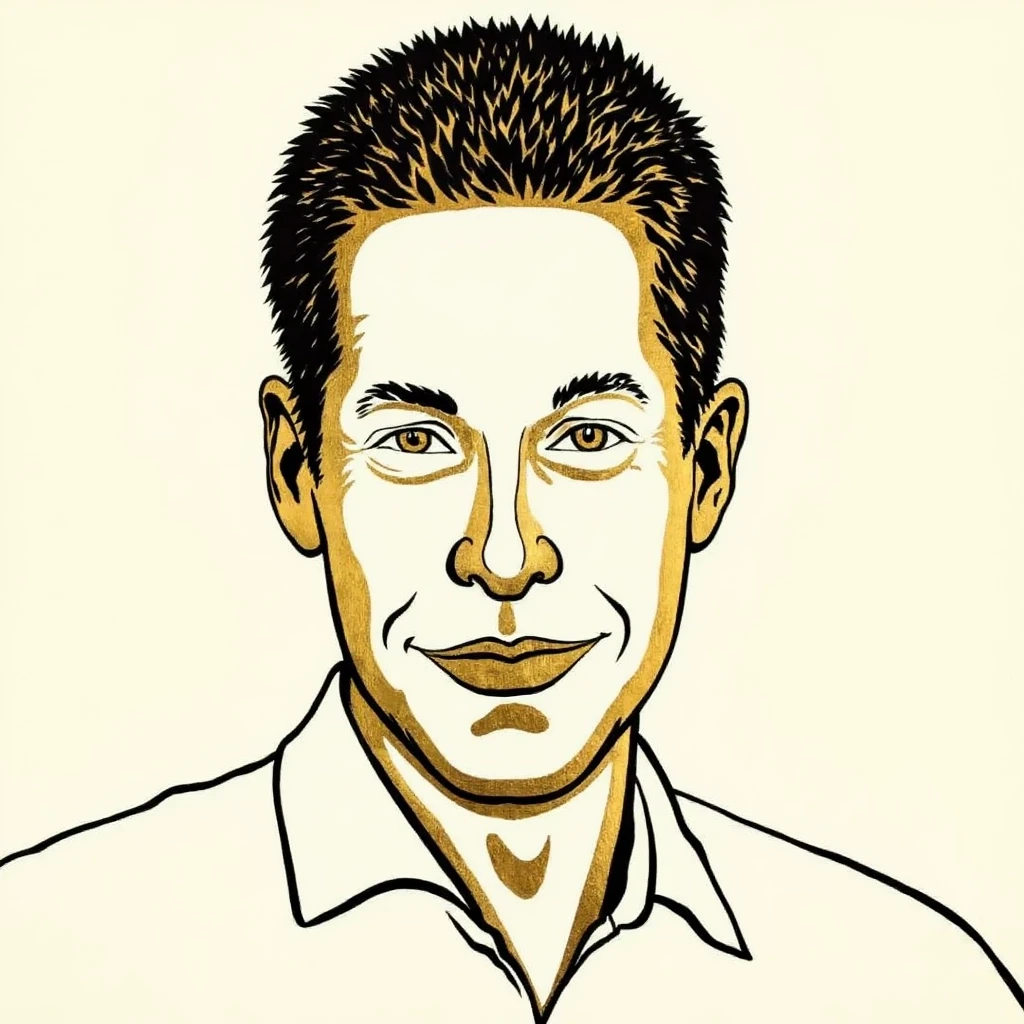 This is a digital drawing of a man rendered in a stylized, minimalist line-art technique. golden tone and black outlines.