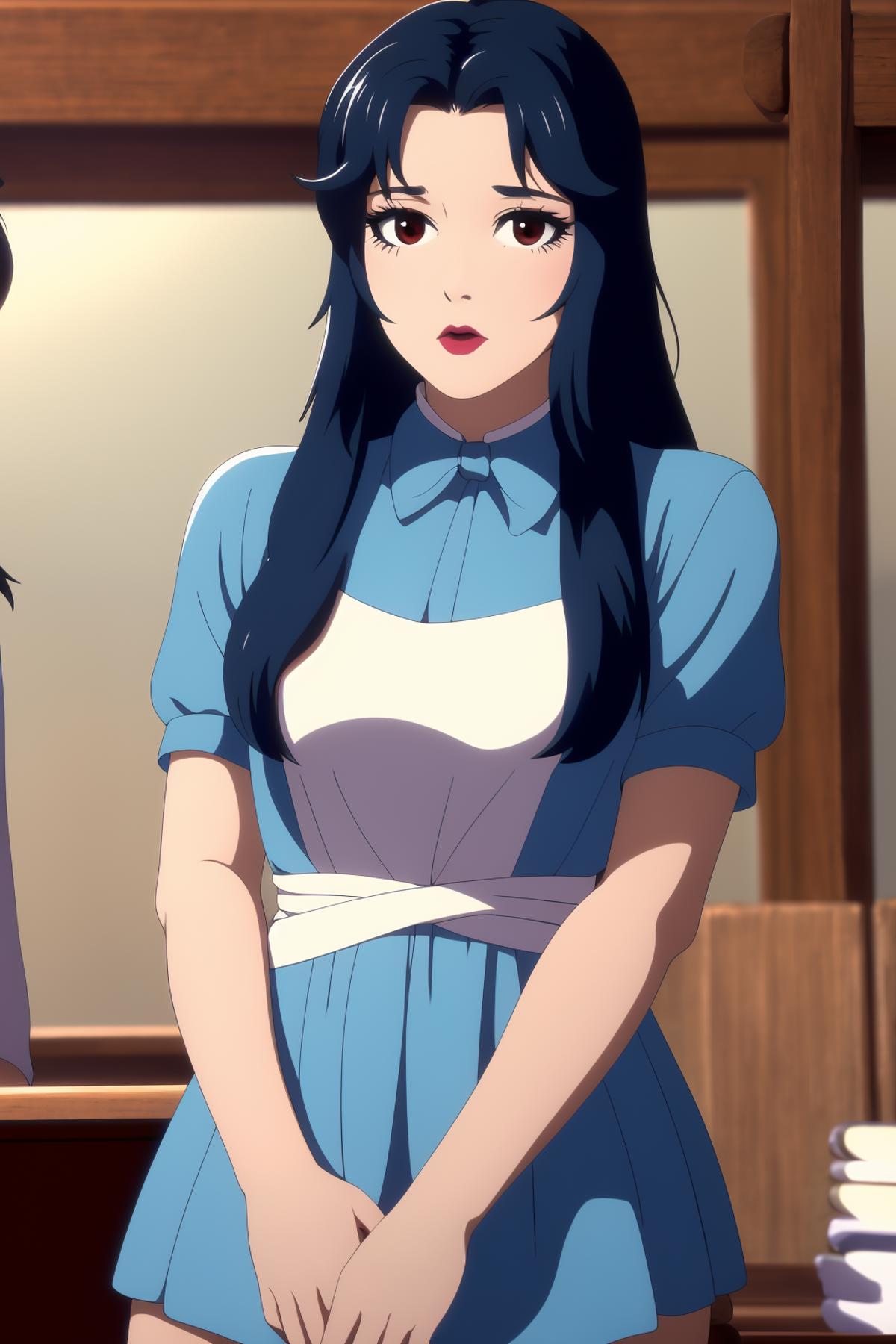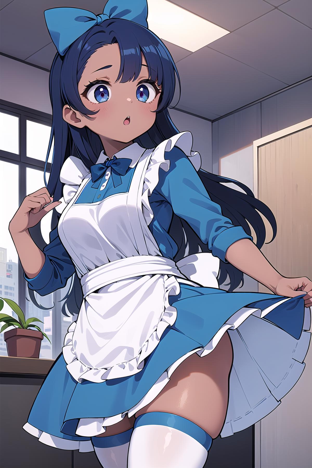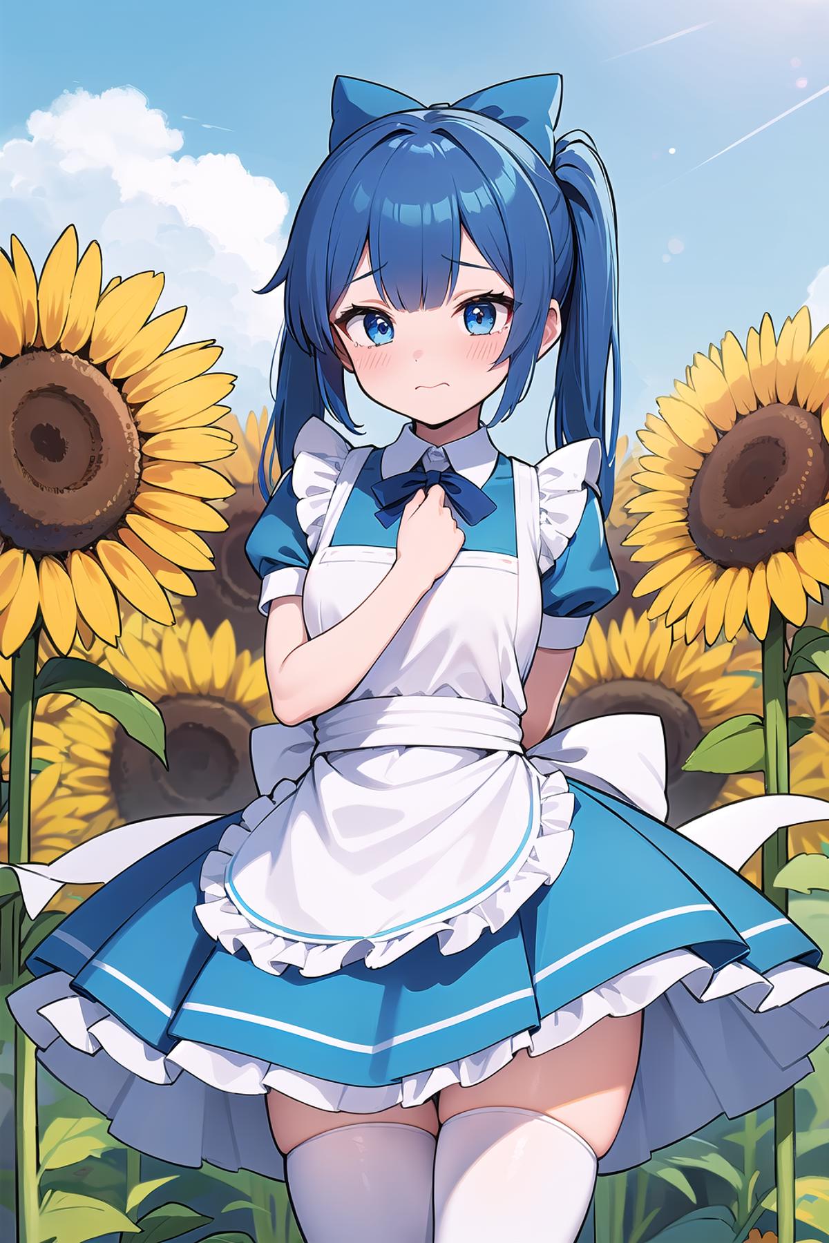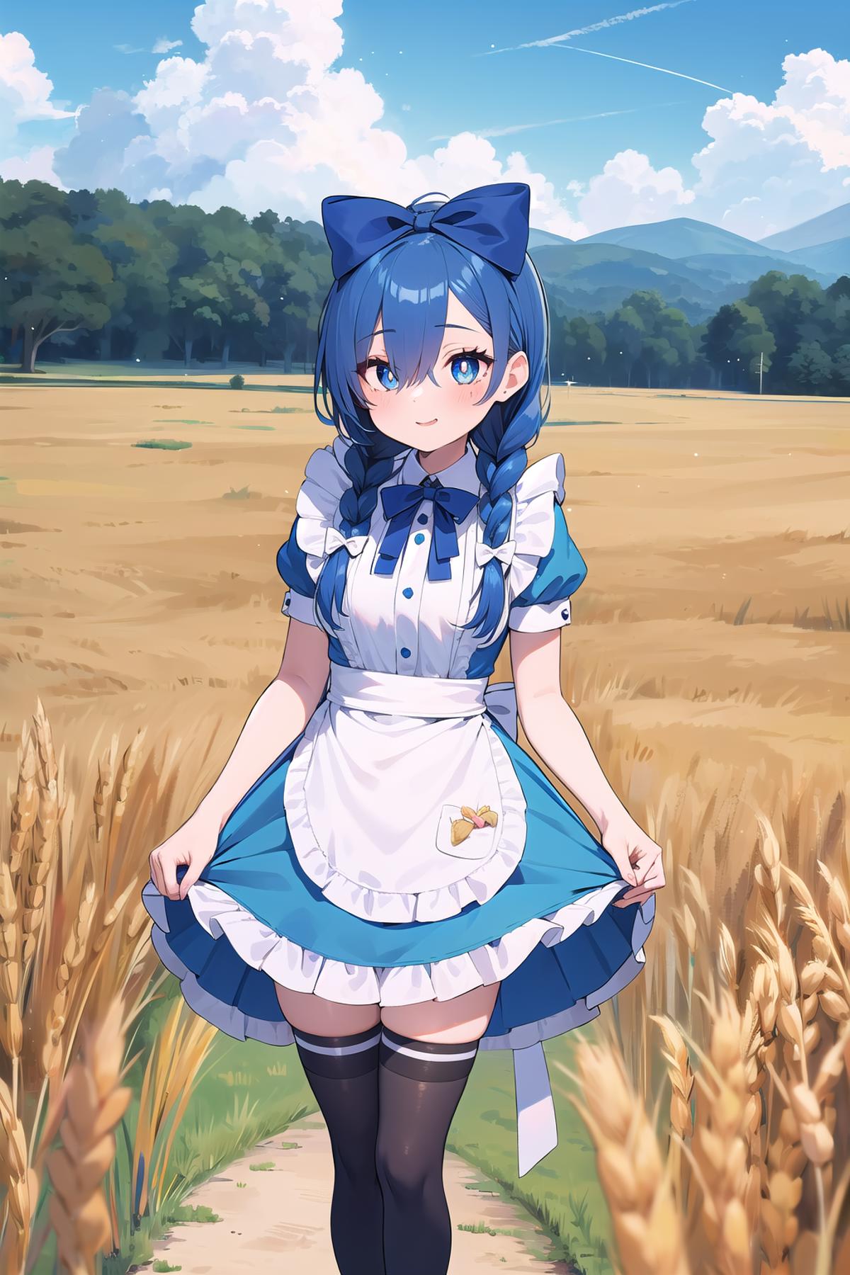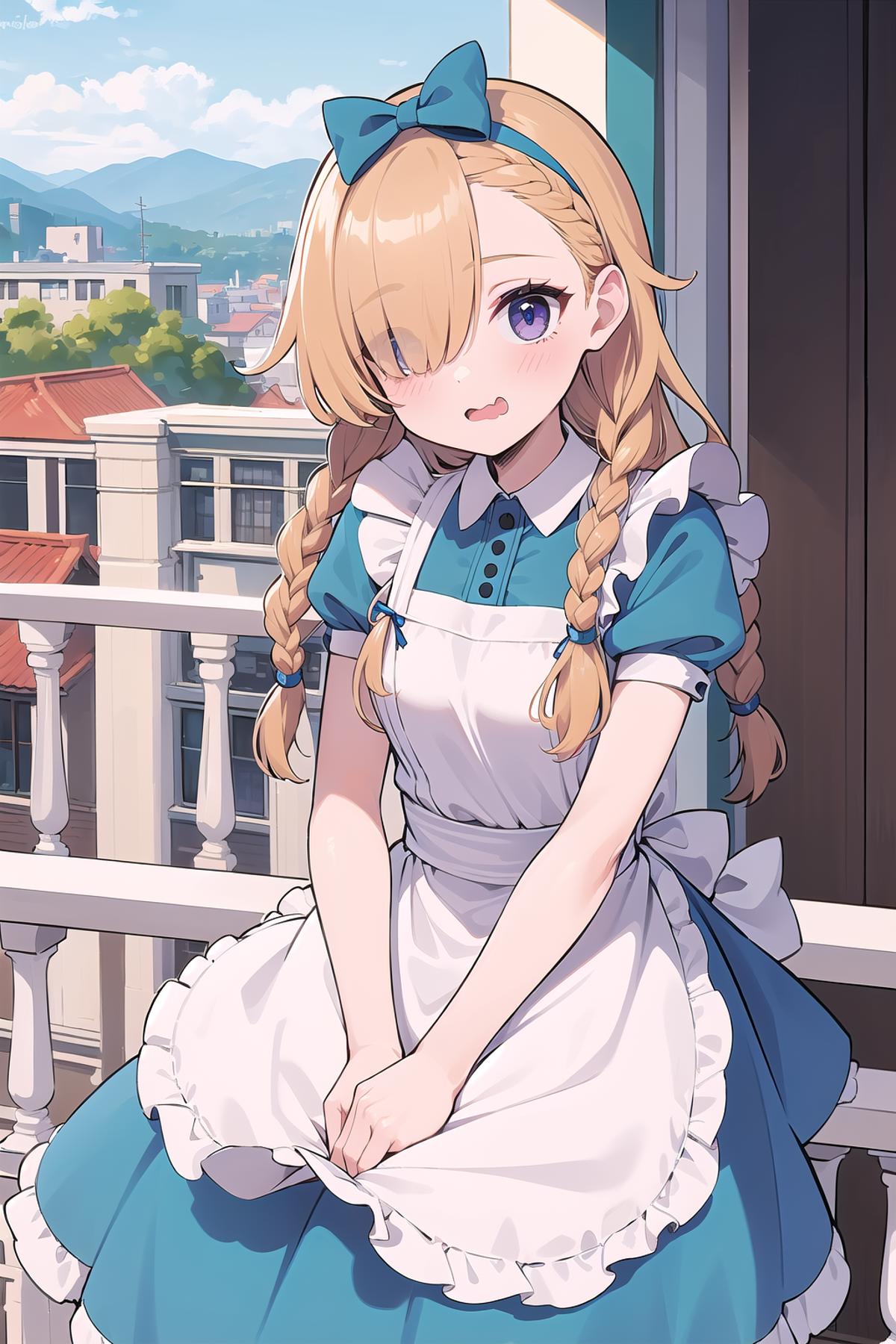 This is a blue apron dress outfit of main character in "Alice's Adventures in Wonderland." It uses a large dataset and therefore supports many variations.