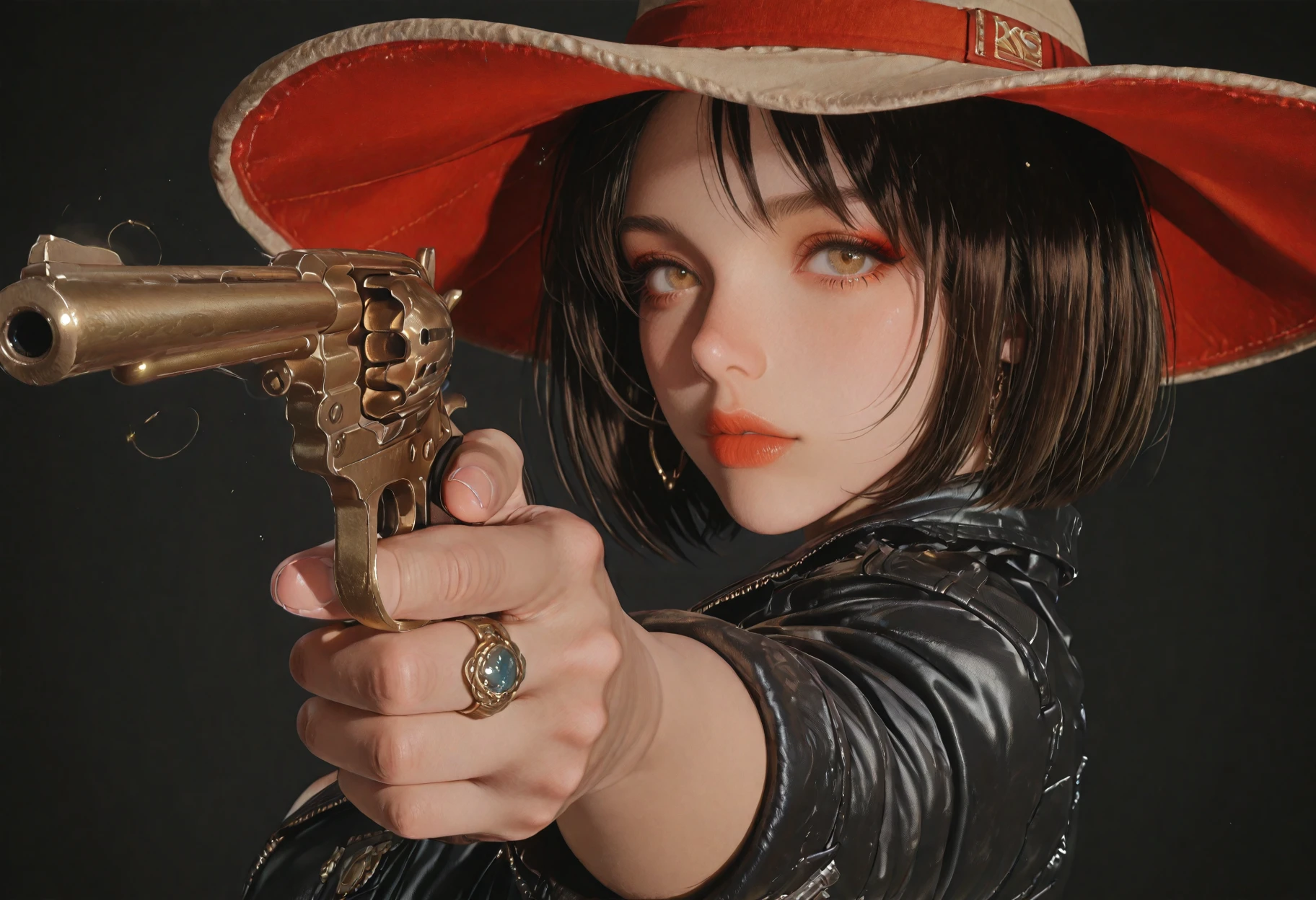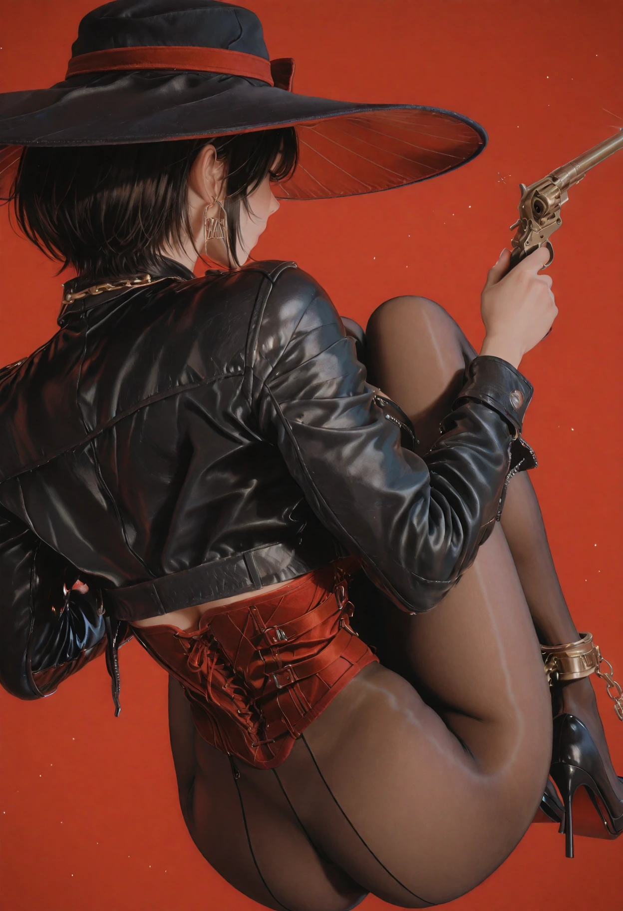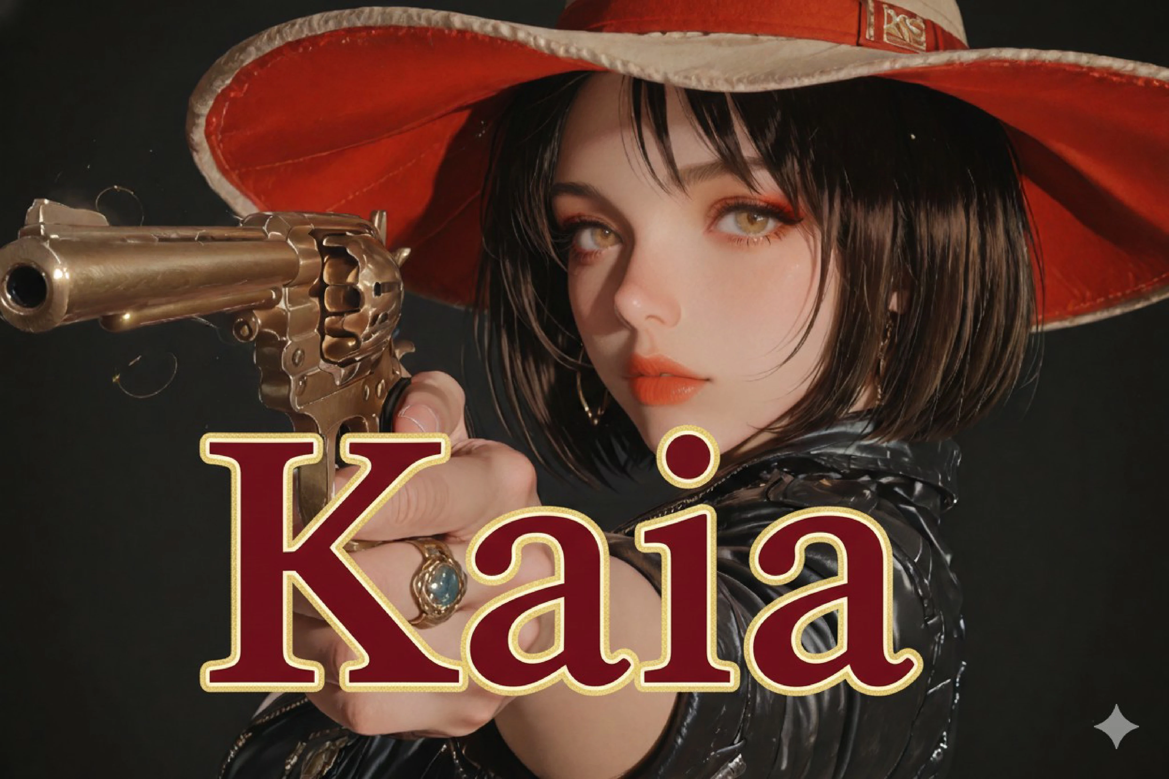 Velvet Kaia is a high-fashion, neo-western protagonist defined by a striking blend of elegance and lethality. Her design features a sophisticated "noir-chic" aesthetic, characterized by a mix of heavy leather, delicate jewelry, and a signature crimson-and-black color palette.