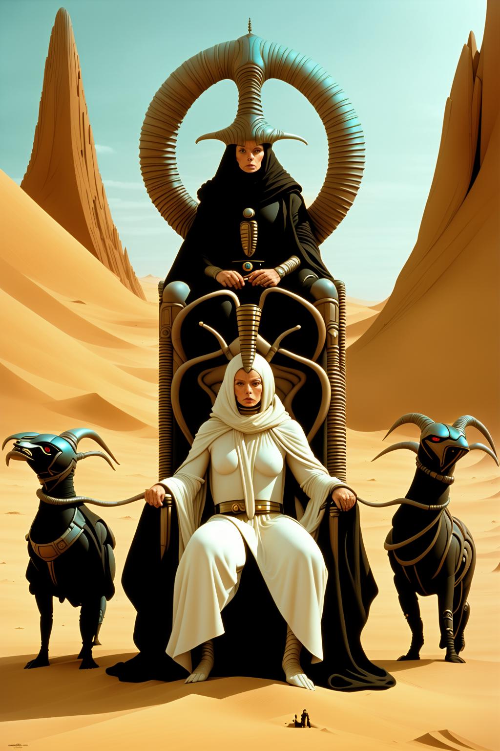 Jodorowsky's Dune Model, driven for 10 epochs and 2880 steps, encapsulates the visionary and surreal aesthetics of Alejandro Jodorowsky's unfinished film "Dune." Inspired by Jodorowsky's unique artistic style, the model excels at generating images that evoke the dreamlike and otherworldly atmosphere of his unmade masterpiece.
