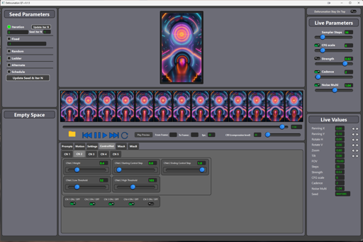 Deforumation is an unofficial Live-manipulation tool for Deforum animation extension.