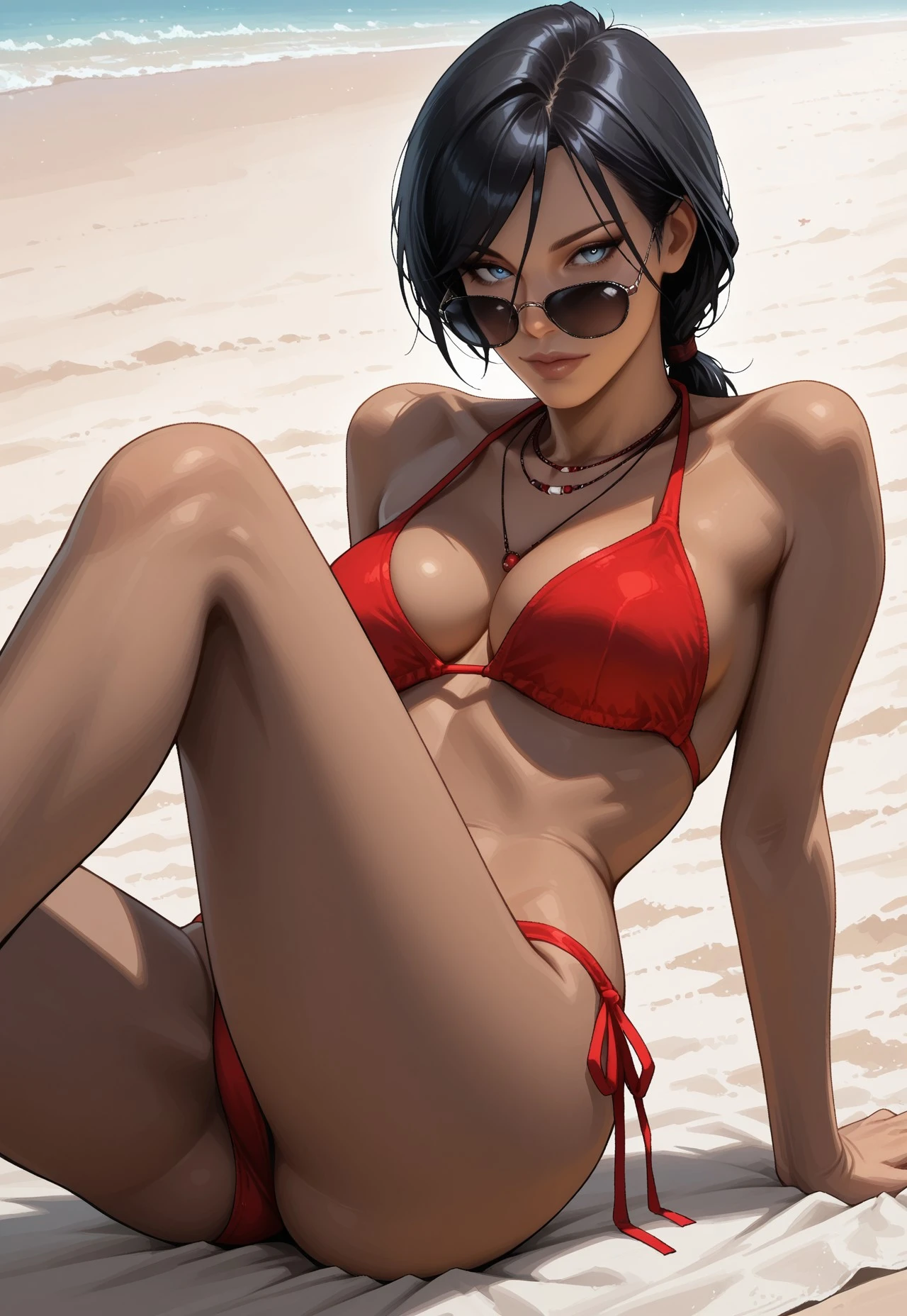 chloeu2at, black hair, blue eyes, ponytail, dark-skinned female,