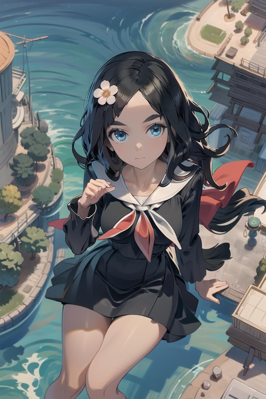 Default Outfit (unstable): black dress, white sailor collar, neckerchief