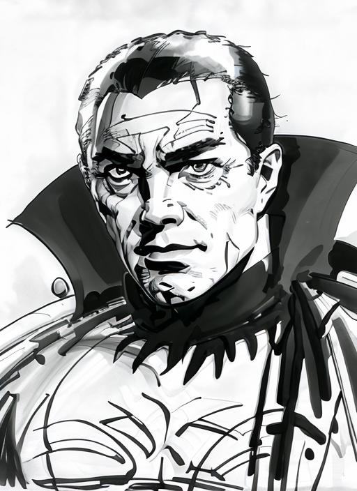Fun style based on the work of the great comic artist. Use "black and white ink sketch" for a more Sin City flavor to the results.