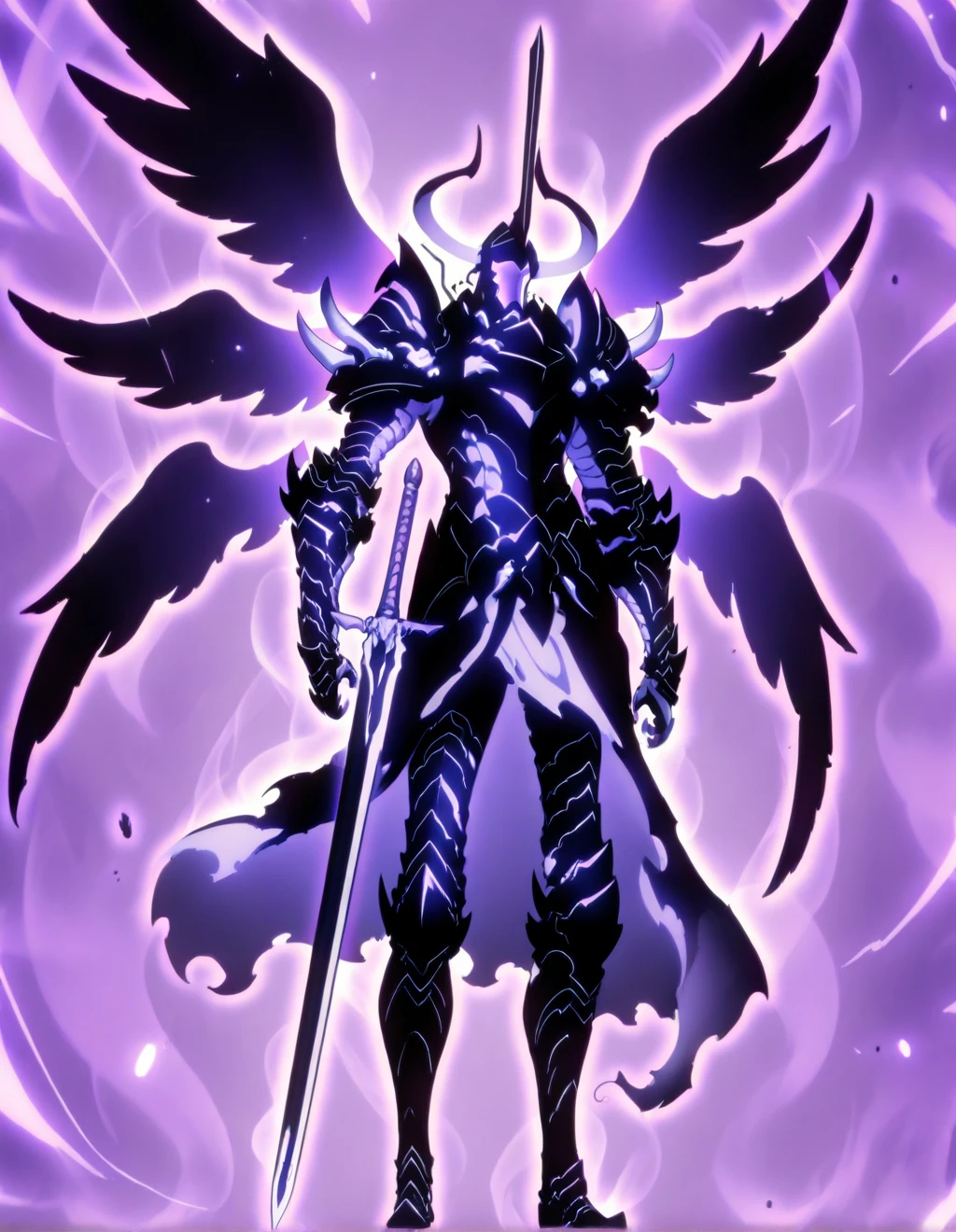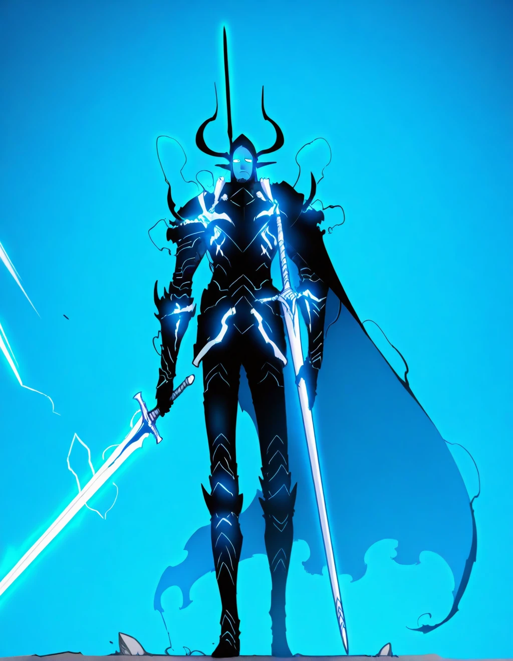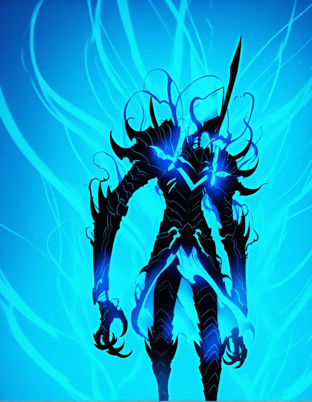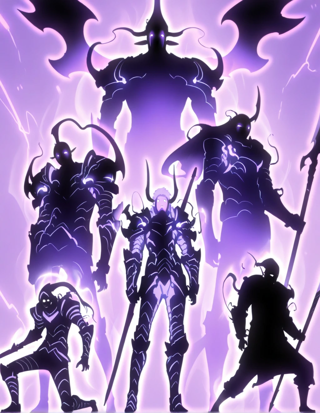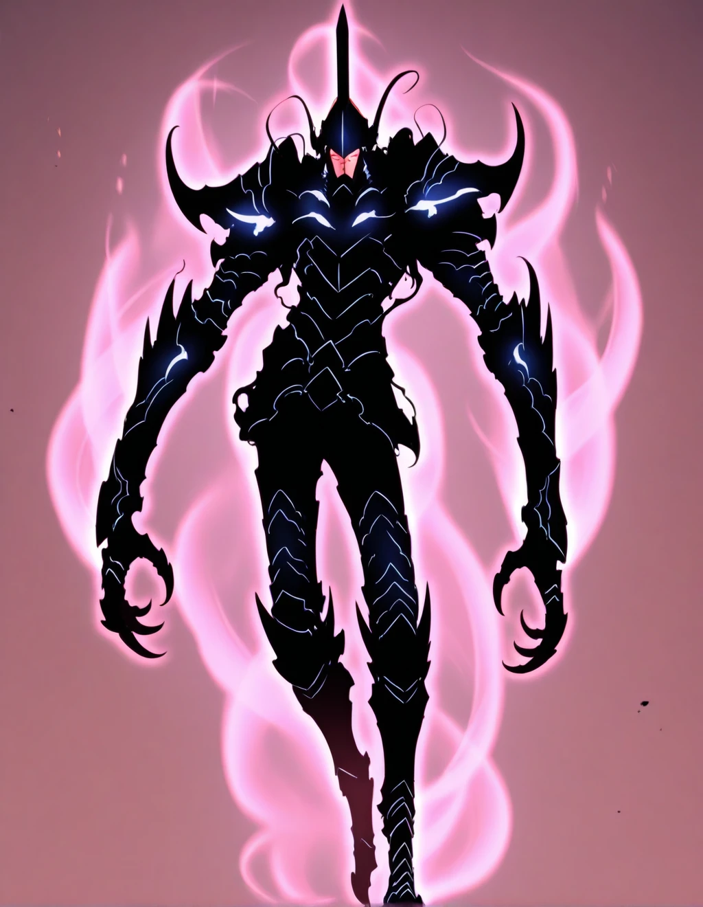 For style, use a Glowing aura, silhouette, Glowing eyes, black armor, 1boy, 1girl