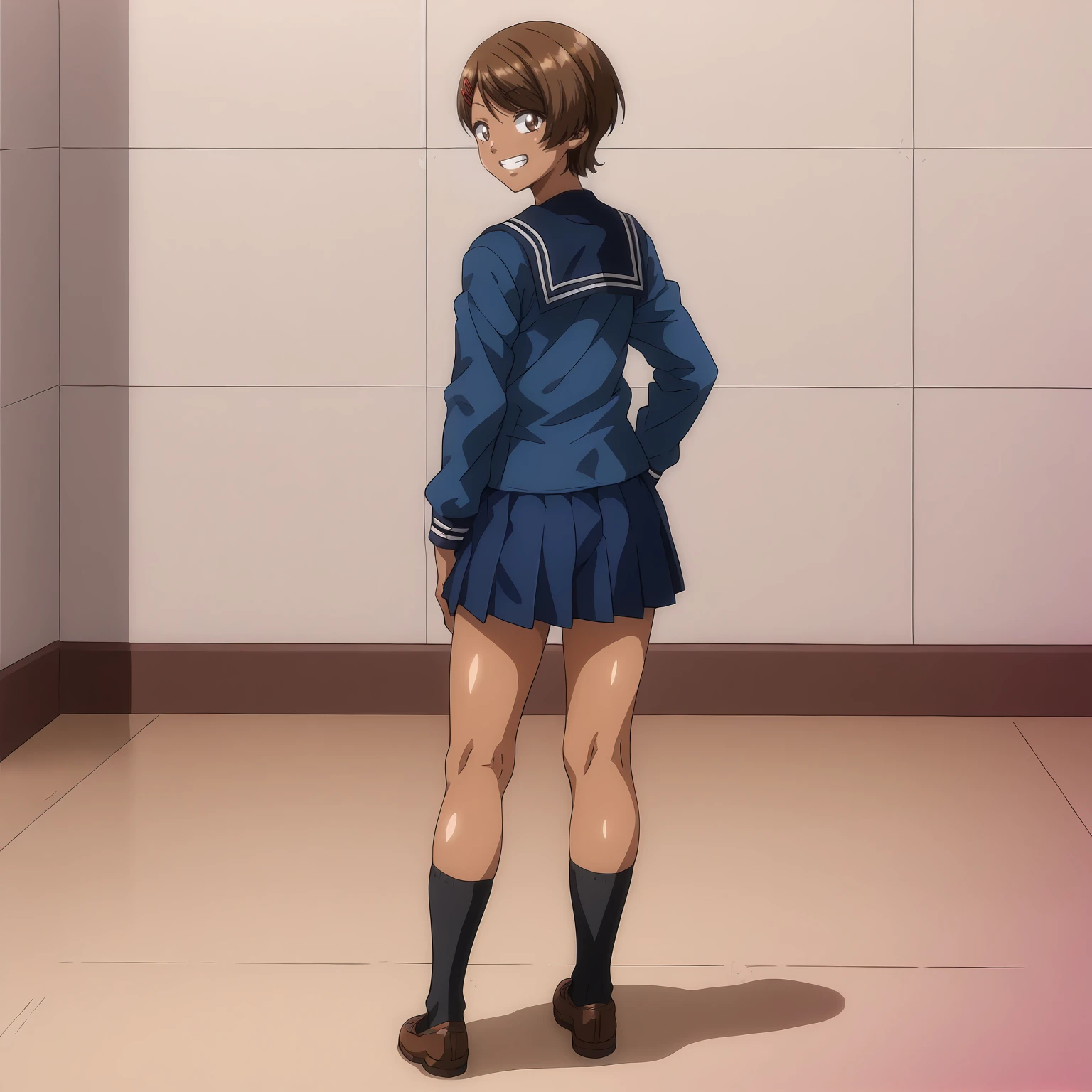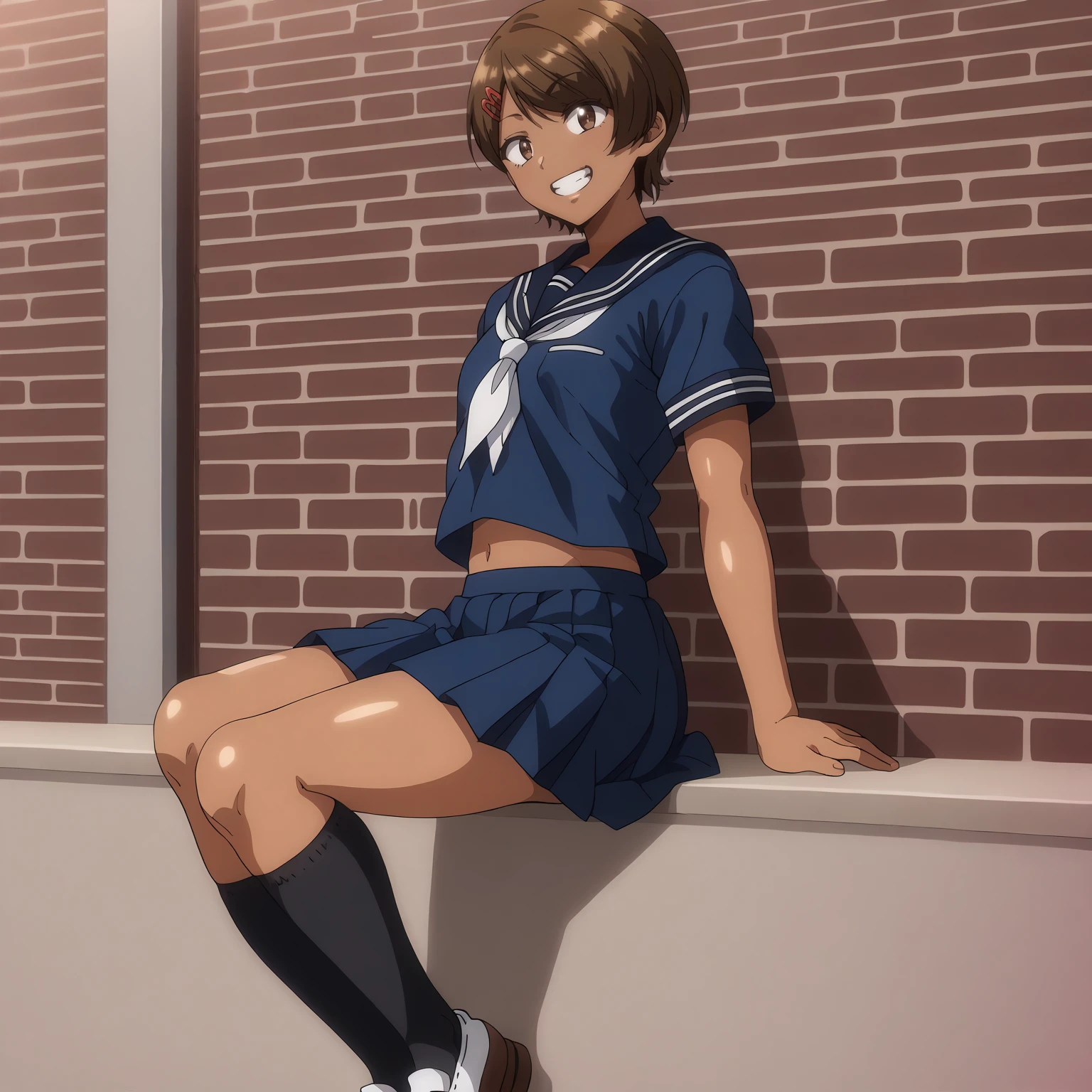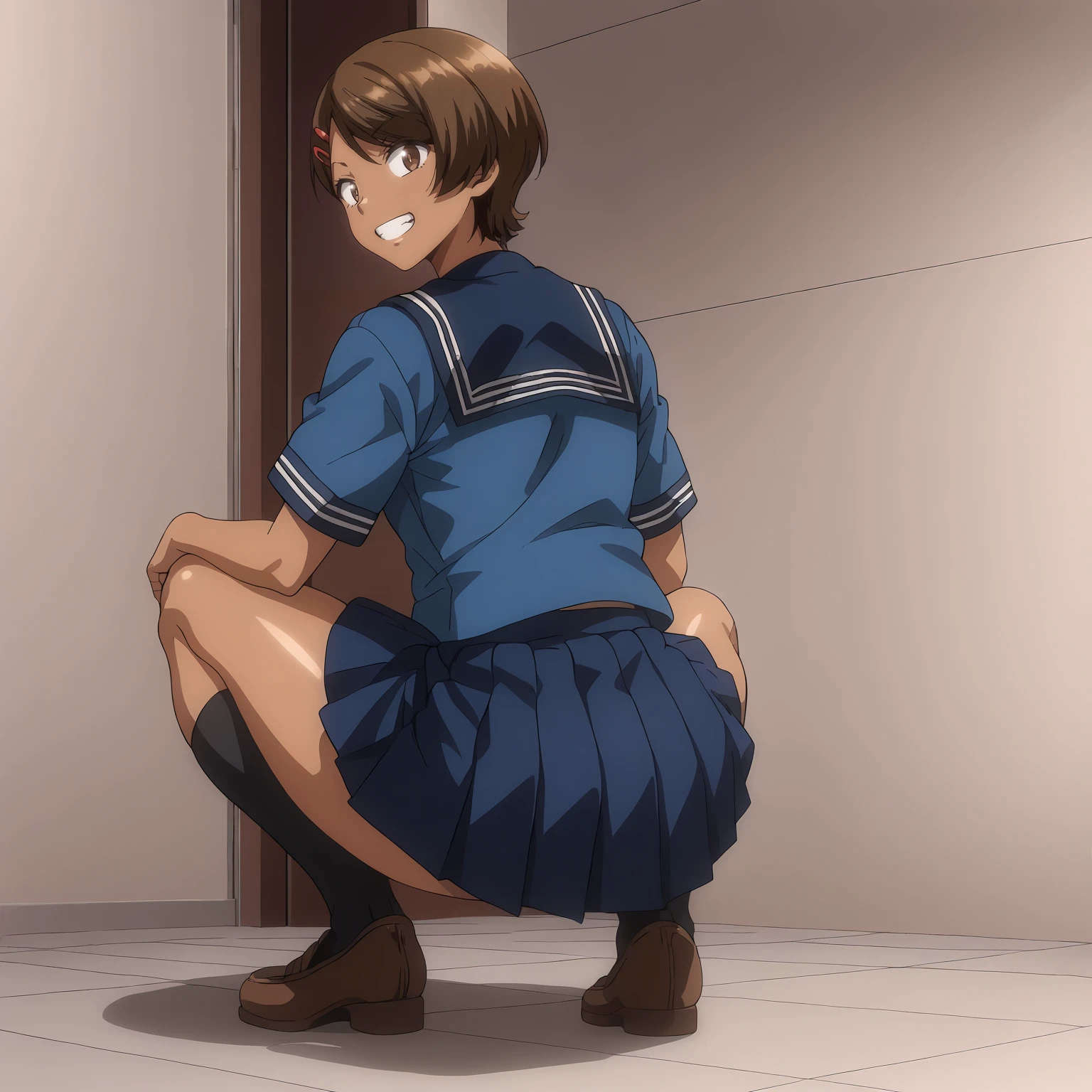 MioKatou,1girl,brown hair,short hair,hairclip,brown eyes,dark skin,
