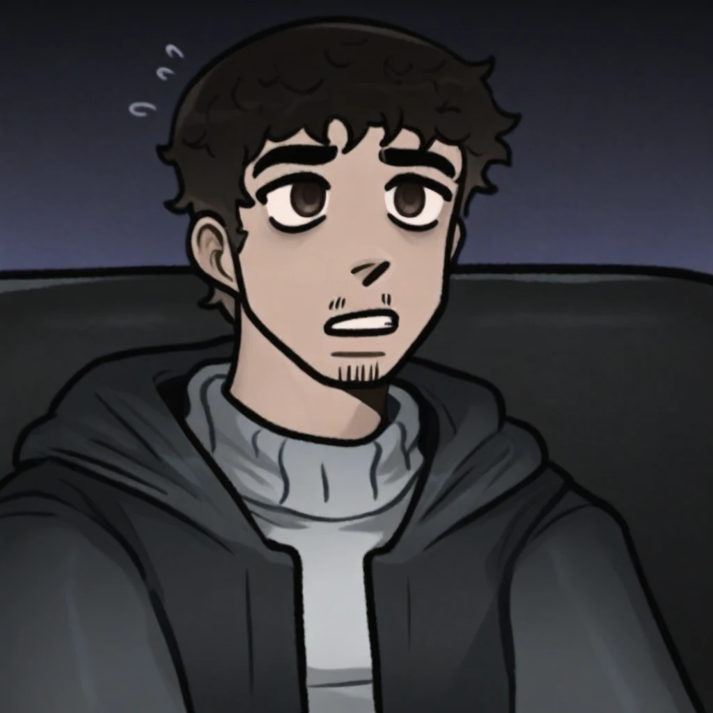 MikeS, dark hair, messy hair, short hair, brown eyes, facial hair, eyebags, male