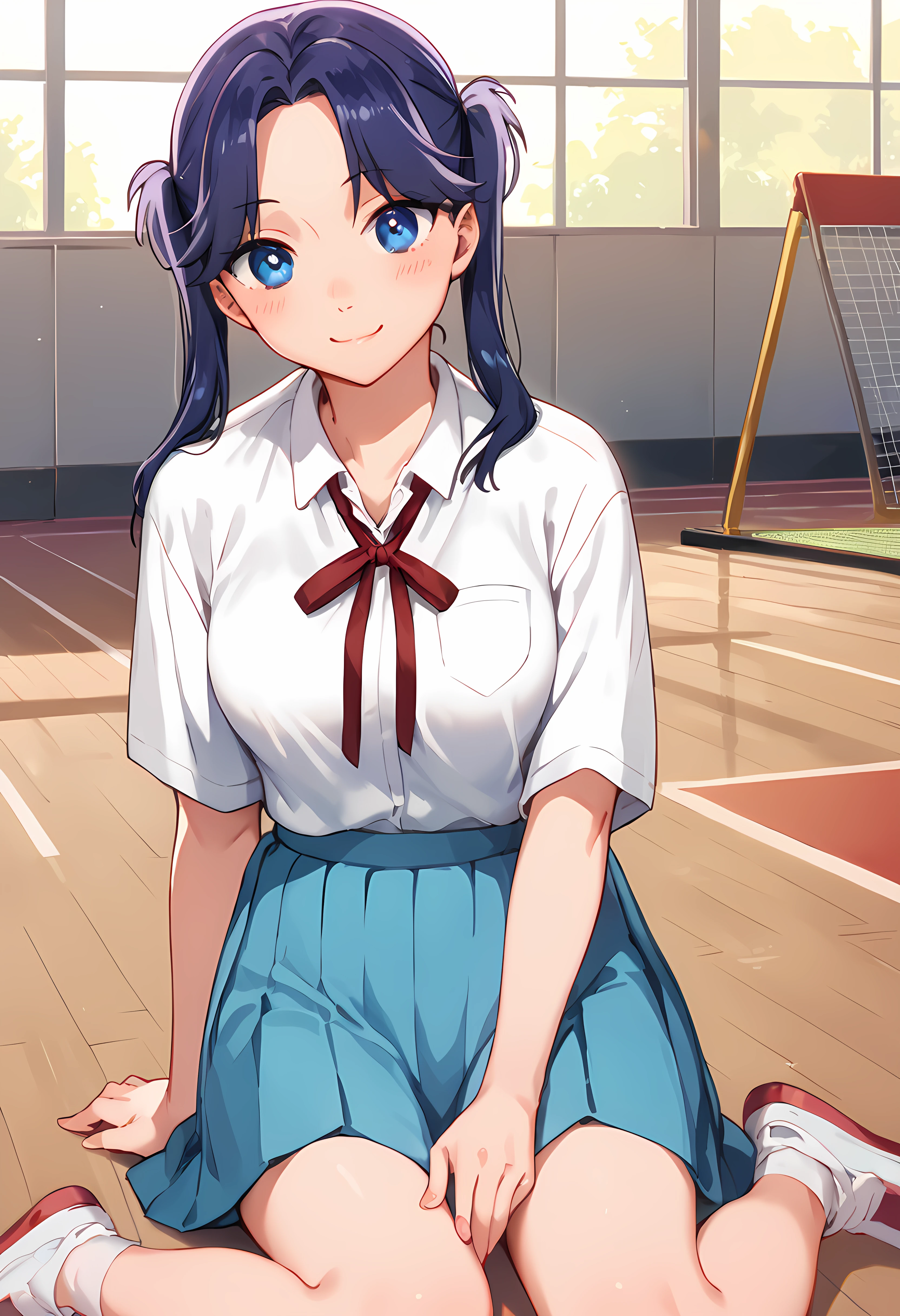 moriya ayame,blue hair,blue eyes, twintails,