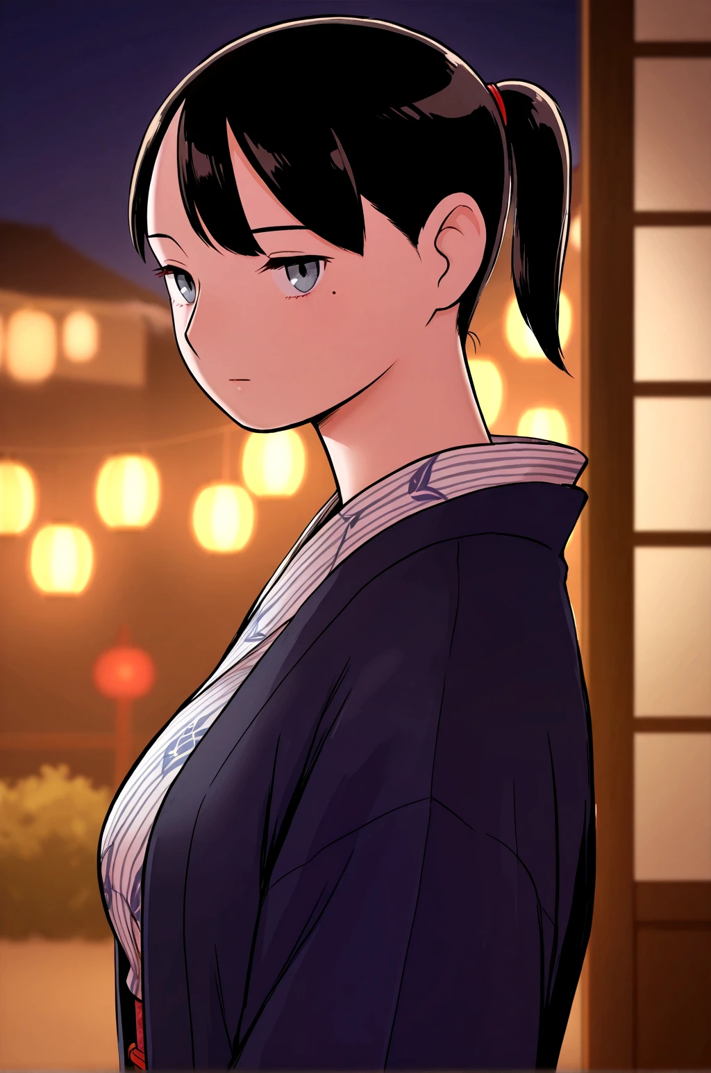 hote1_newmmm, grey_eyes, mole_under_eye, black_hair, short_hair, short_ponytail