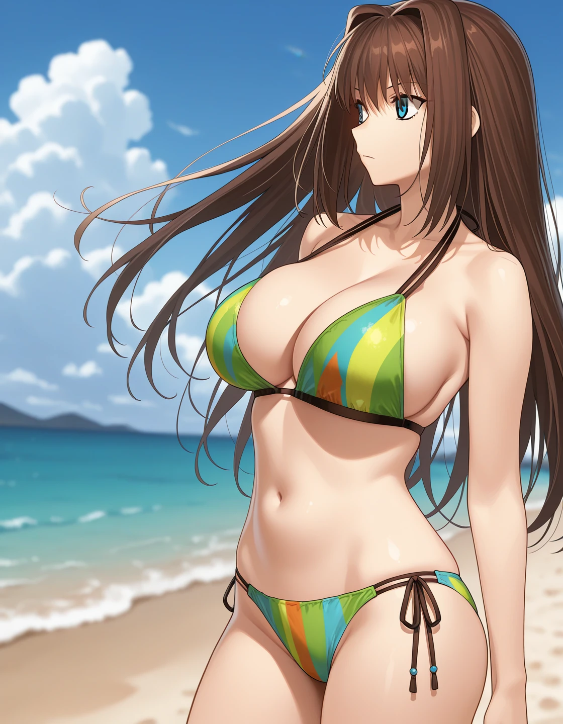 halterneck, green bikini, multicolored bikini, side-tie bikini bottom