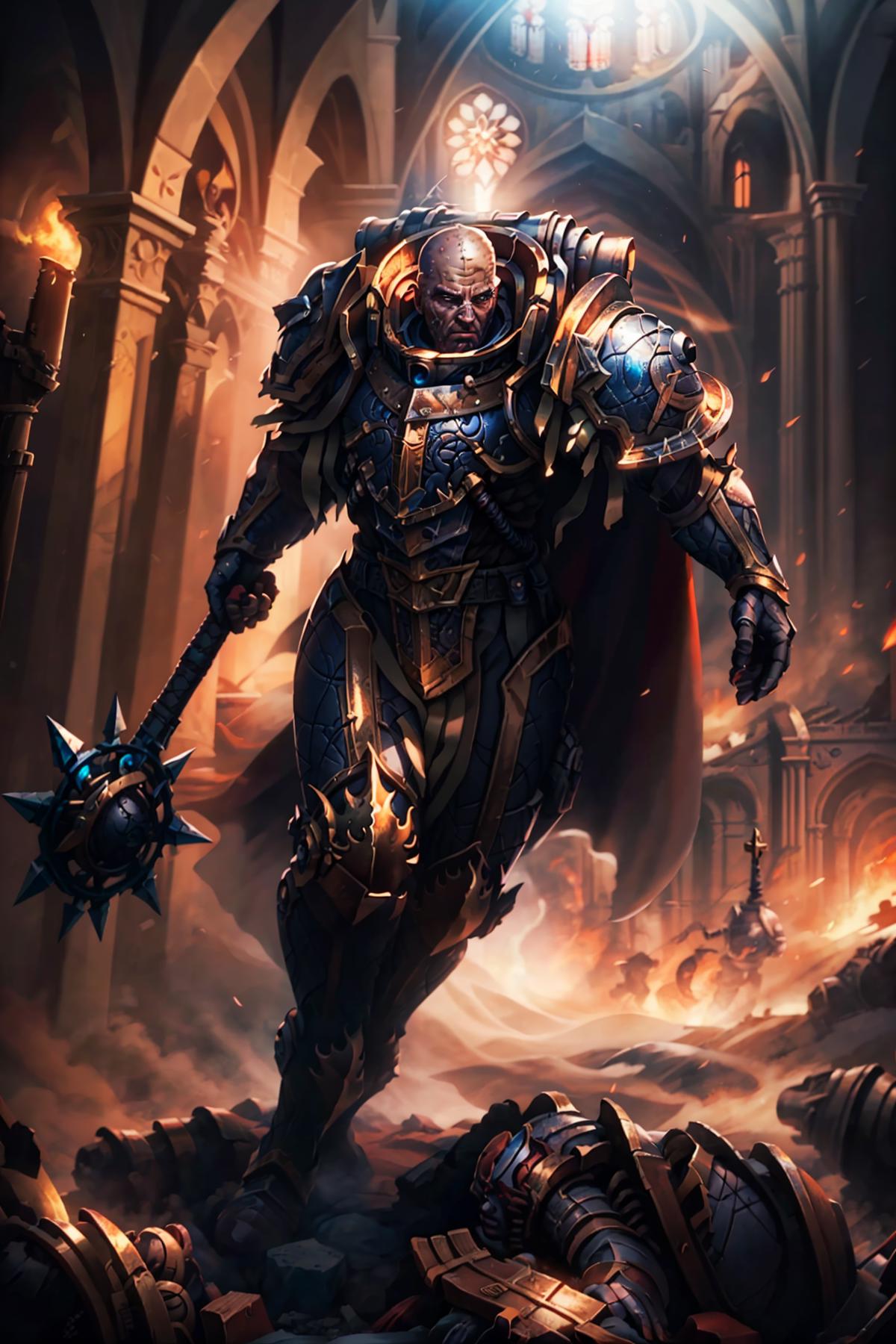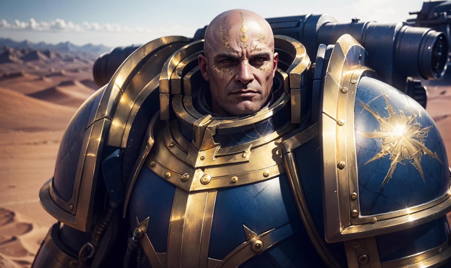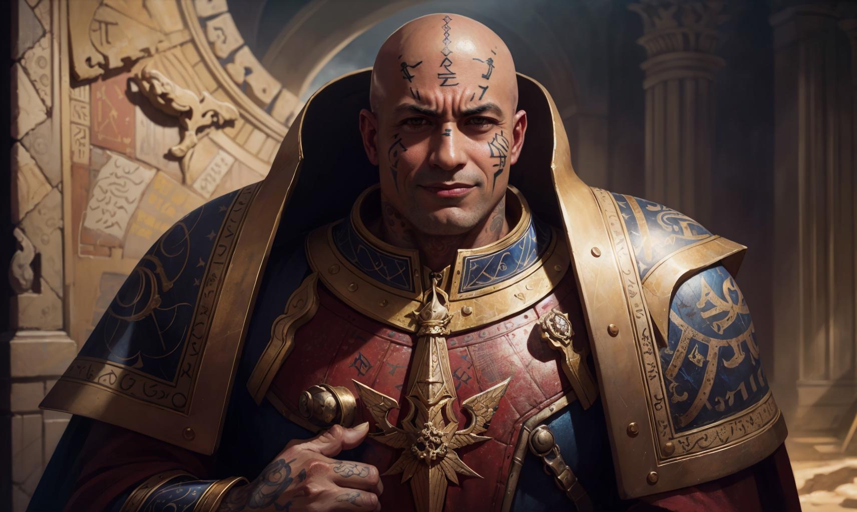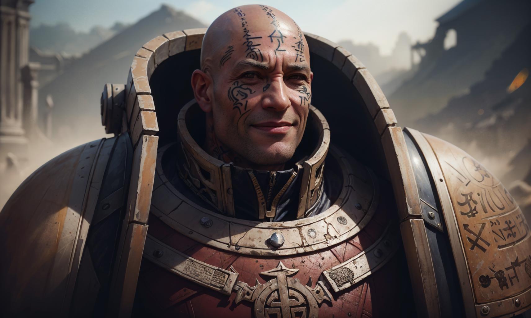 full armor + face tattoos + cape