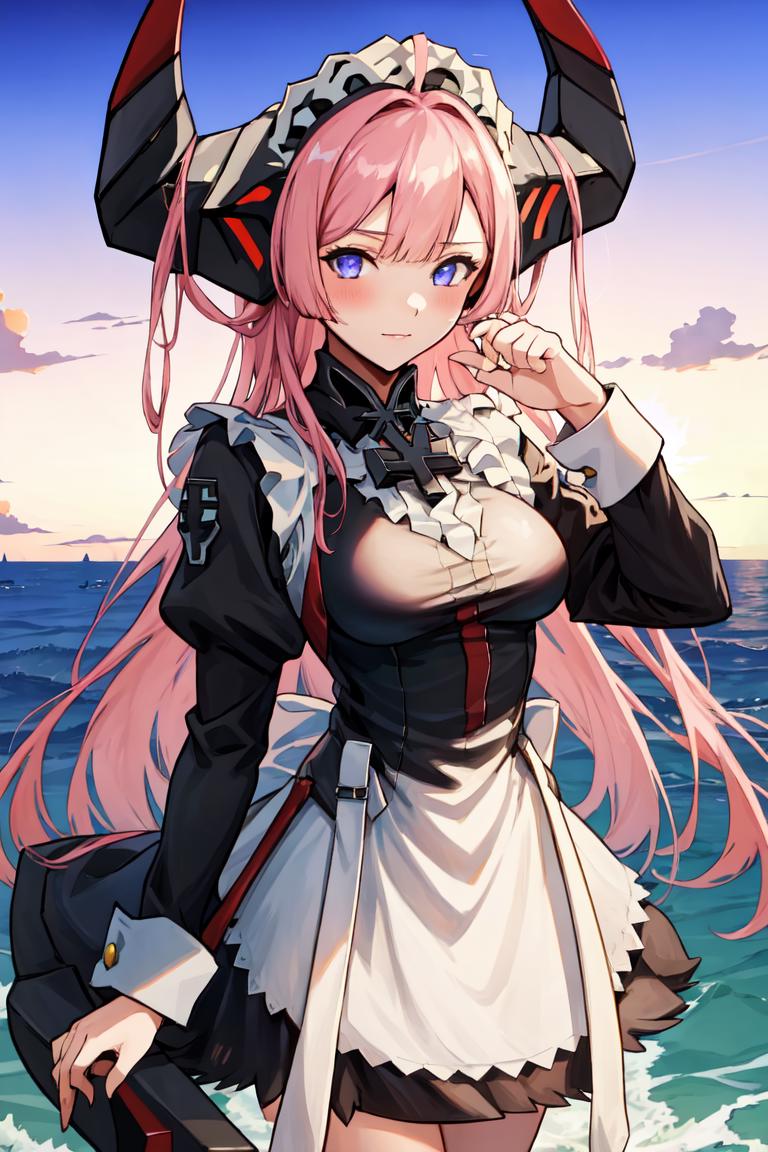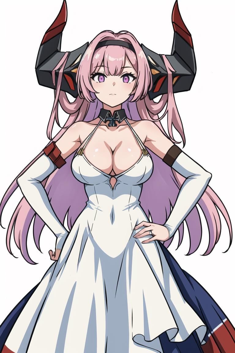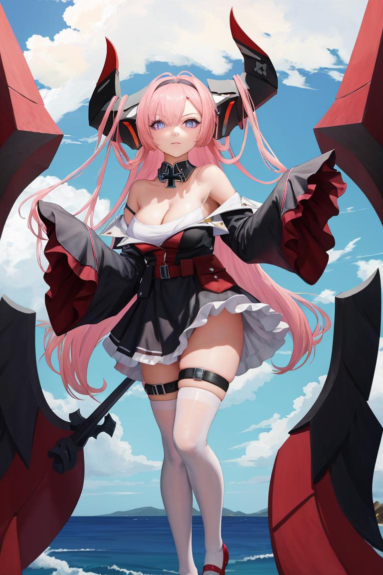 prinz rupprecht \(azur lane\), bare shoulders, cleavage, white thighhighs, iron cross, black dress, sleeves past fingers, thigh strap