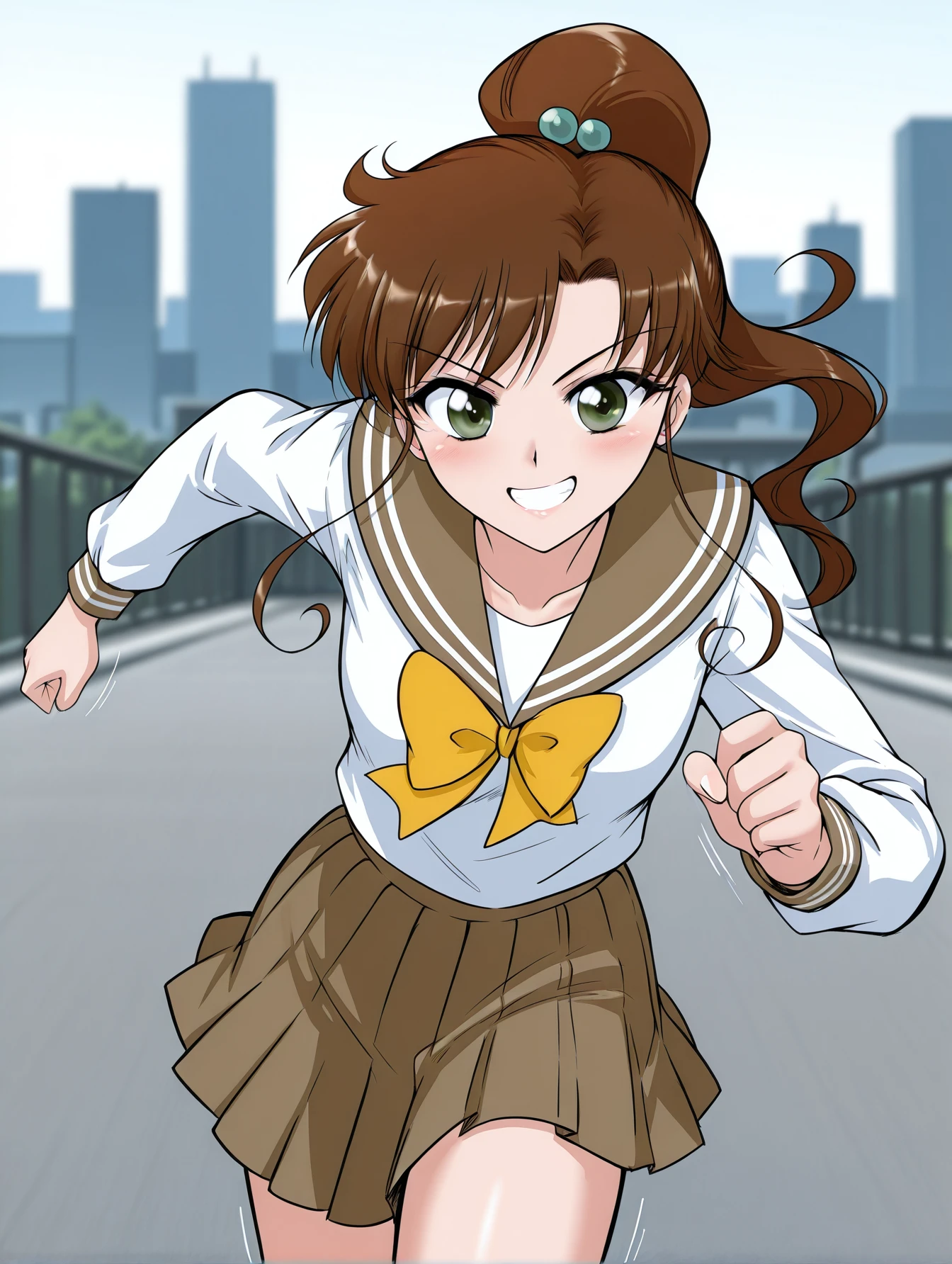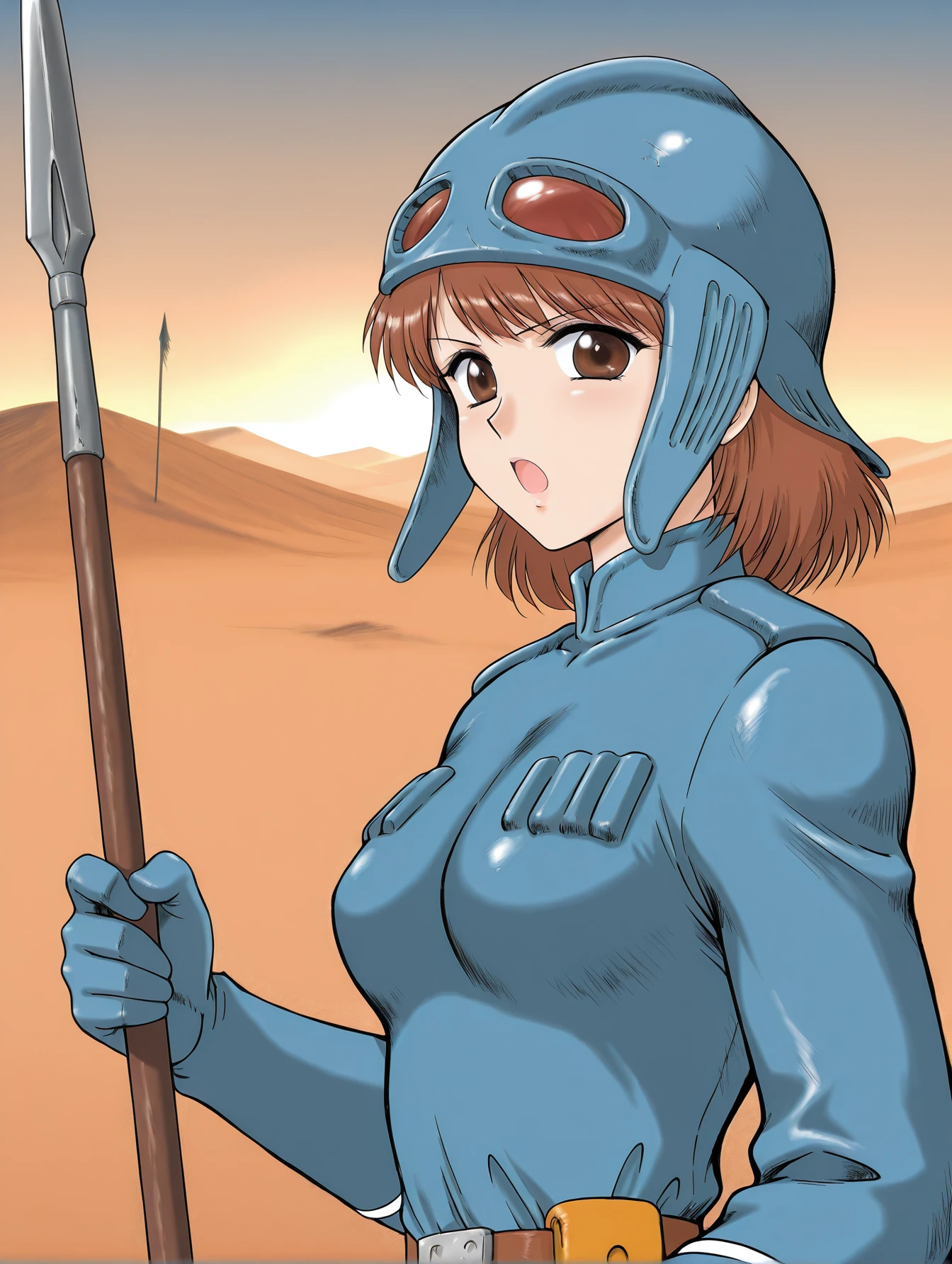 nausicaa, brown eyes, brown hair, helmet, gloves, uniform