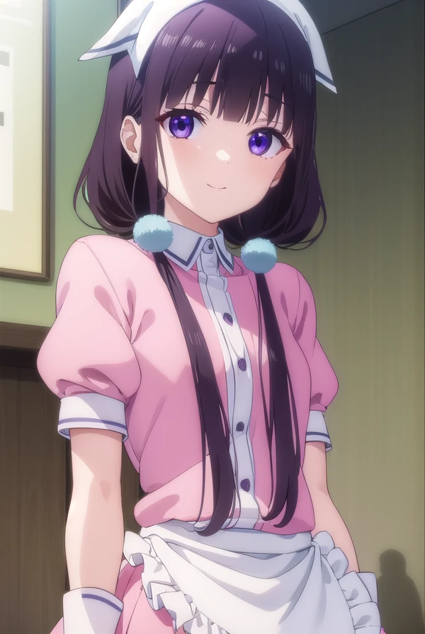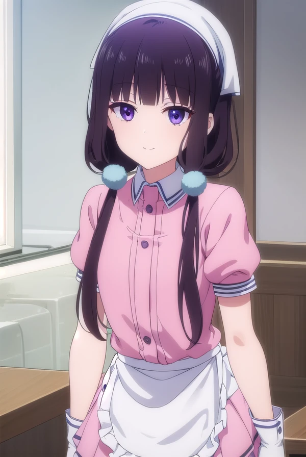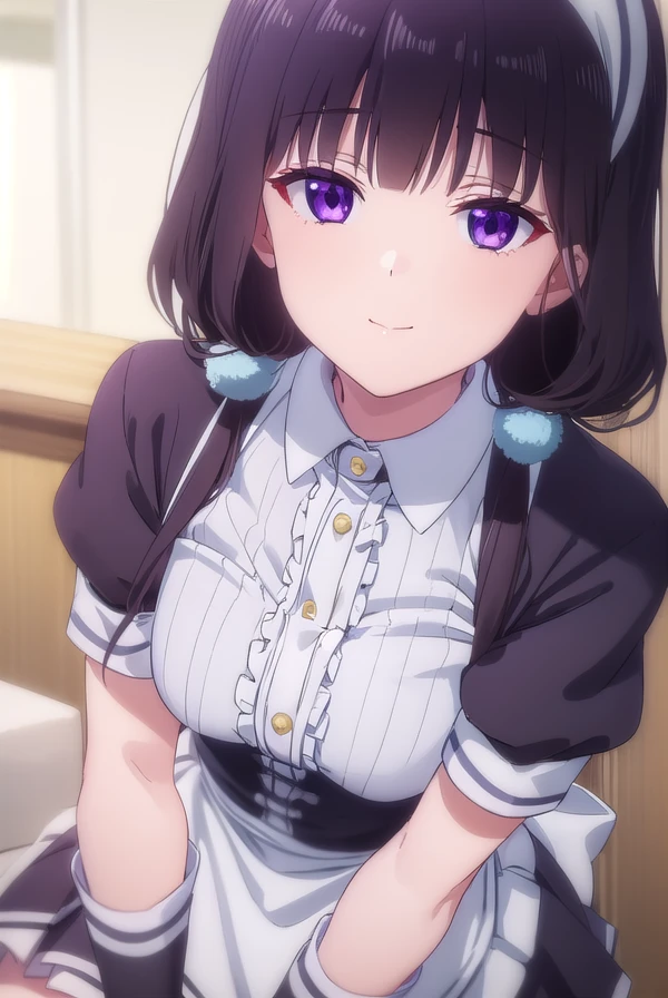 maika sakuranomiya, long hair, black hair, hair ornament, twintails, (purple eyes:1.1), low twintails,