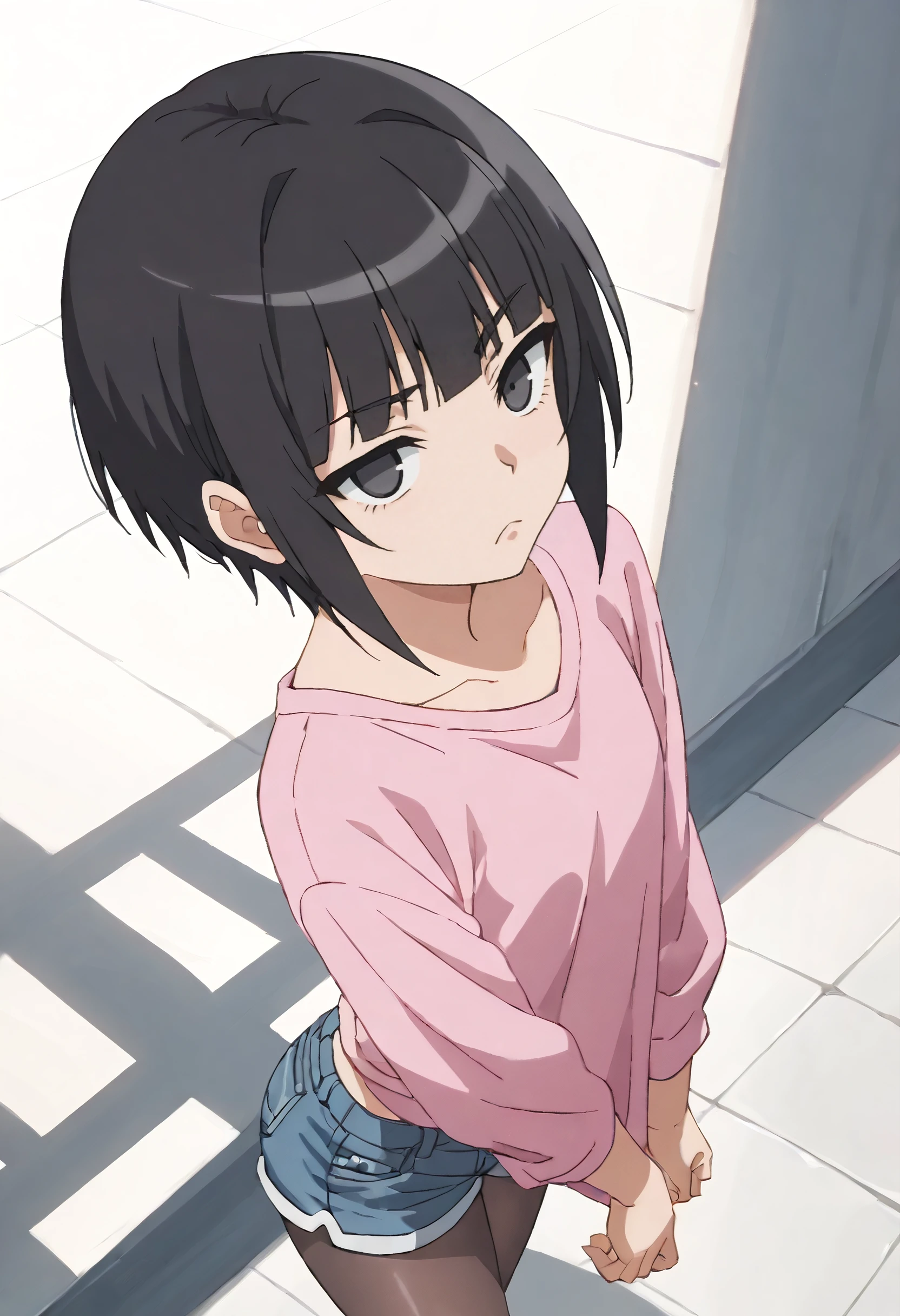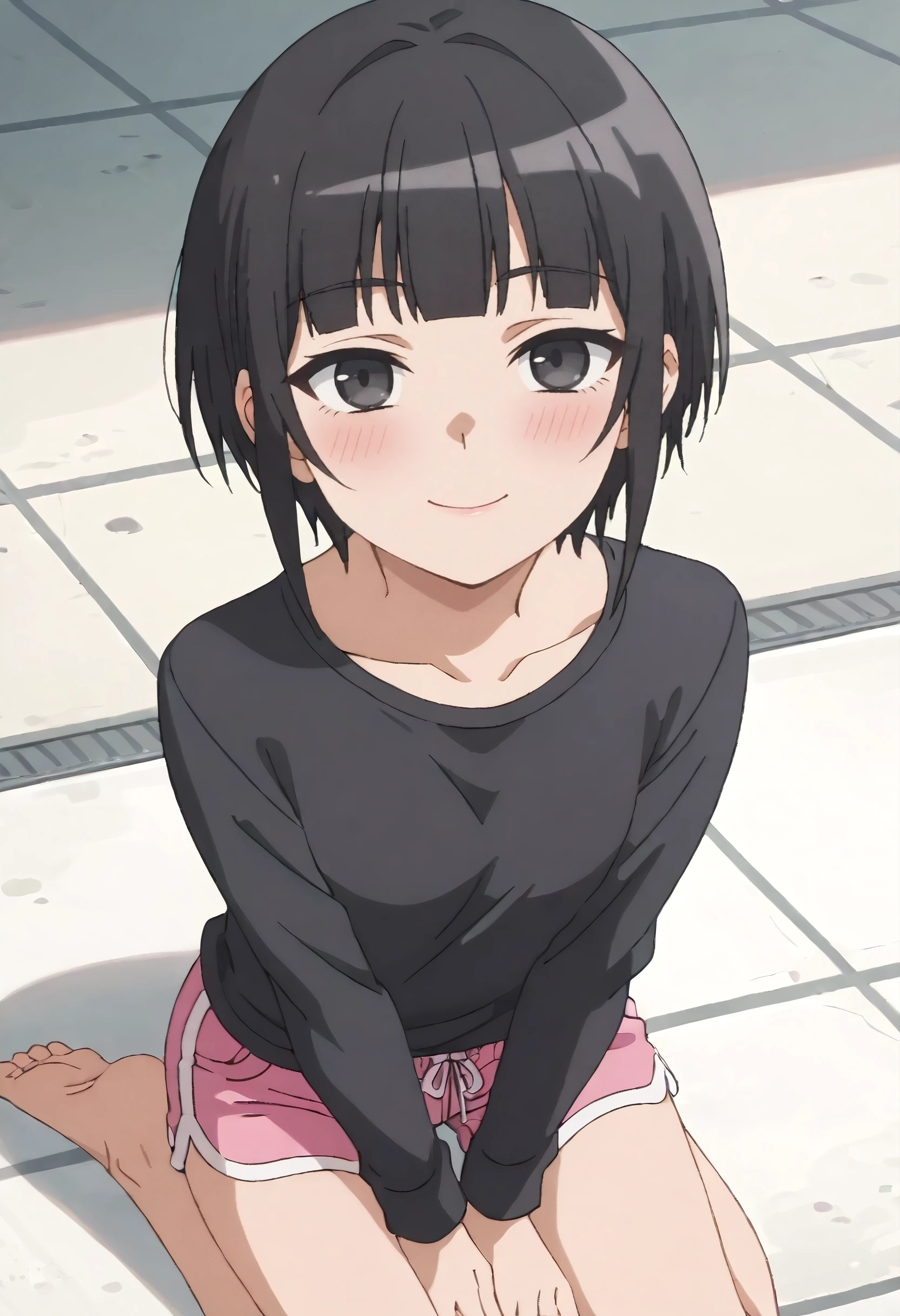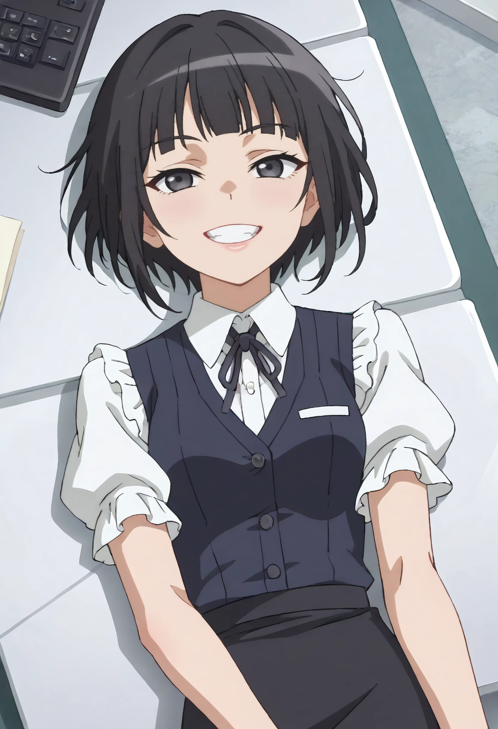 MOKKuon, short hair, black hair, blunt bangs, black eyes, bob cut, sidelocks,