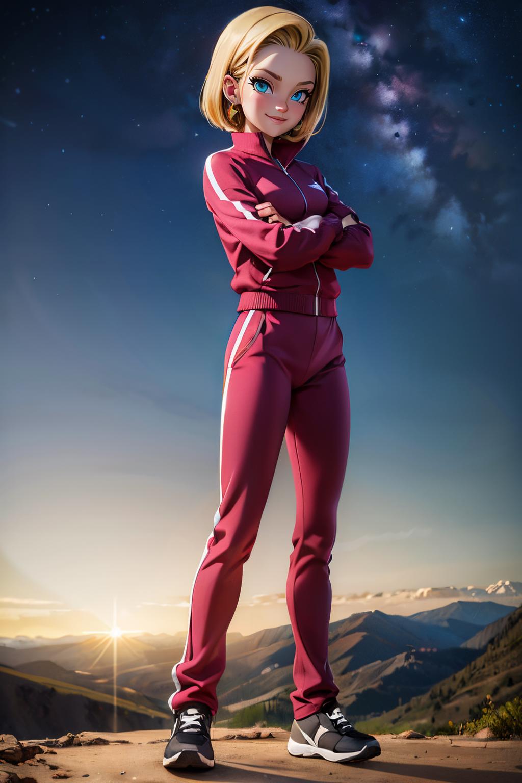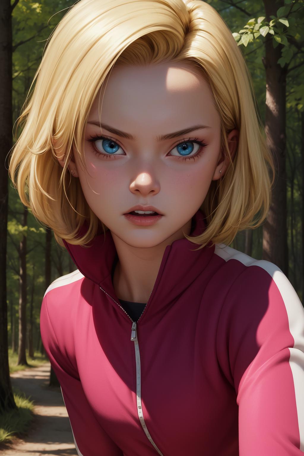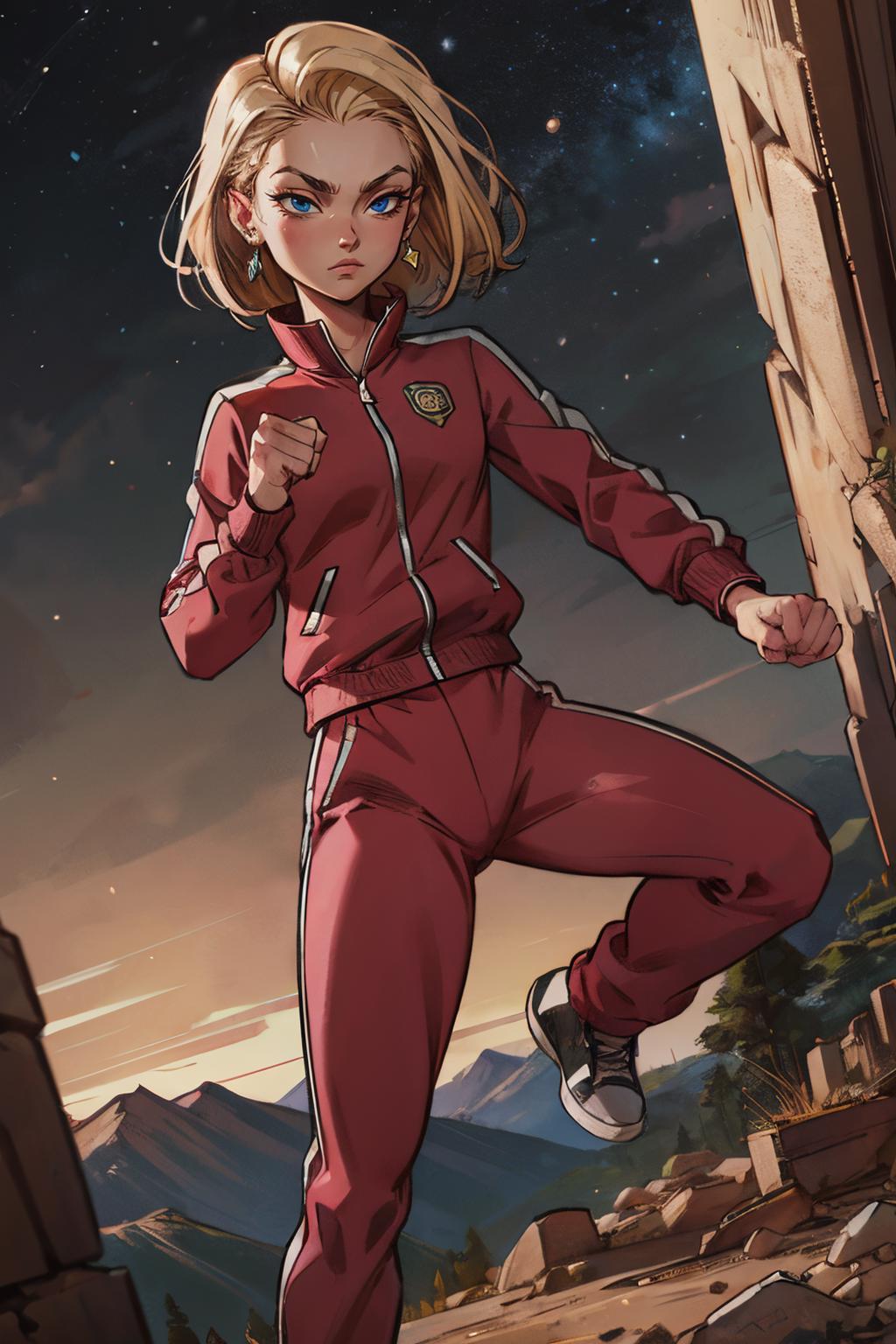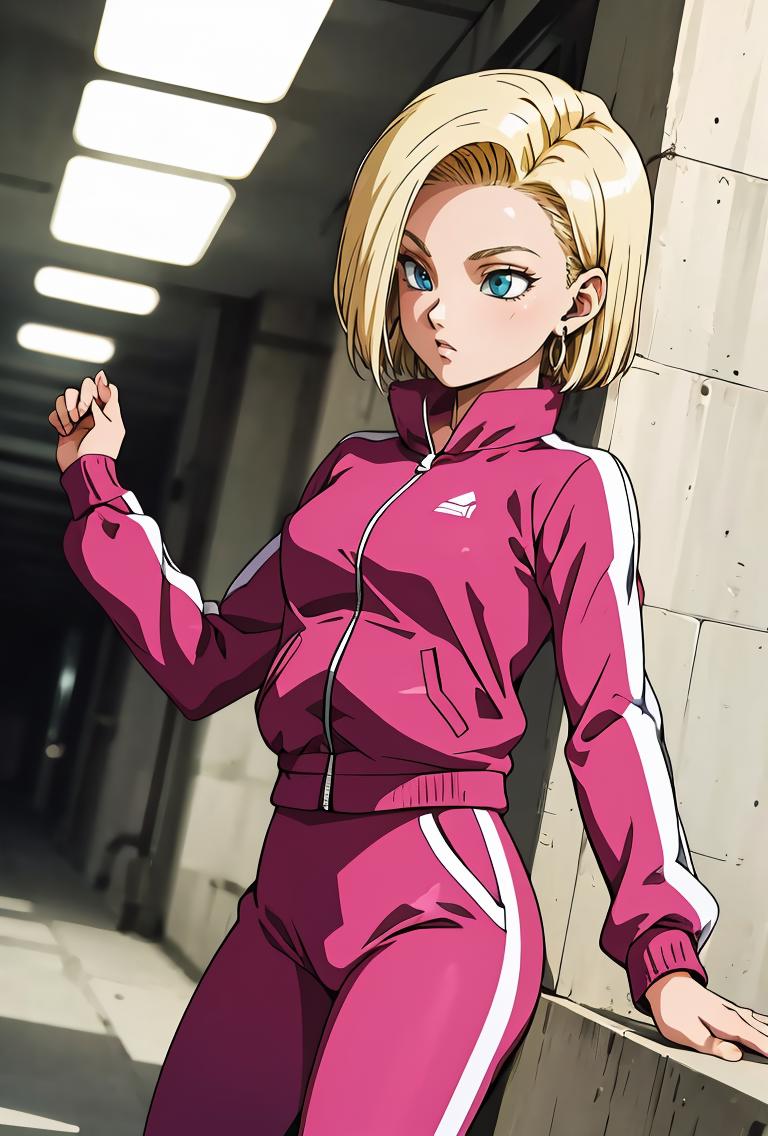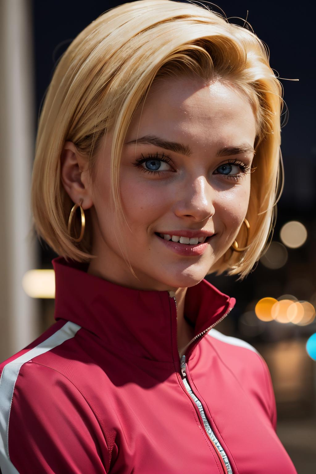 android18, 1girl, solo, blue eyes, blonde hair, short hair, earrings,