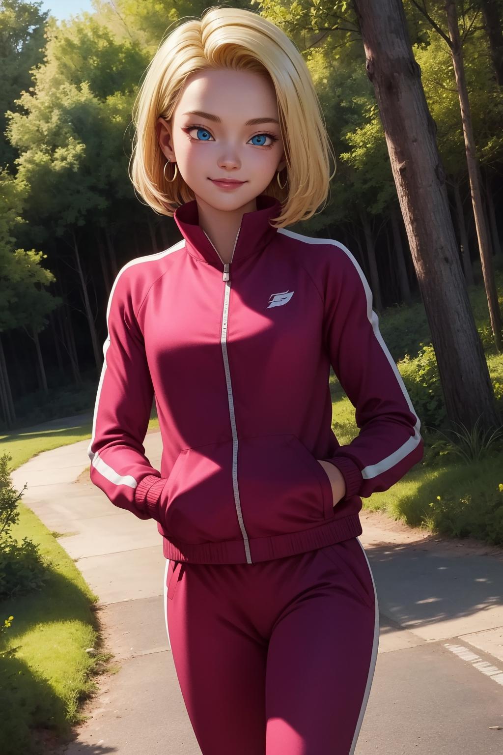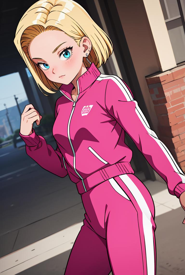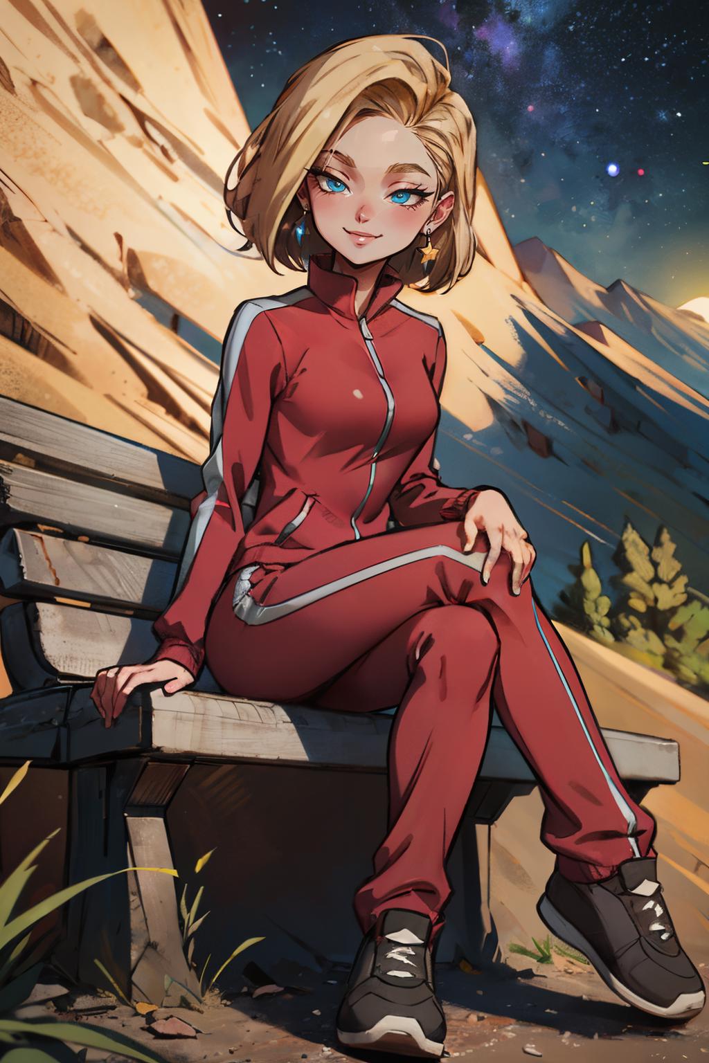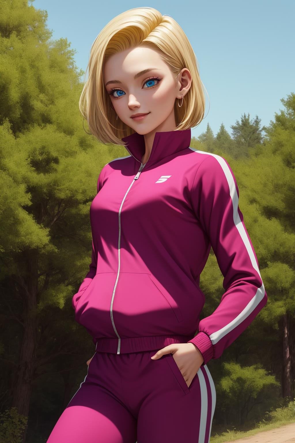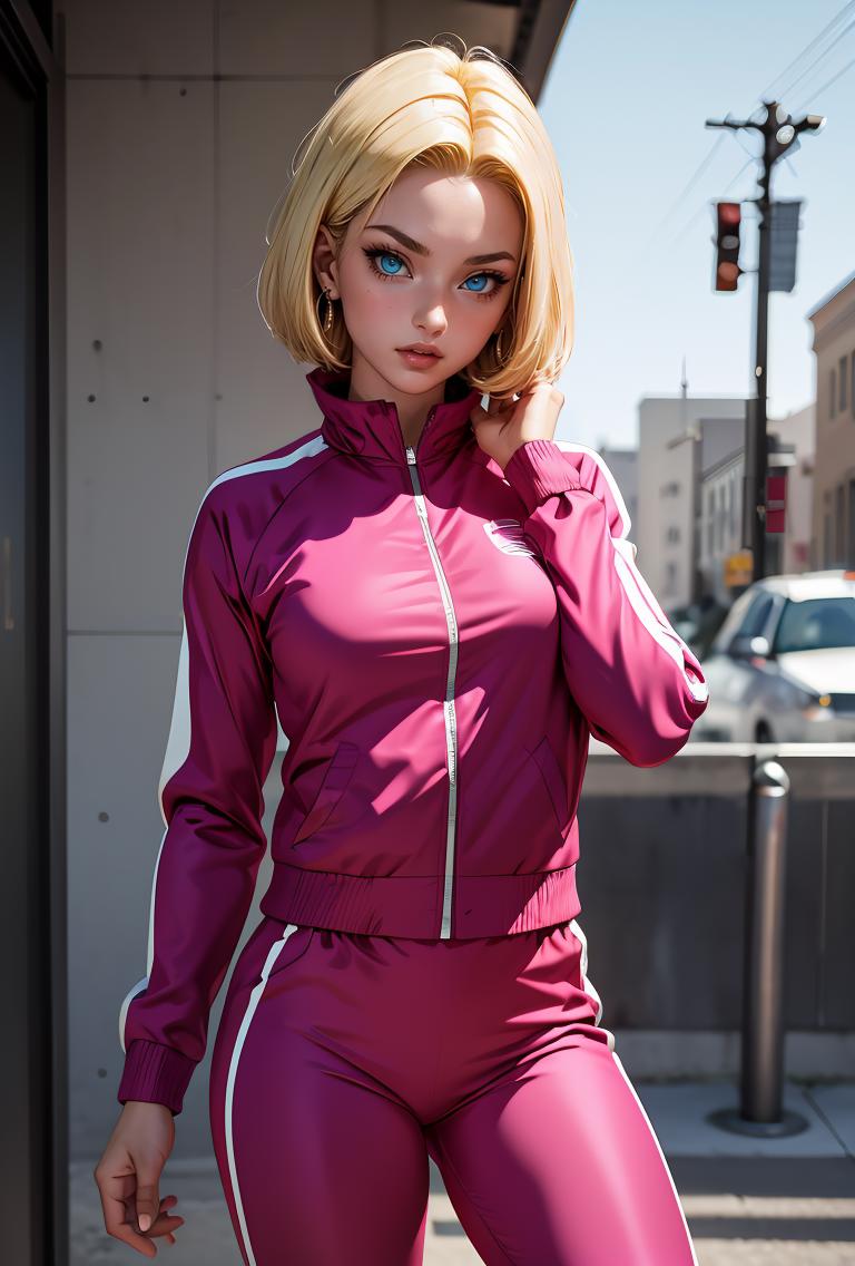 android18, 1girl, solo, blue eyes, blonde hair, short hair, earrings,