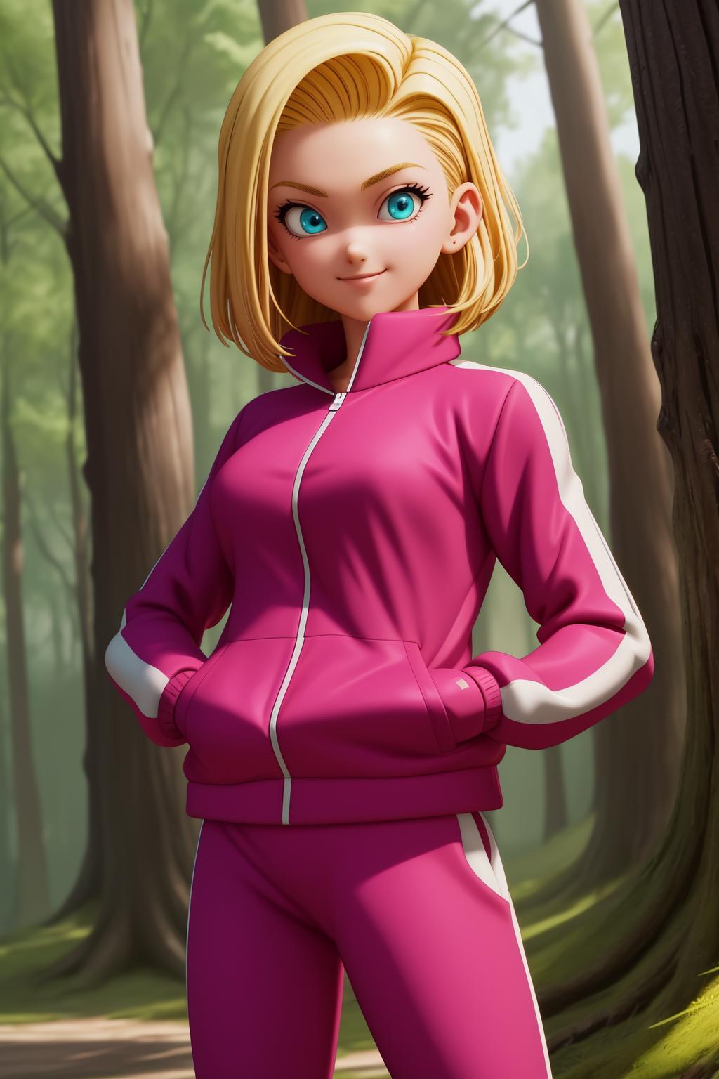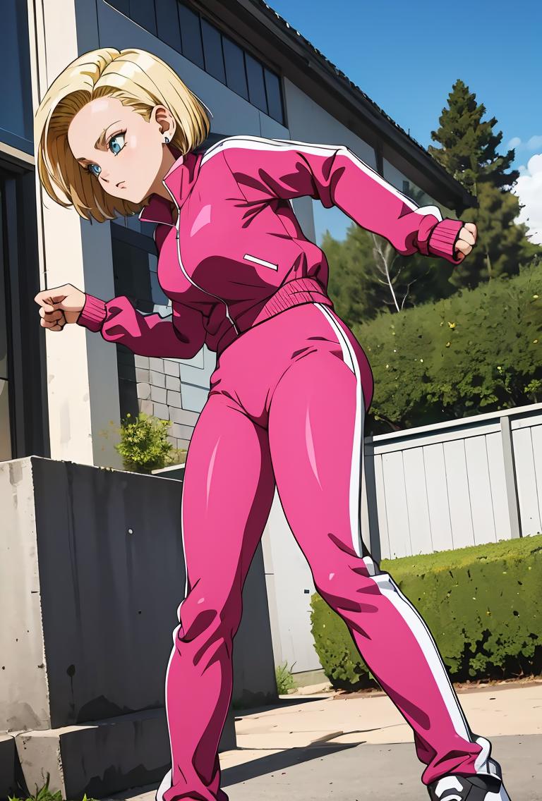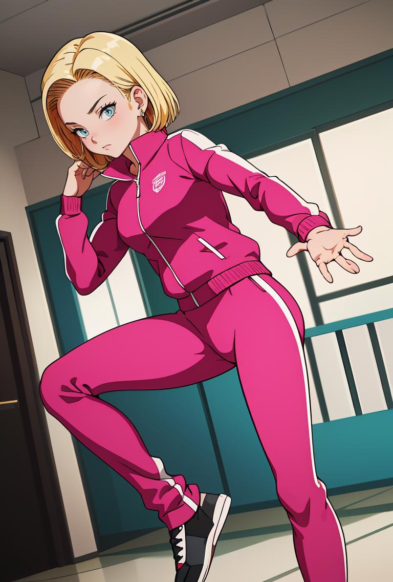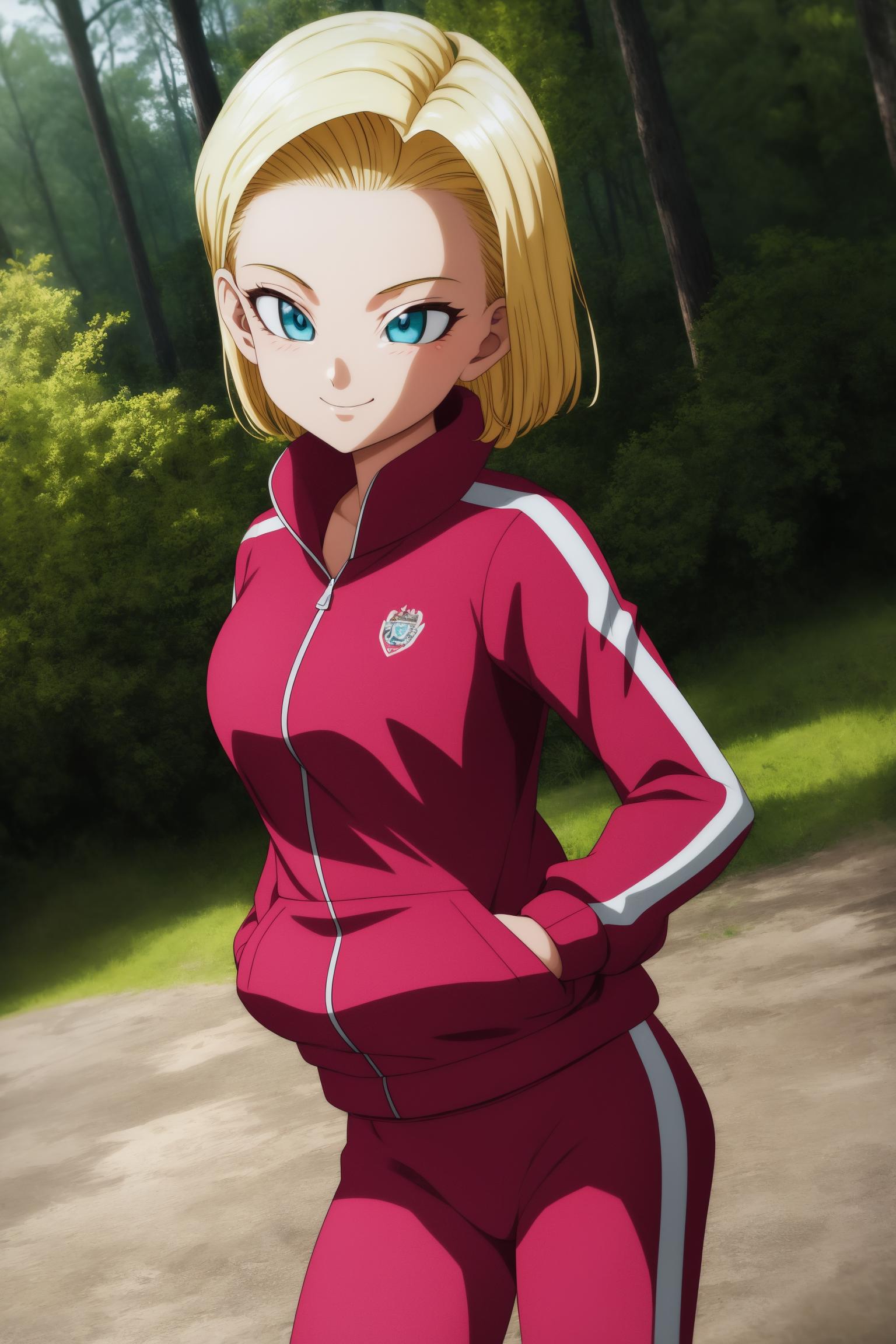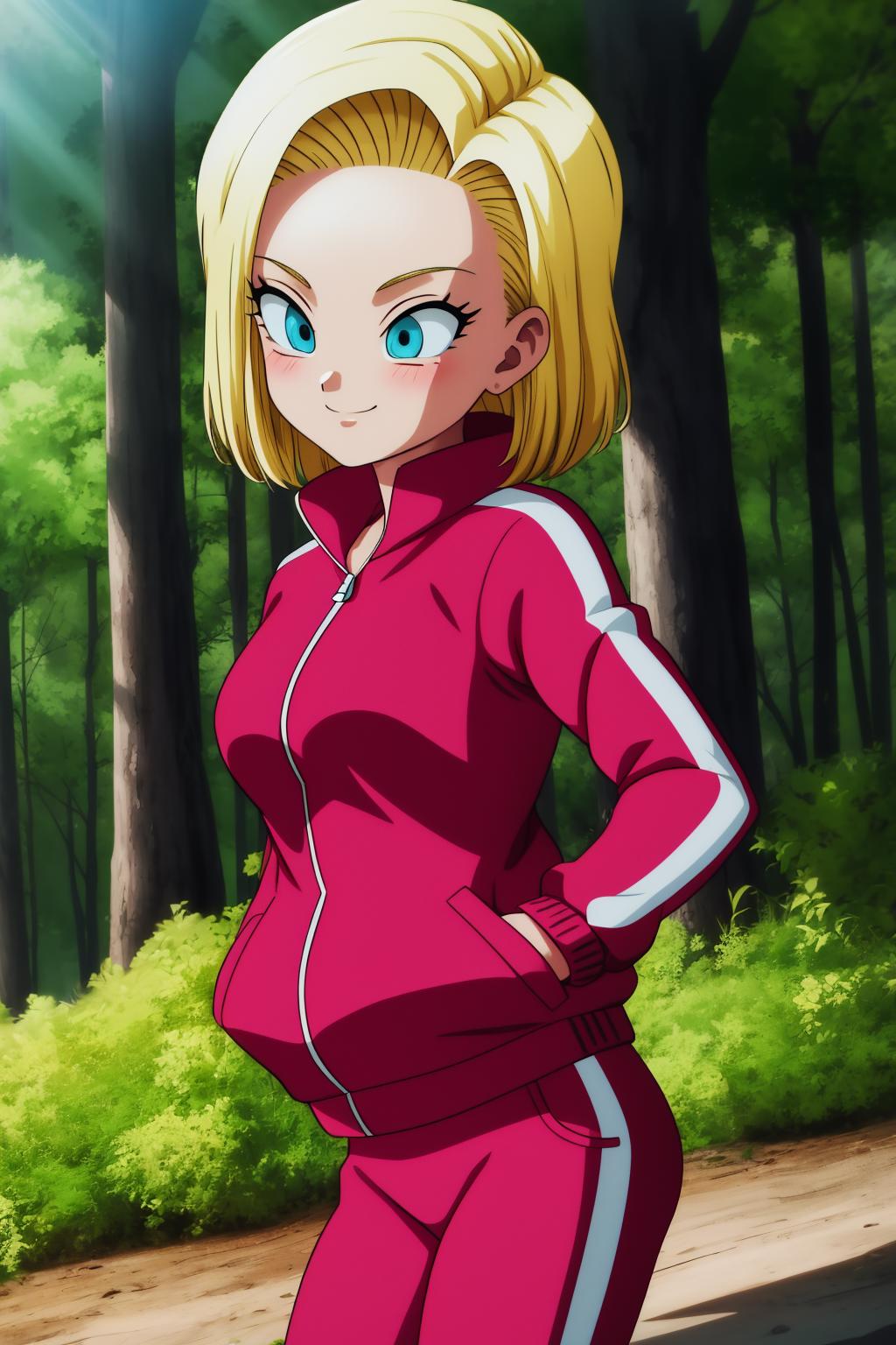 android18, 1girl, solo, blue eyes, blonde hair, short hair, earrings,
