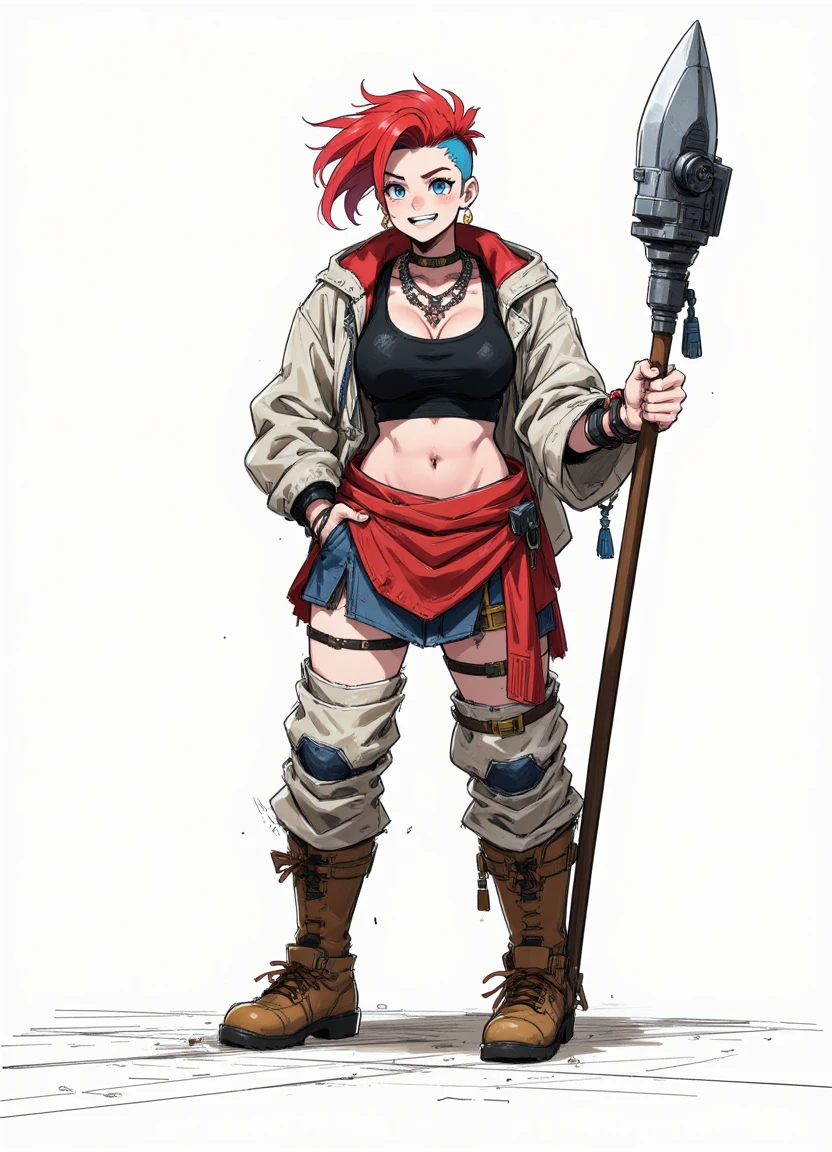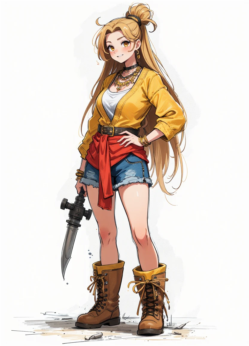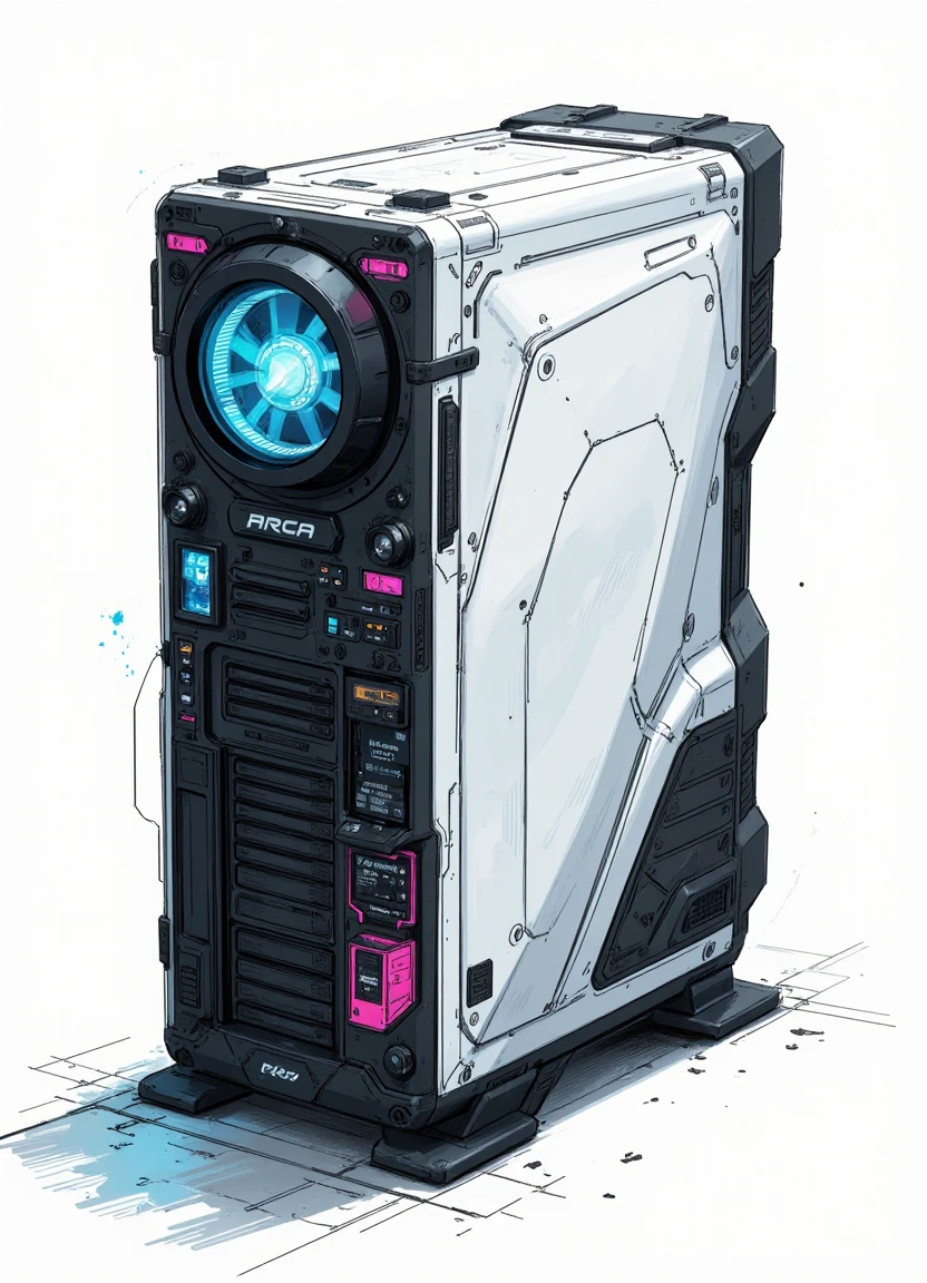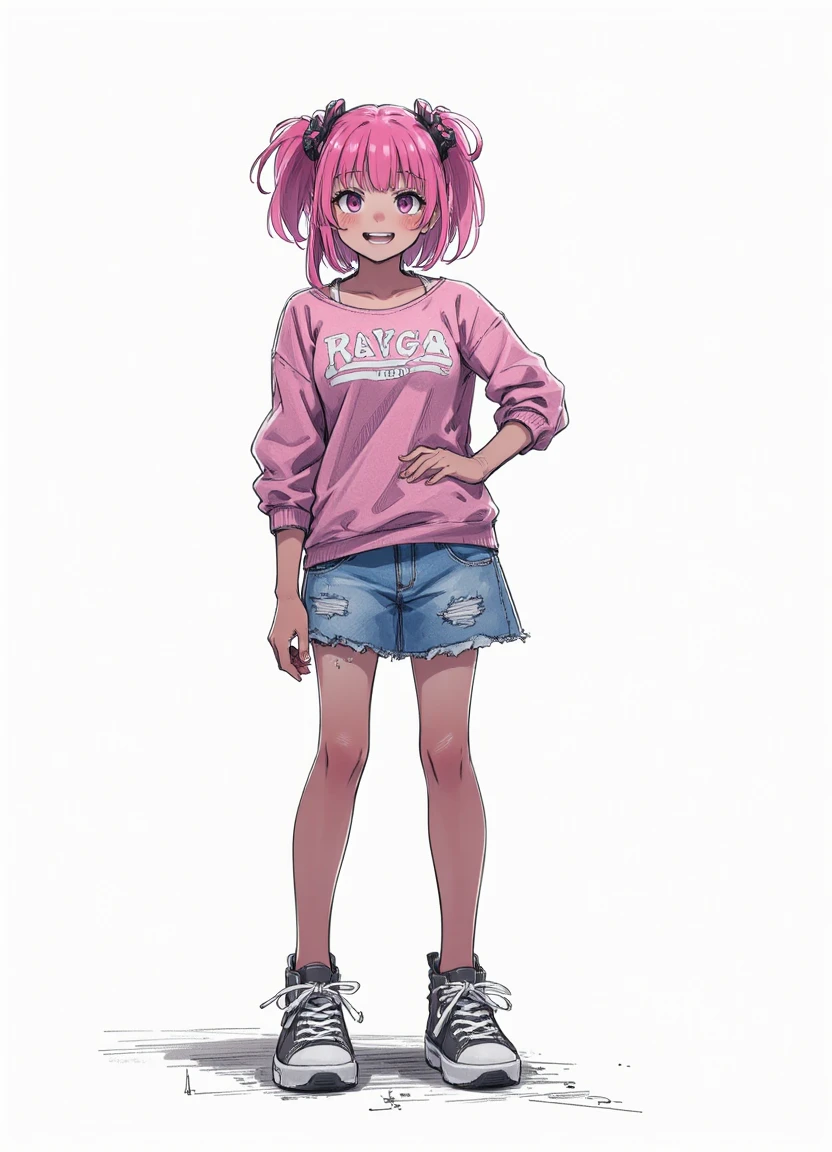 A model designed to give a rough sketched look on a white background, similar to character concept art.