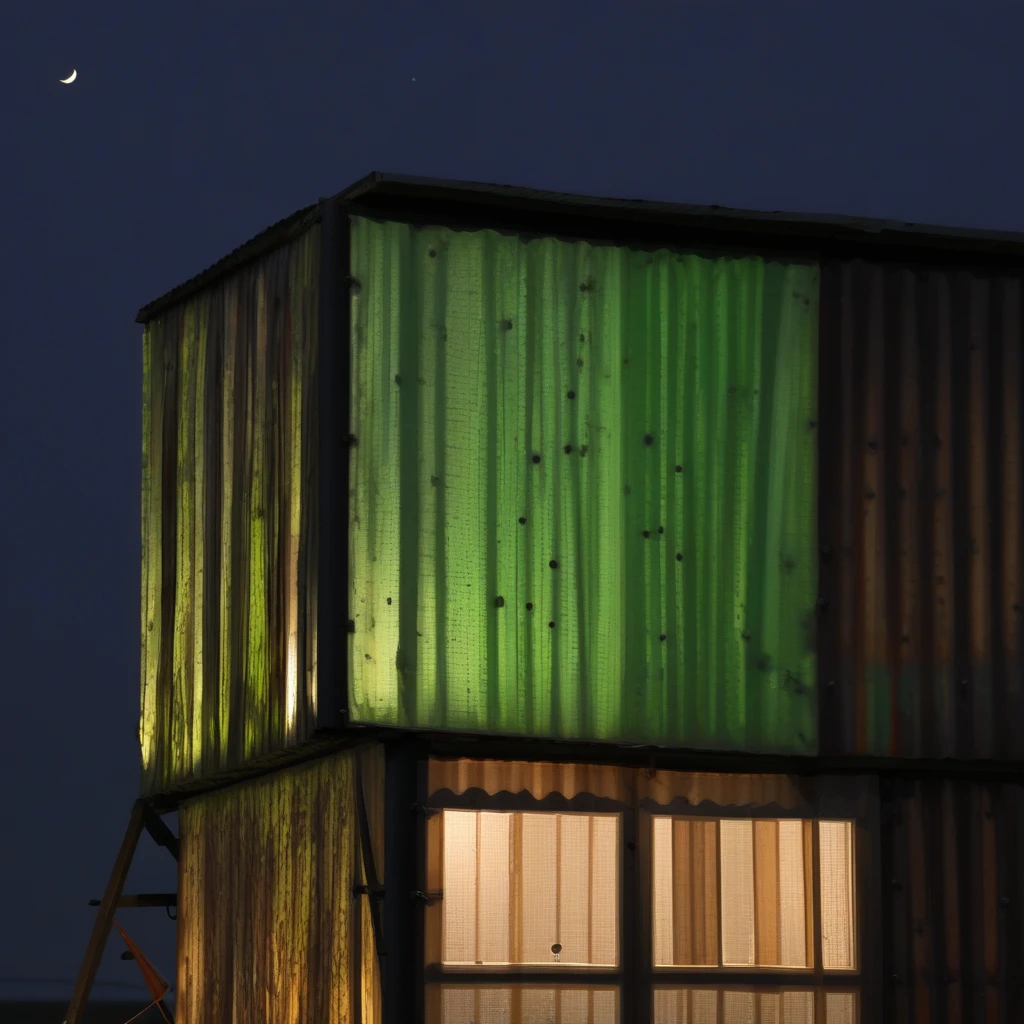 This was trained on photos of an old, multicolored, corrugated metal shack from around 20 years ago. I'm almost positive the building is no longer there.