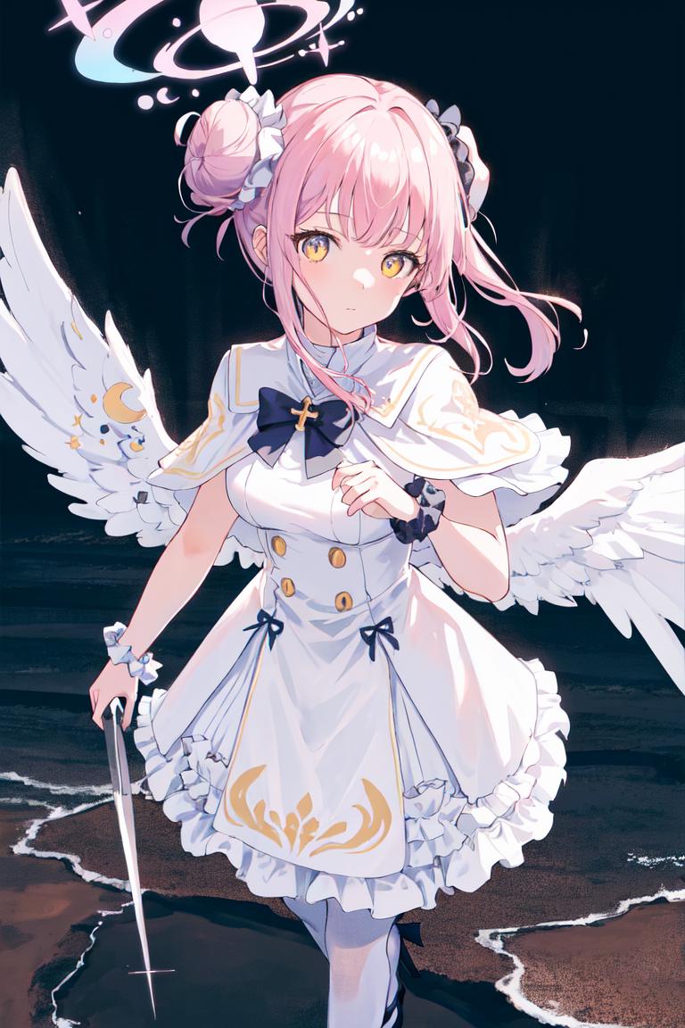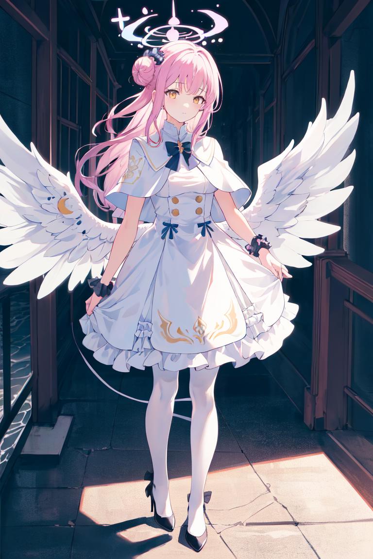 high heels, dress, wrist scrunchie, white dress,capelet, pumps, pantyhose, frilled dress, black footwear, white pantyhose, frills, white capelet