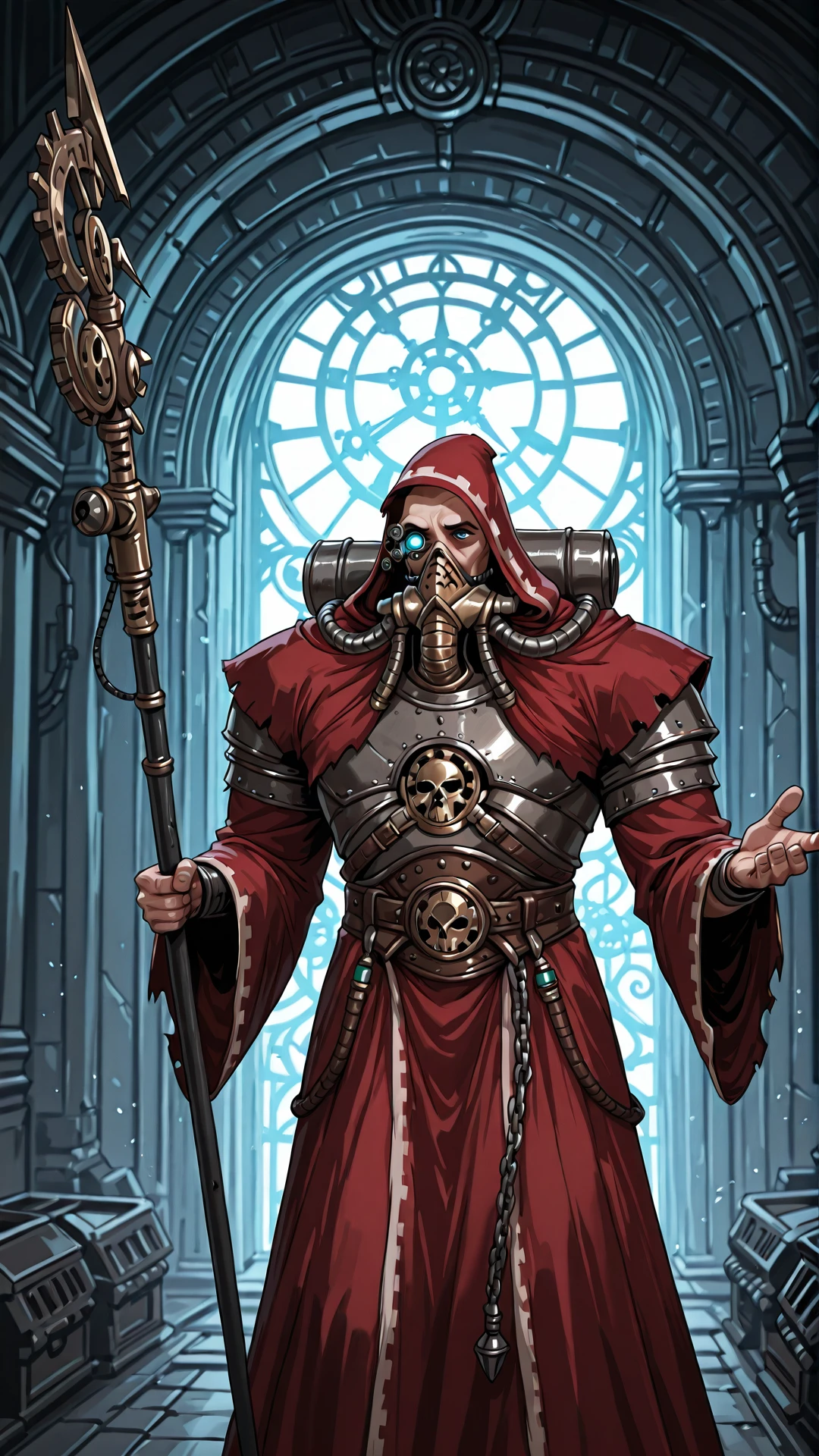 Magos Pasqal Haneumann of the Adeptus Mechanicus, from the CRPG Warhammer 40K Rogue Trader by Owlcat Games.