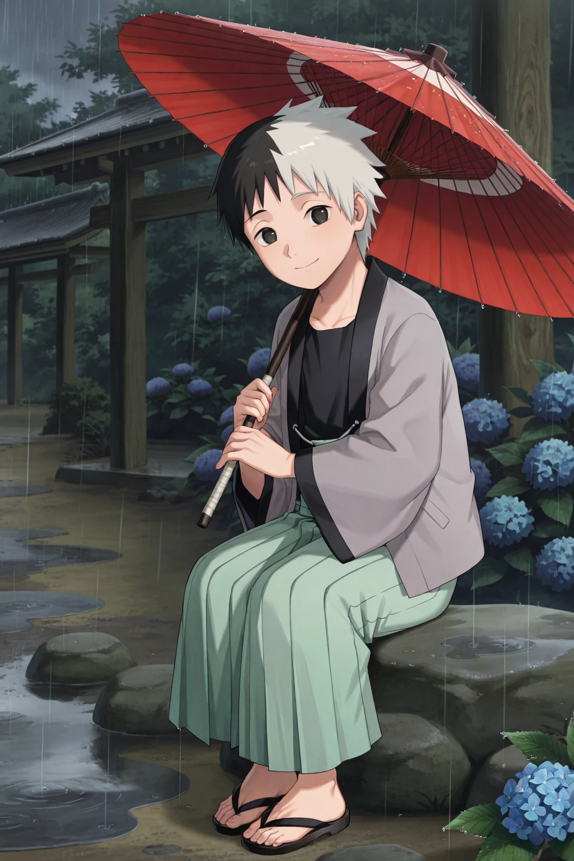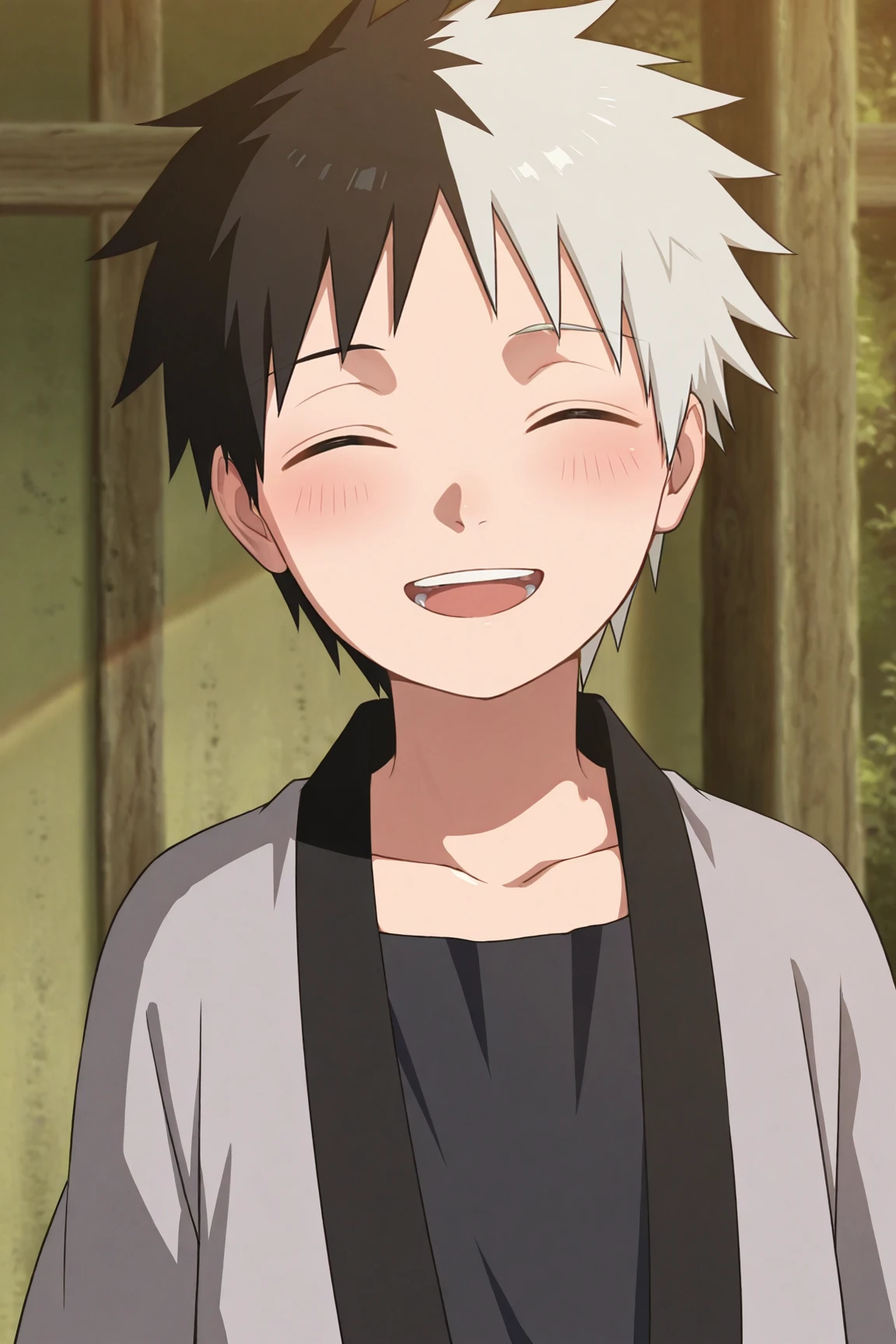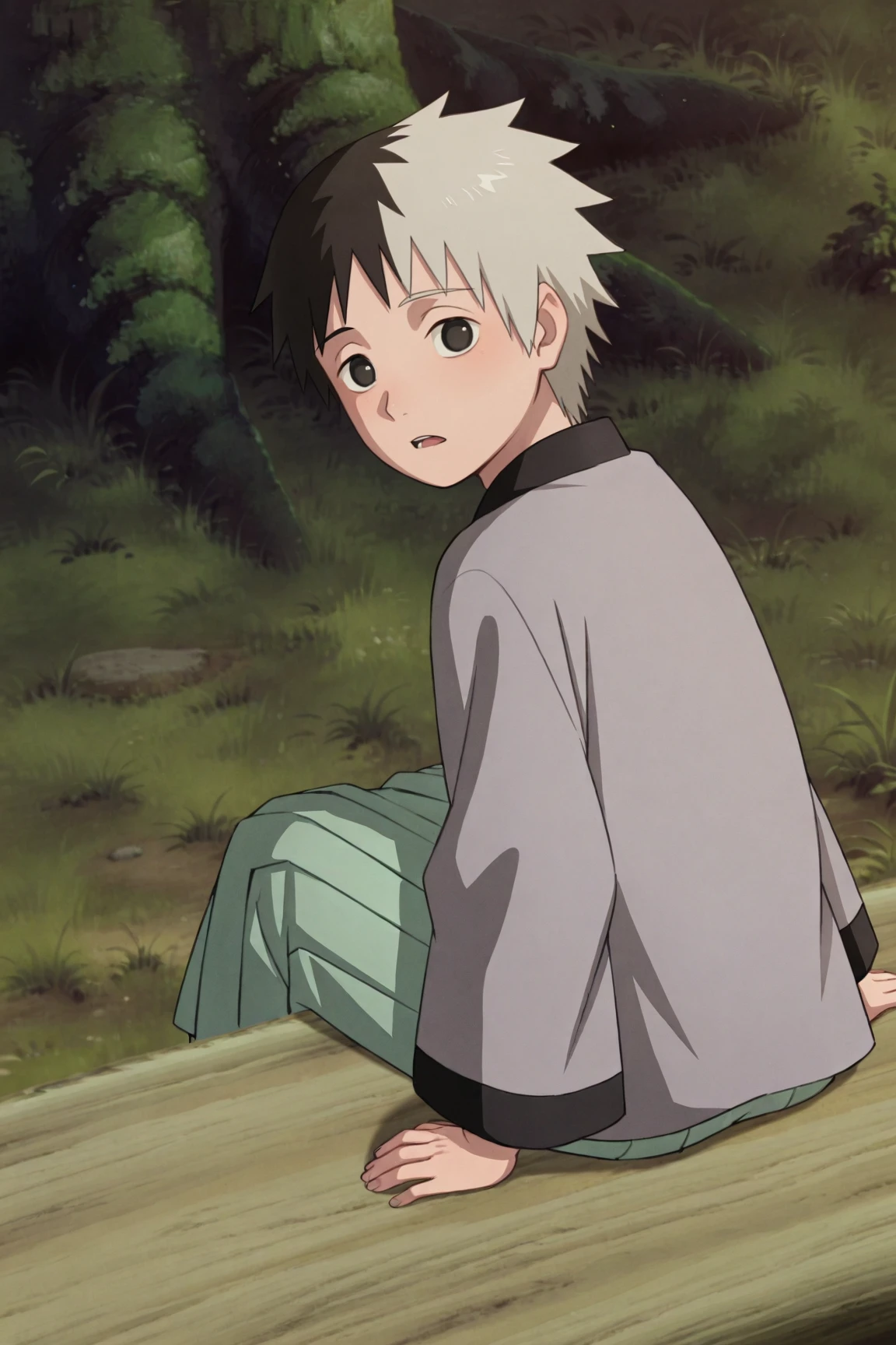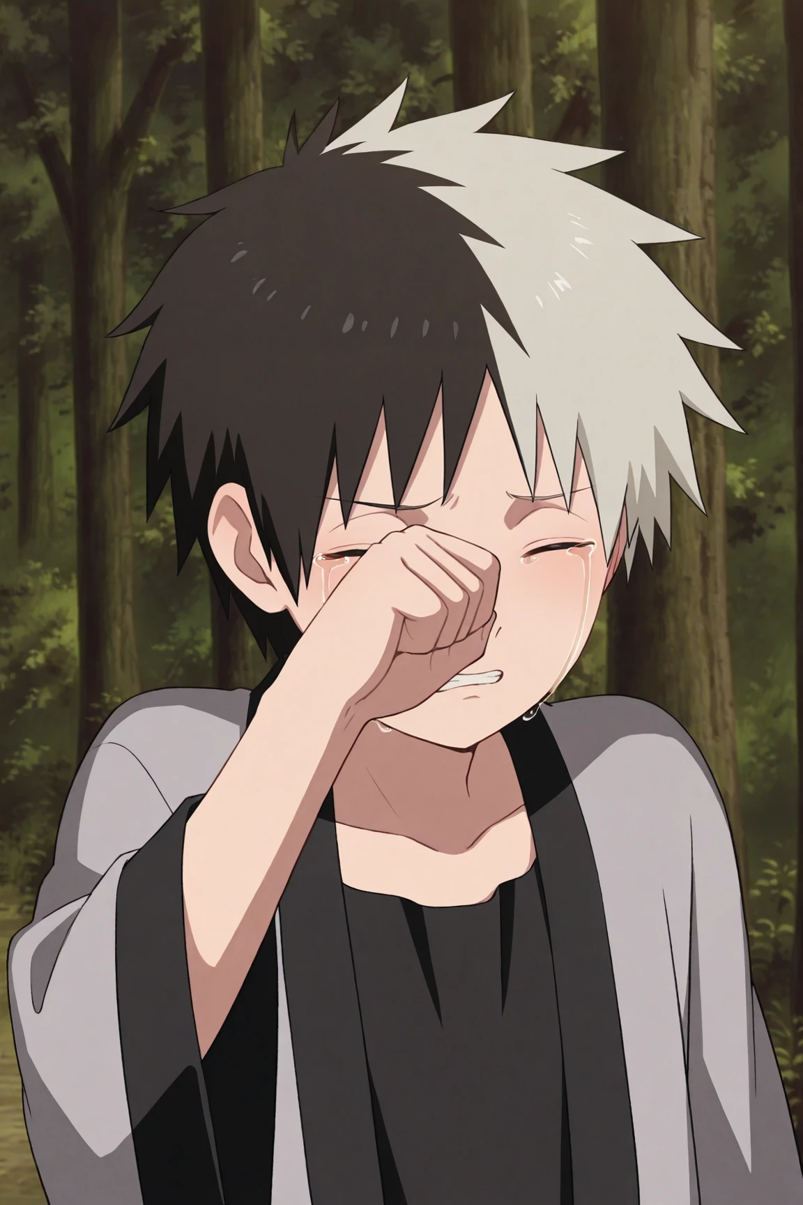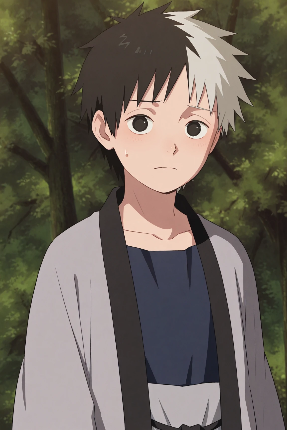 Itama Senju, two-tone hair, black hair, white hair, black eyes,