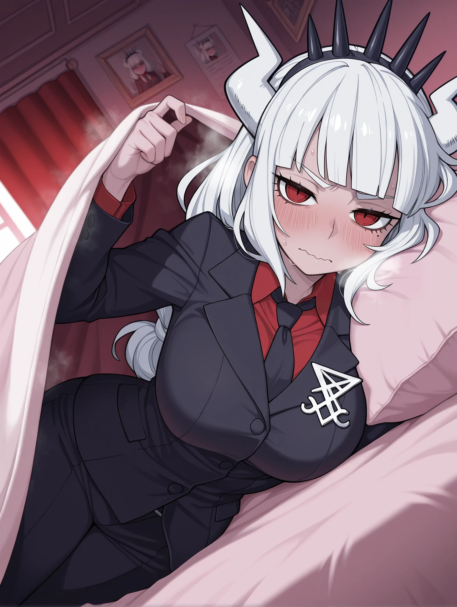 under covers, blanket, pillow, on bedIf you're aiming to generate SFW images, it's recommended to include more prompts related to the character's outfit, and also check whether the base model you're using has a safety rating tag.