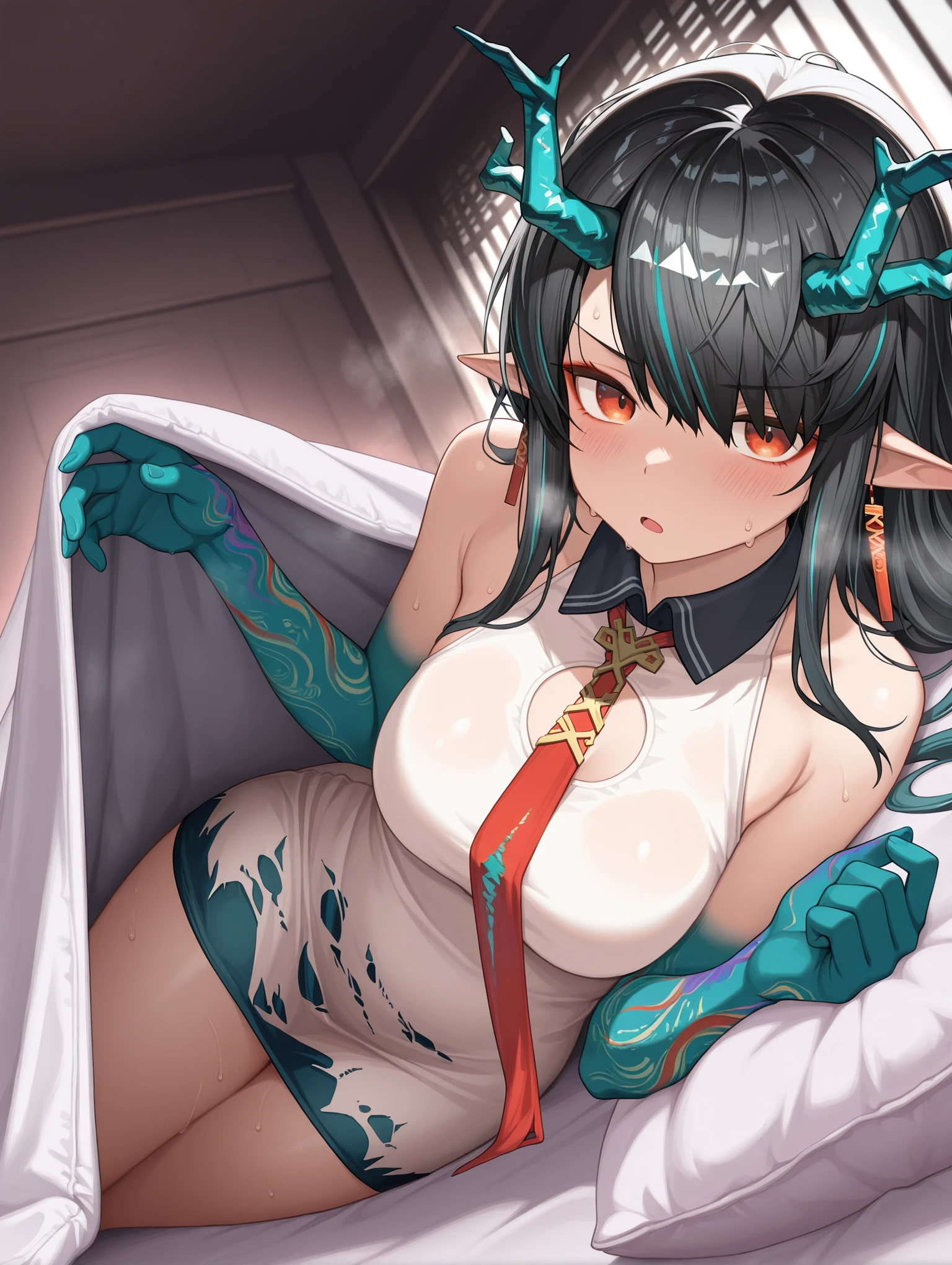 under covers, blanket, pillow, on bed如果是想要生產SFW的圖片的話,建議可以多打一些角色相關的服裝提詞,並看看各底模是否有safety rating tag使用。