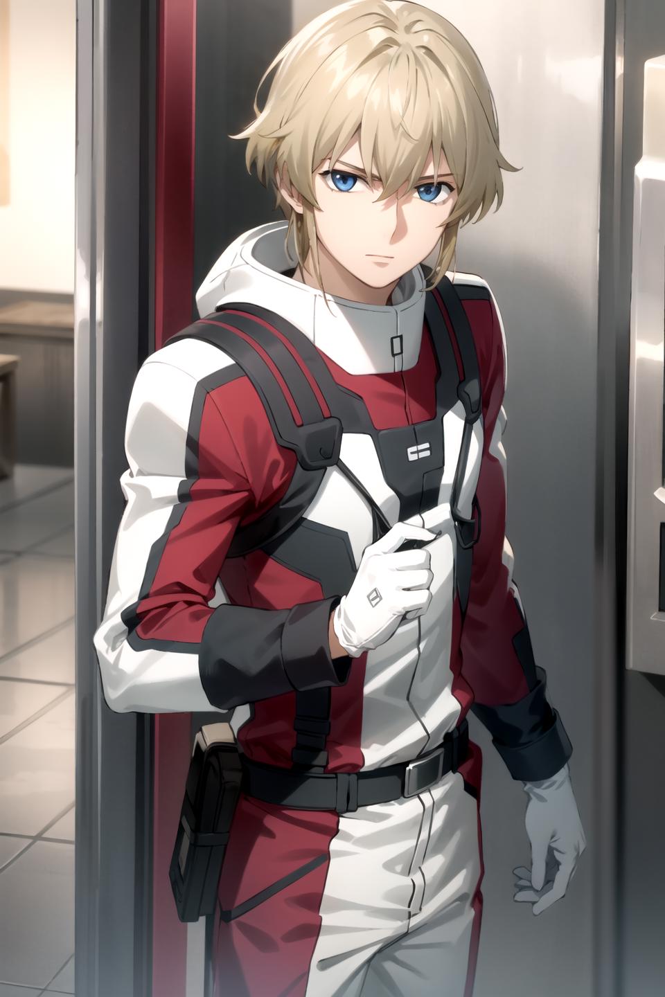Required prompt: dio junyou weinberg\(buddy complex\), 1boy, blonde hair, blue eyes,