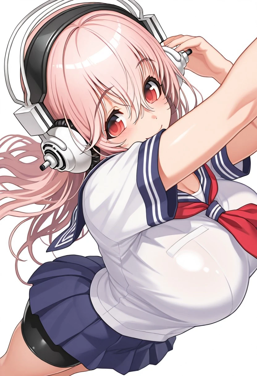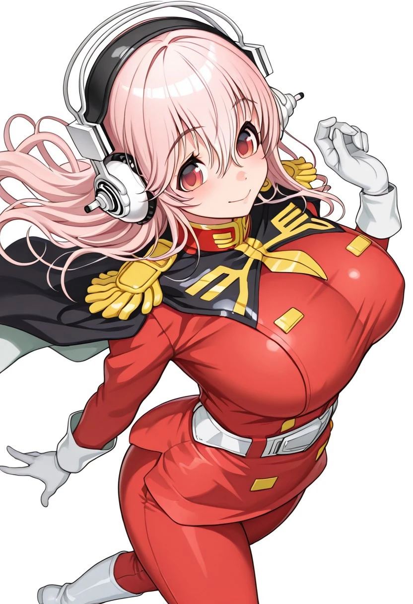 Super_Sonico, Super Sonico, red eyes, pink hair, long hair, head phones, large breasts,