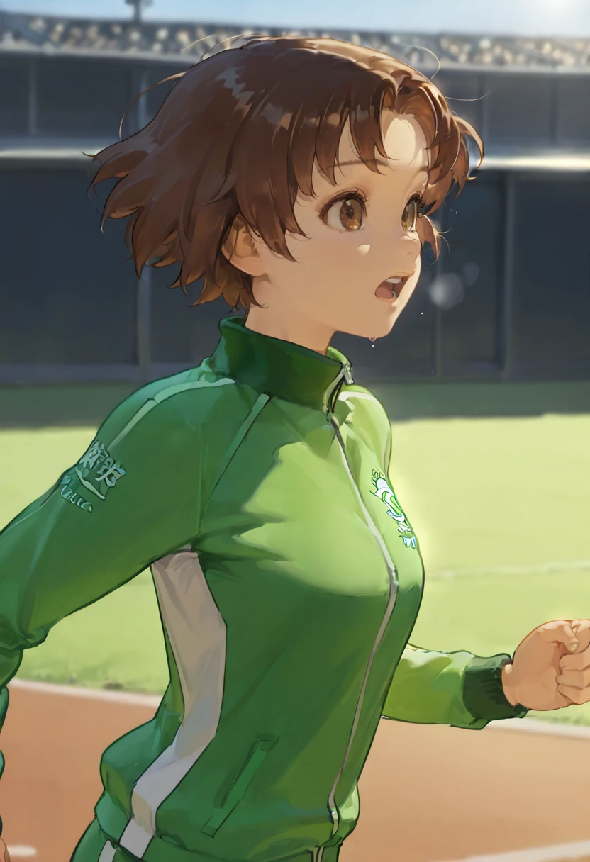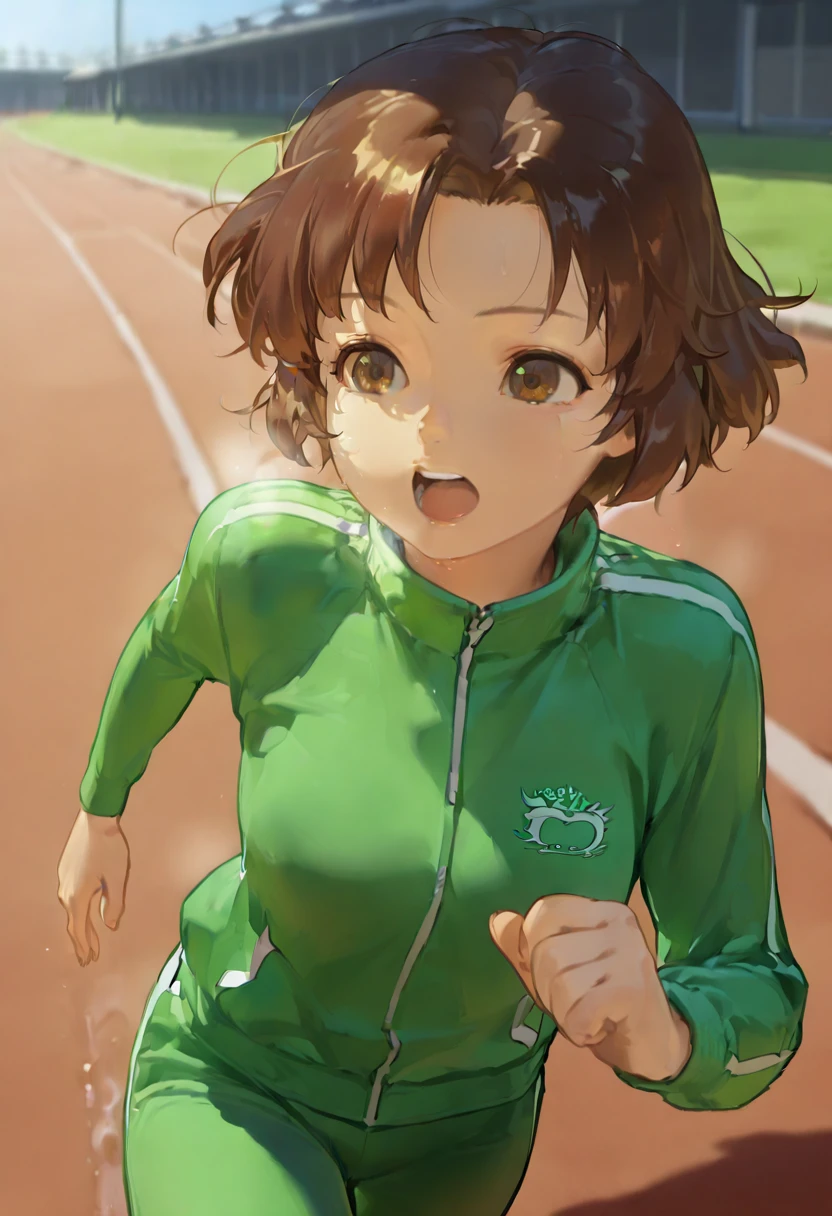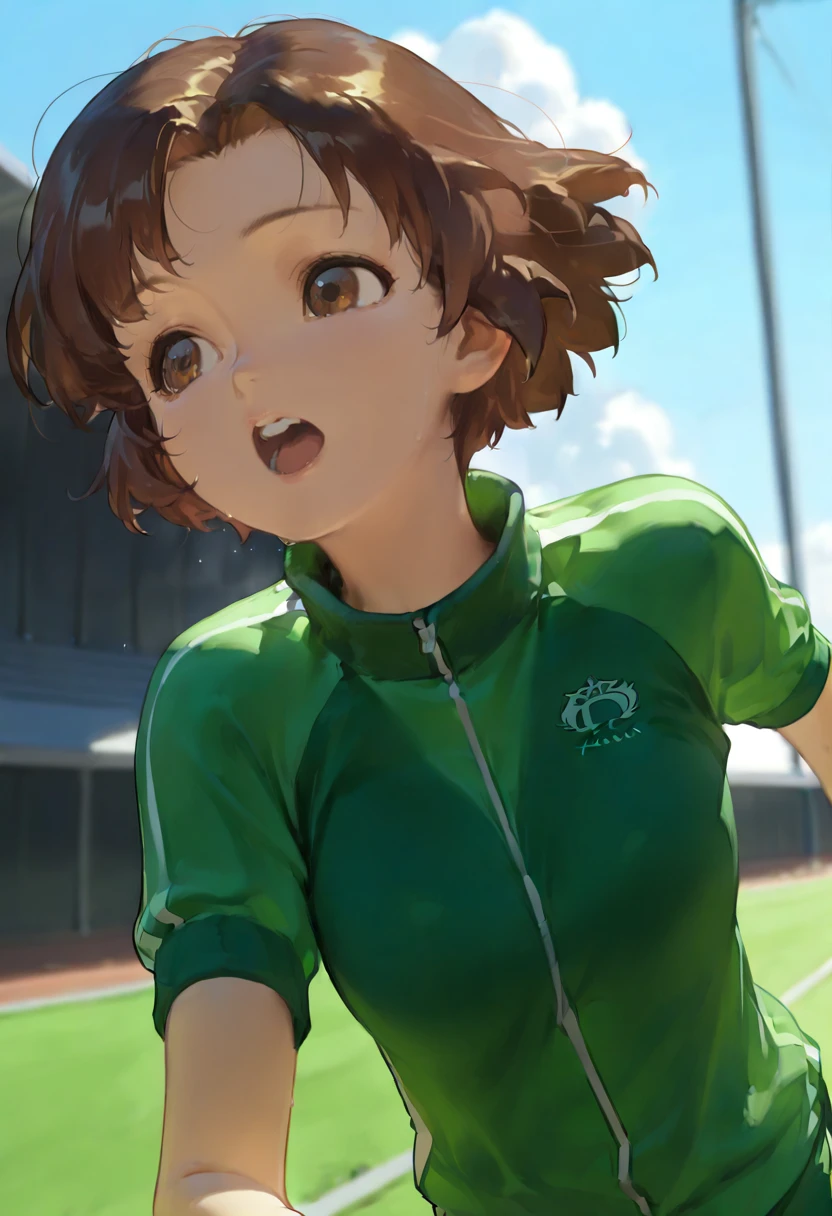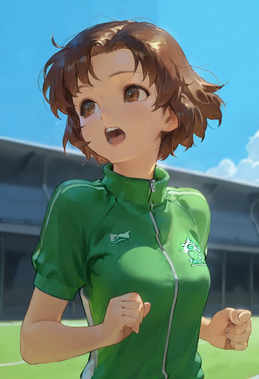momo kawamoto, 1girl, solo, brown hair, brown eyes, bangs, parted bangs