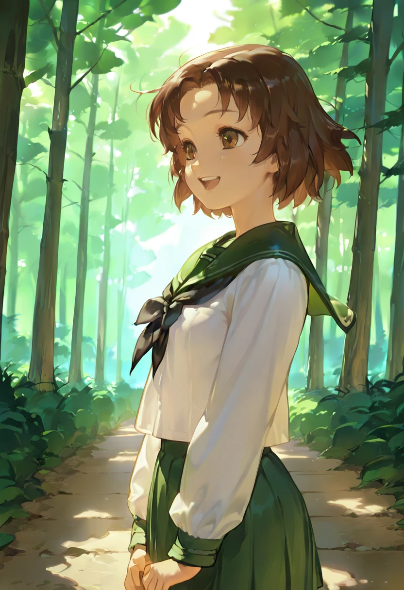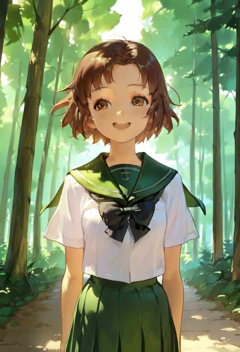 serafuku, green sailor collar, black neckerchief, pleated skirt